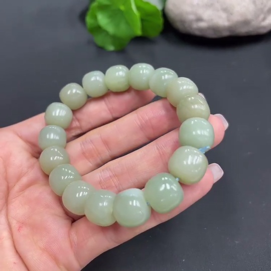 Hetian Jade Bracelet, Approx. 11.7mm Beads, Total Weight Approx. 47.6g