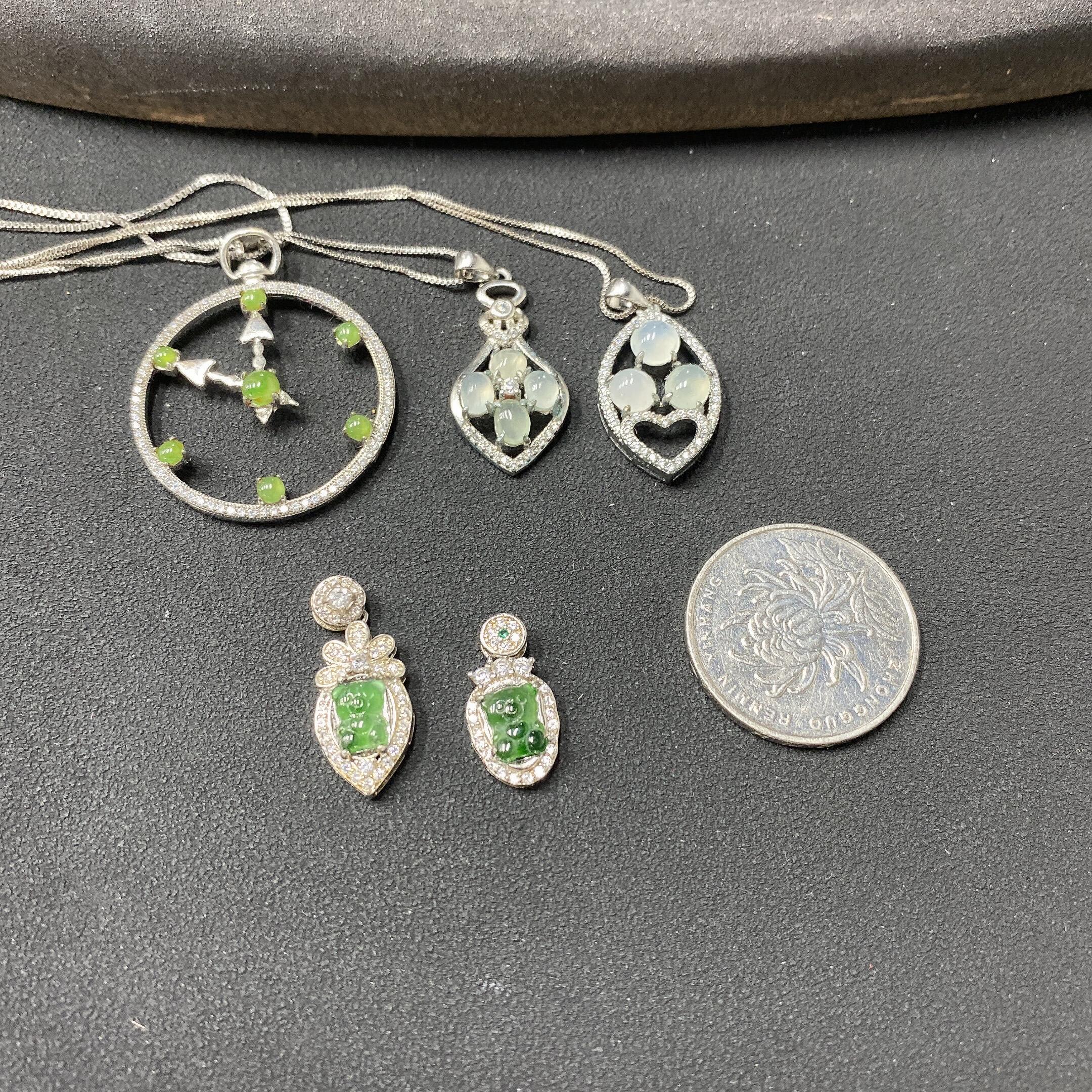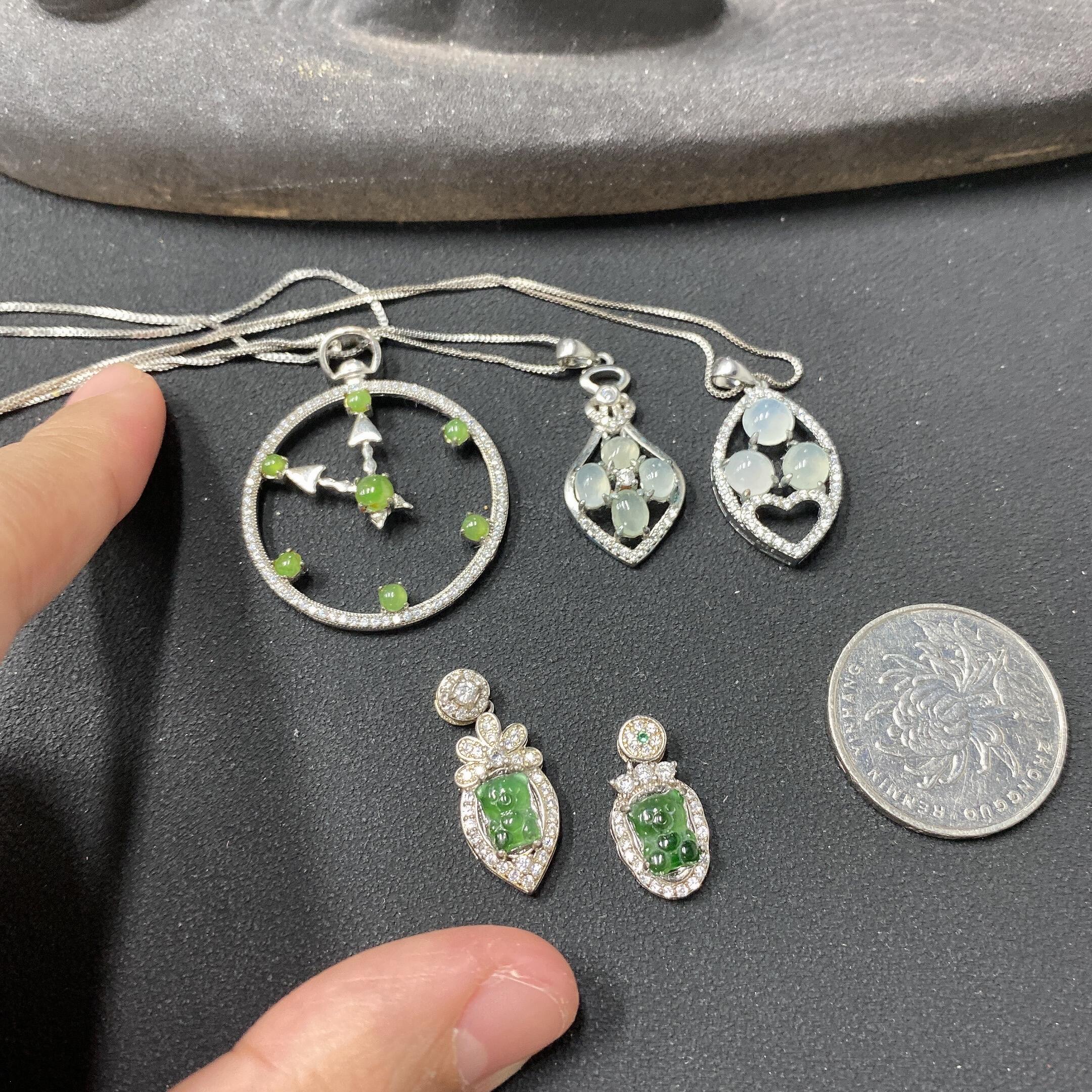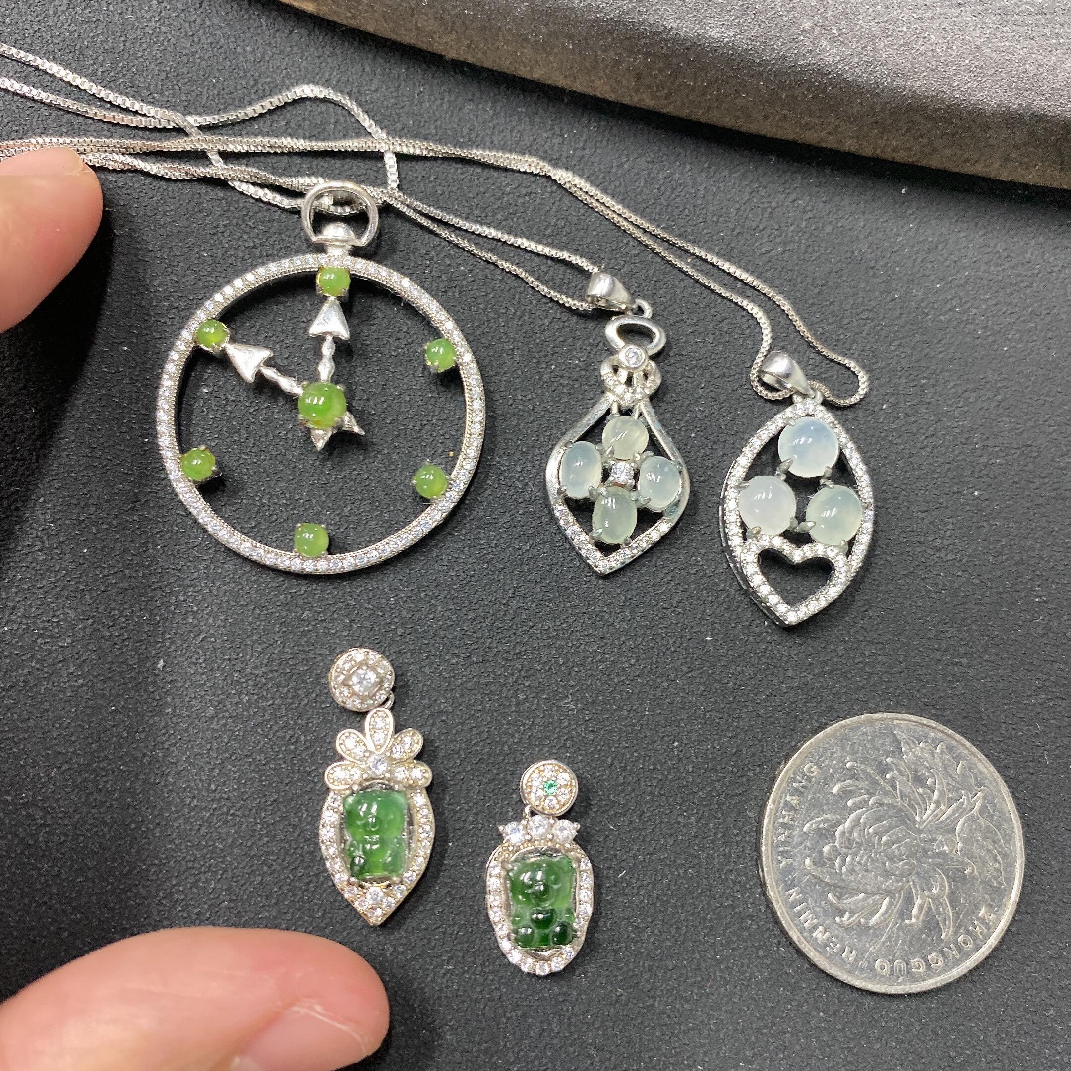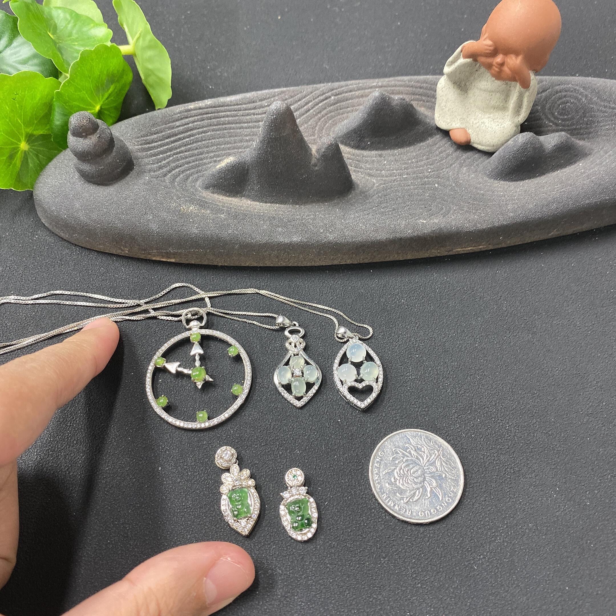 Jadeite Inlaid Pendant Bulk Lot with Individual Surface Cracks (Gold Excluded)