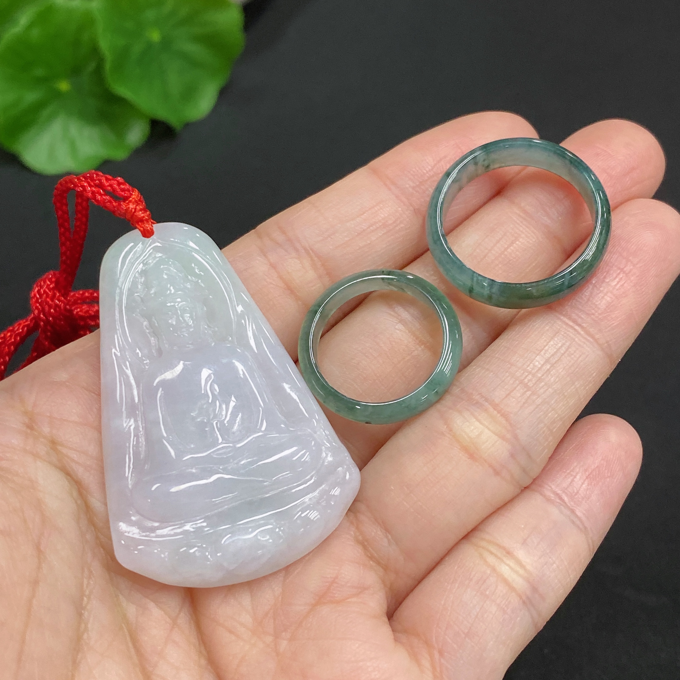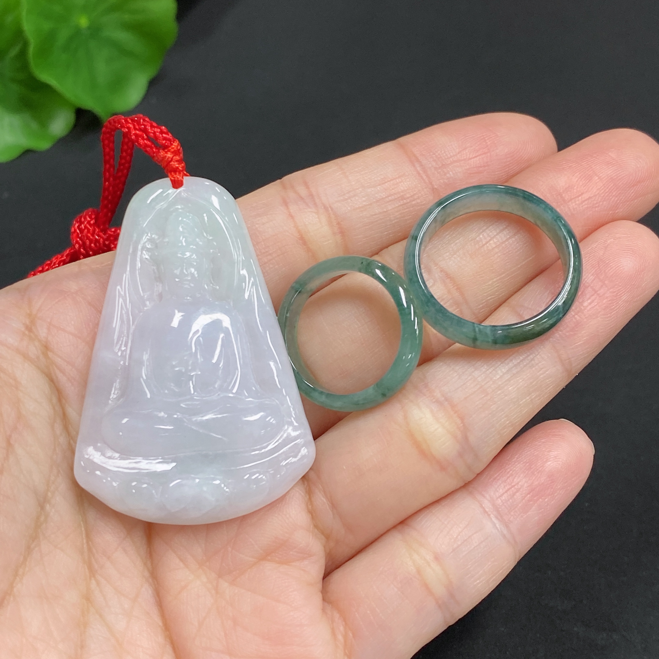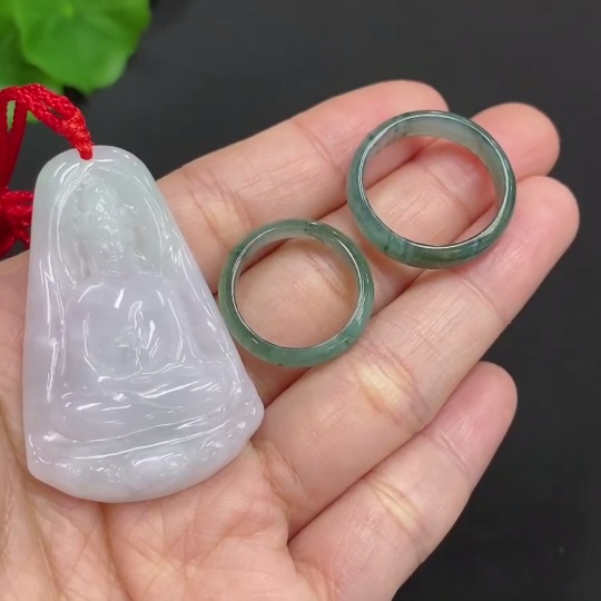 Jadeite Pendant Guanyin Ring Size 16/9