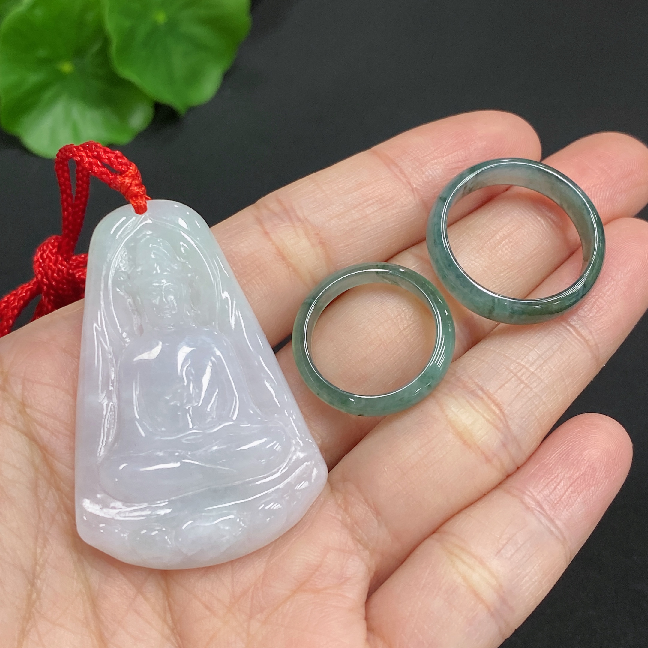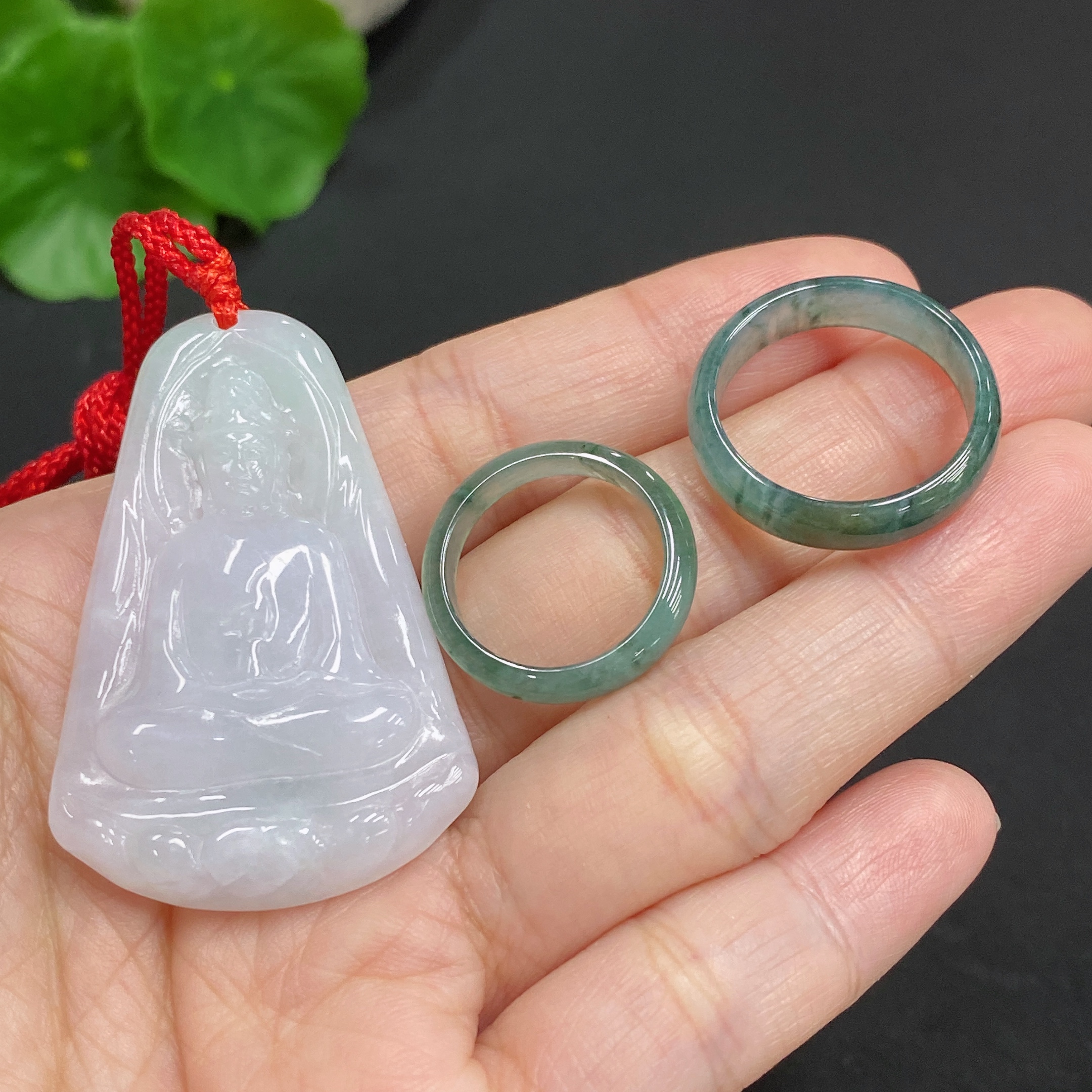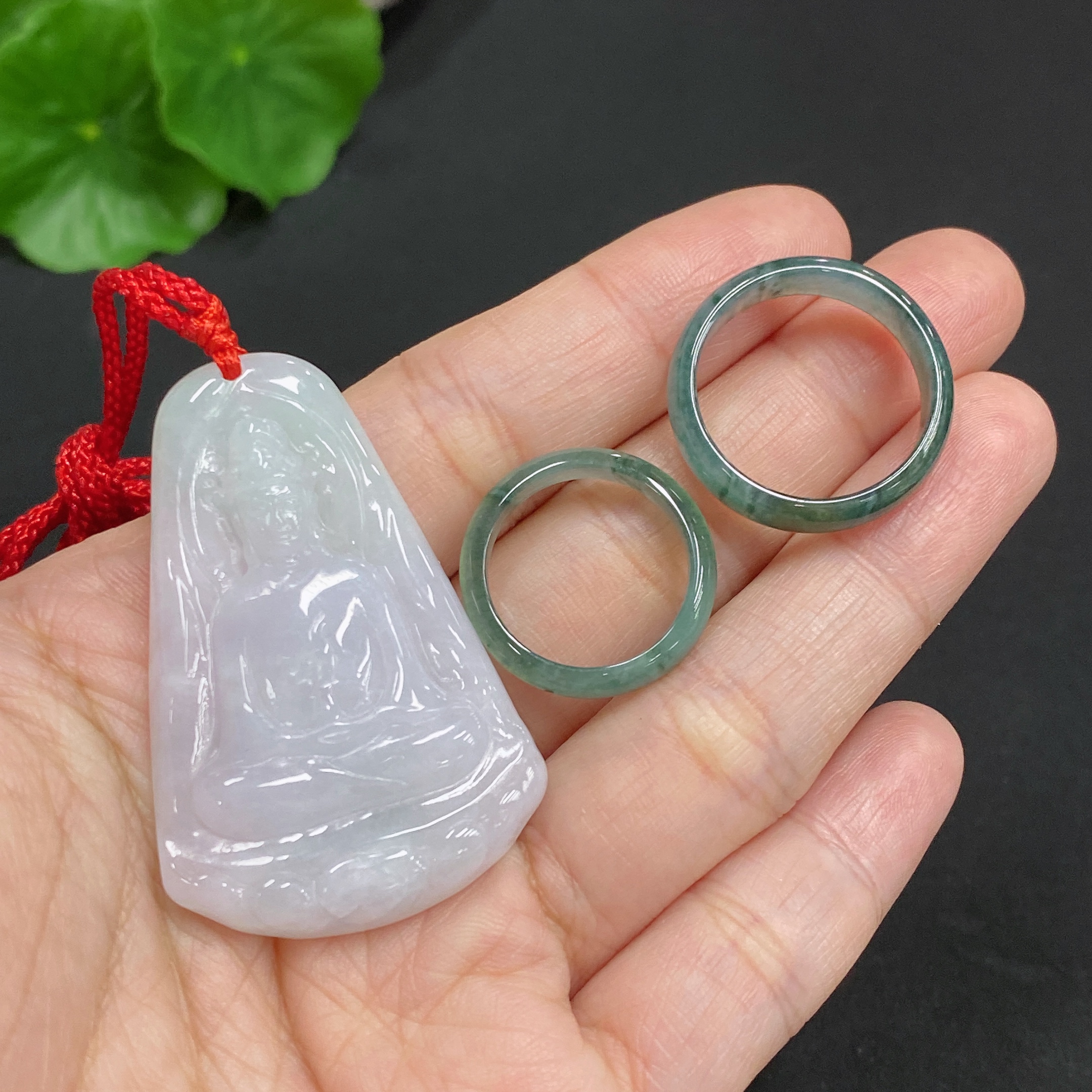 Jadeite Pendant Guanyin Ring Size 16/9