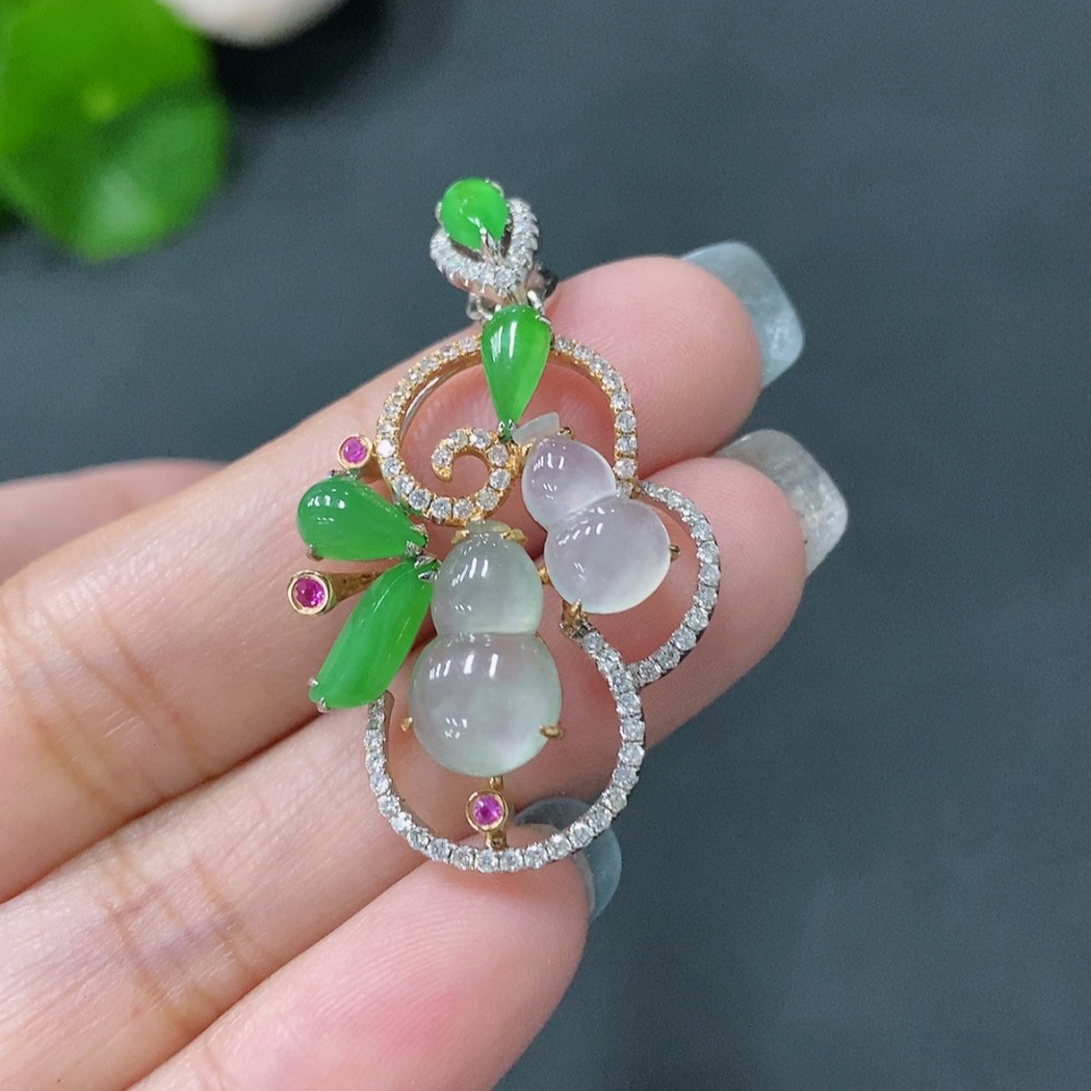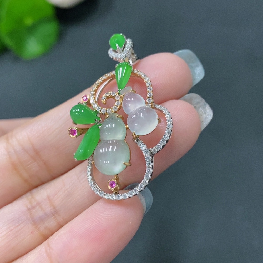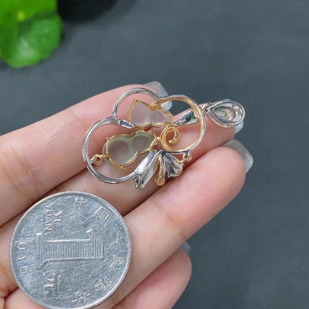 Jadeite inlaid pendant 18k gold inlaid total weight about 5.5g