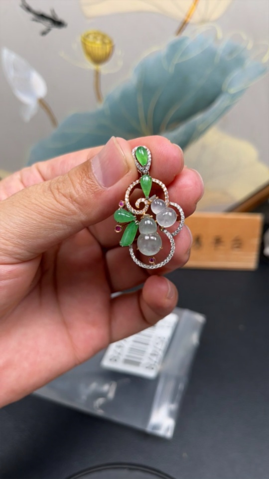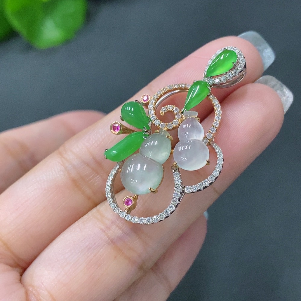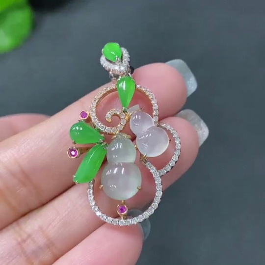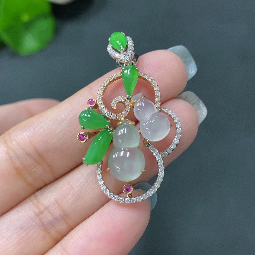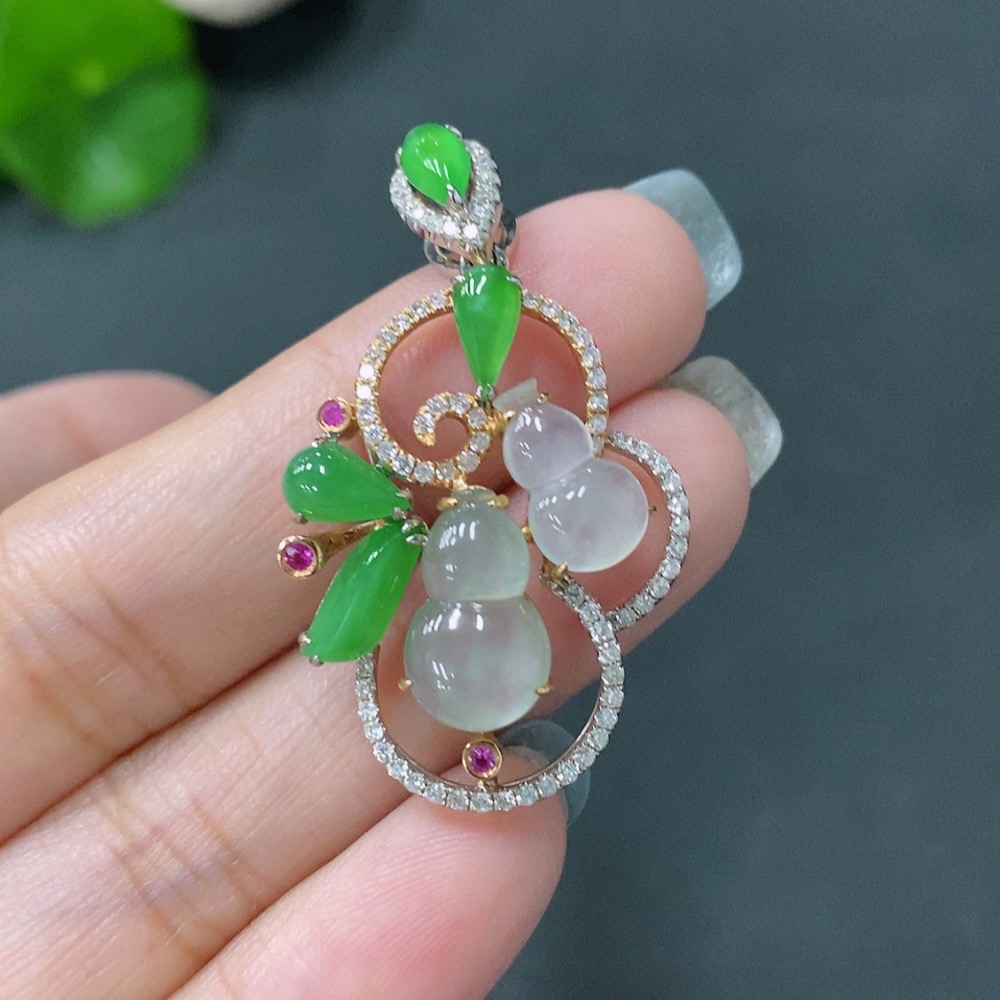 Jadeite inlaid pendant 18k gold inlaid total weight about 5.5g