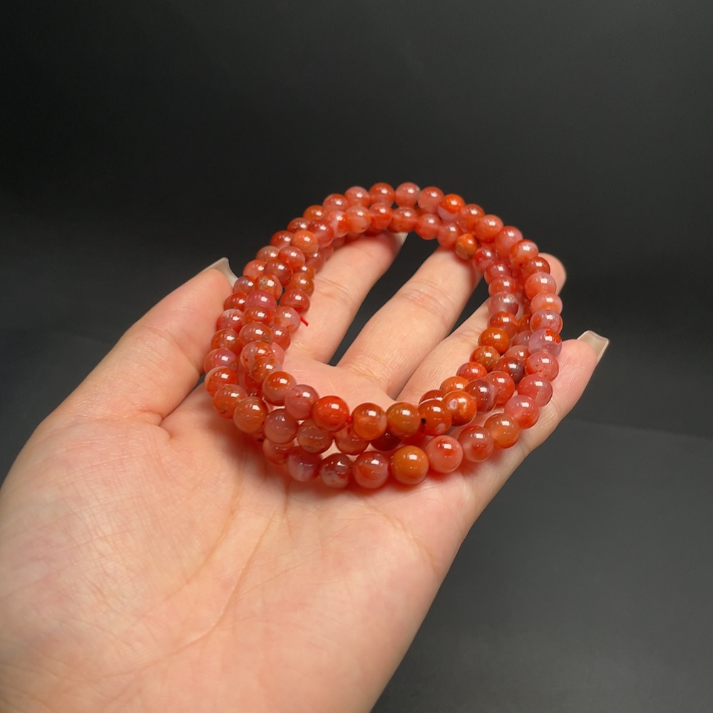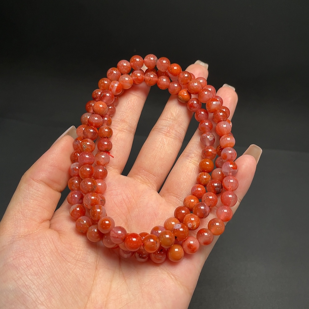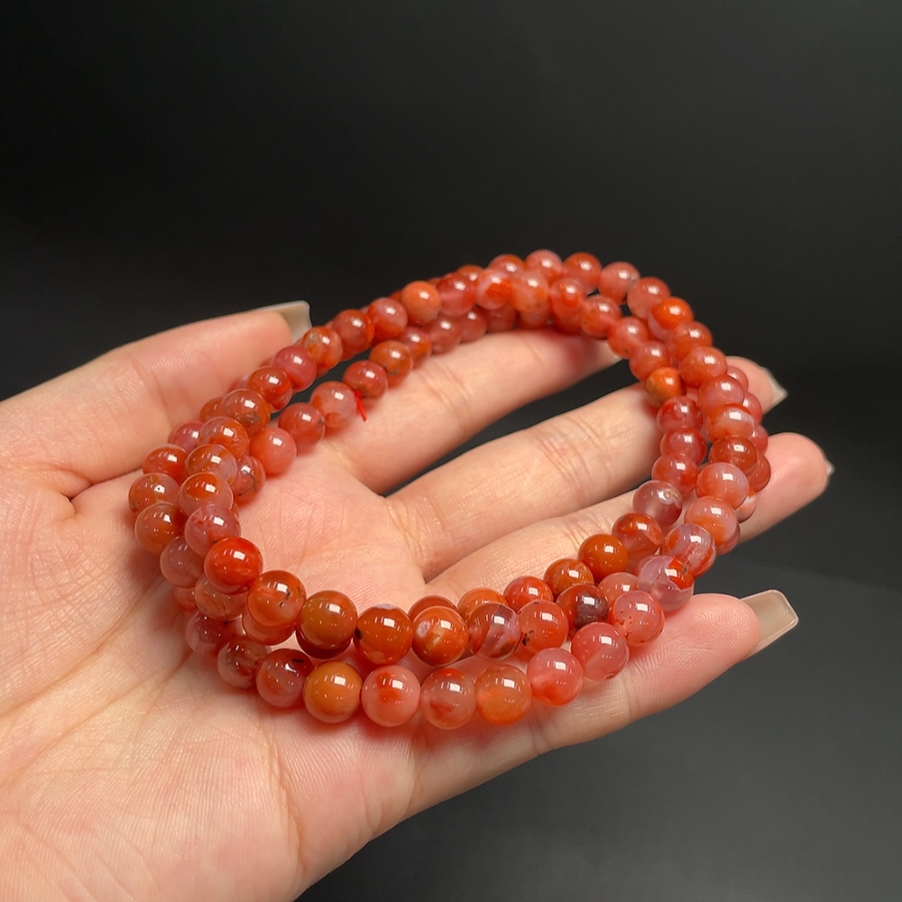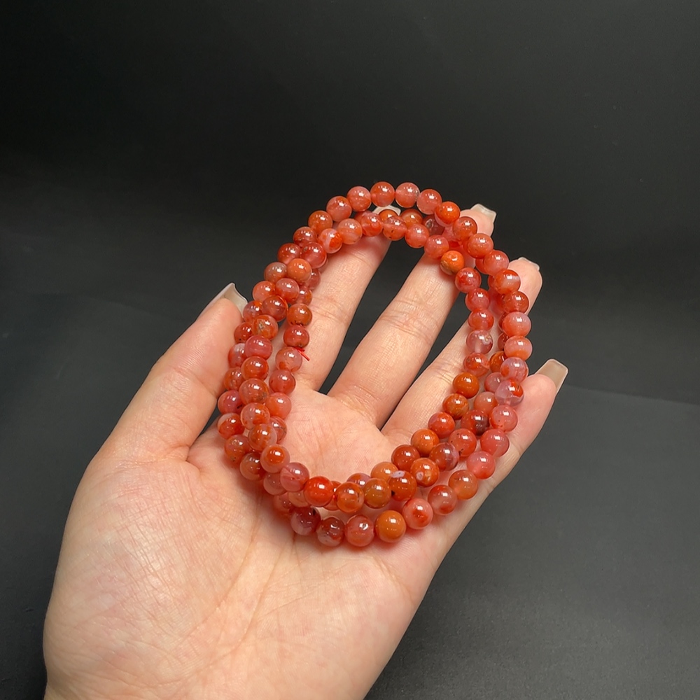 South Red Agate Bead Necklace with Visible Organic Matter, Total Weight Approx. 53.82g, Bead Size Approx. 7.2mm