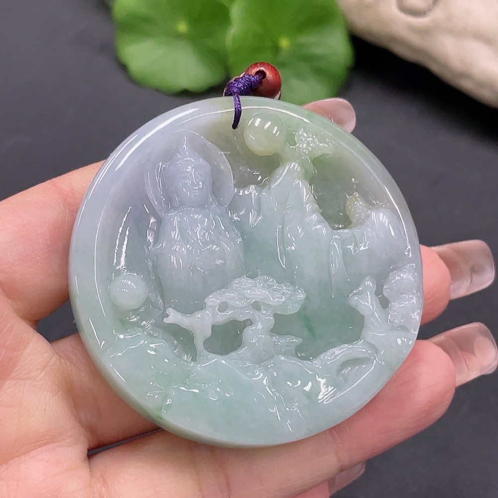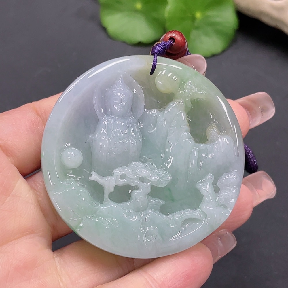 Jadeite Landscape Guanyin Pendant Total Weight 70.587g
