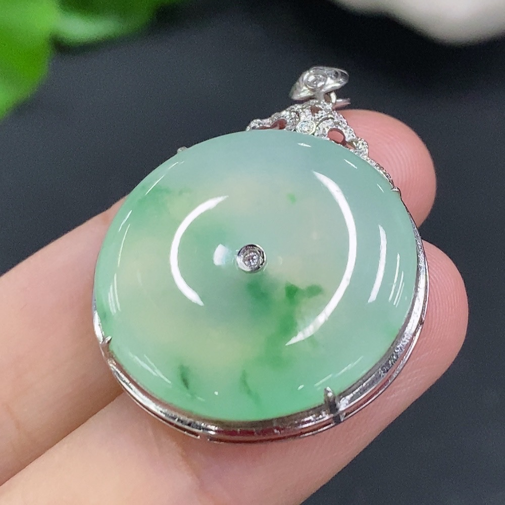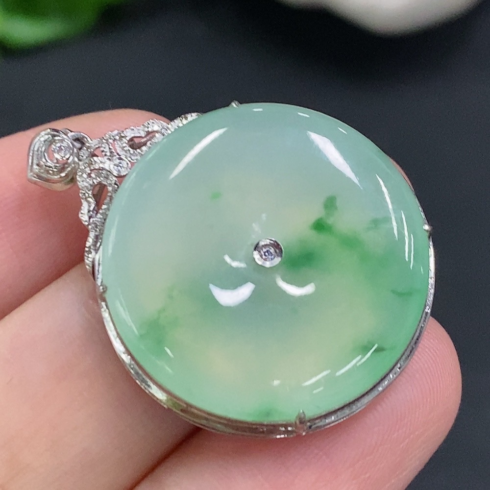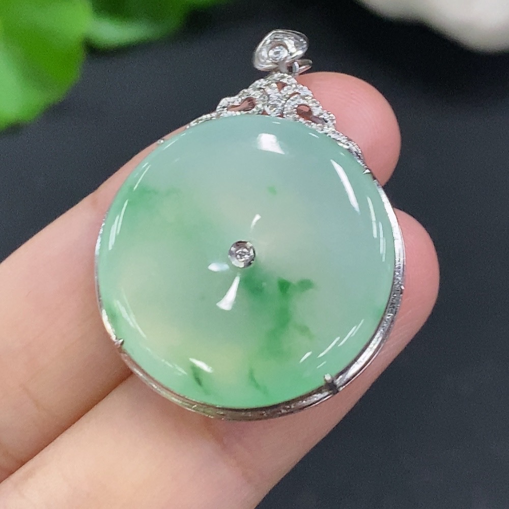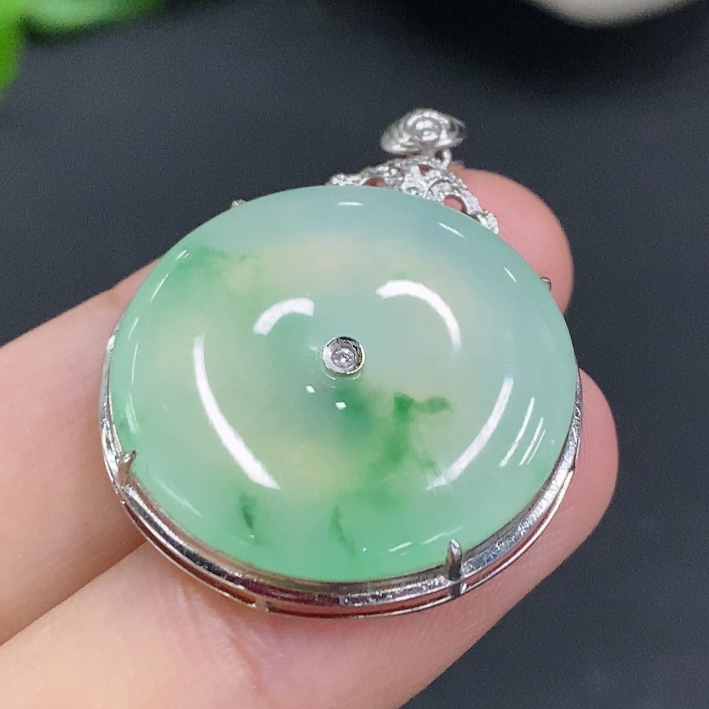 Jadeite Pendant with 18K Gold Setting, Total Weight Approx. 6.3g