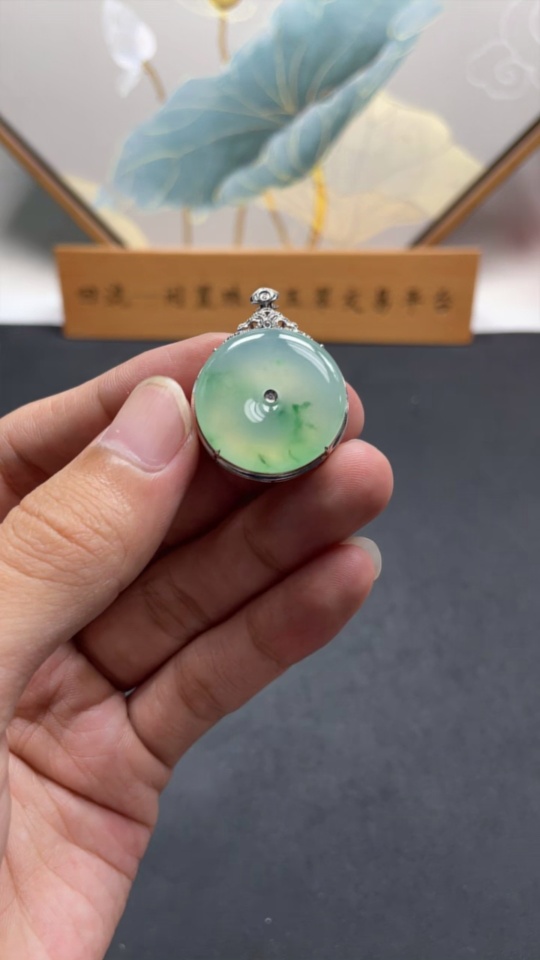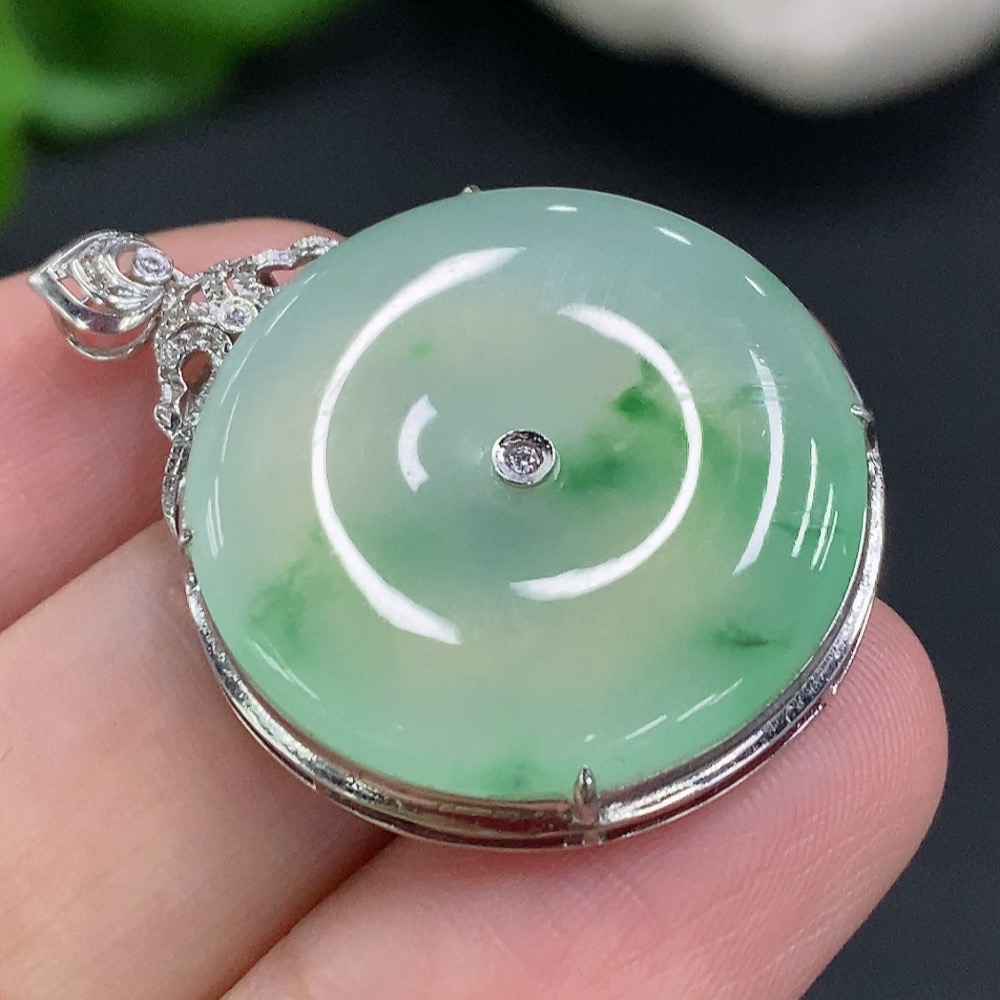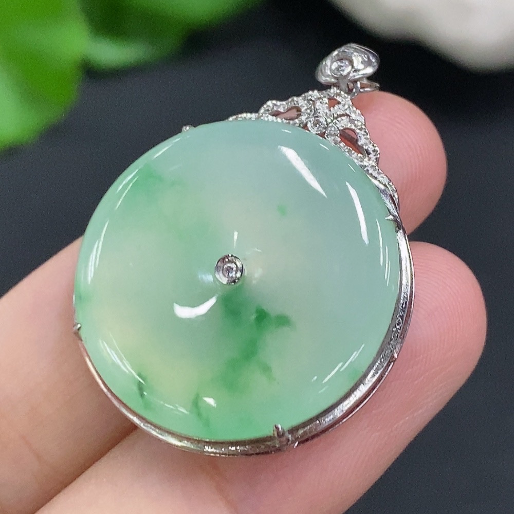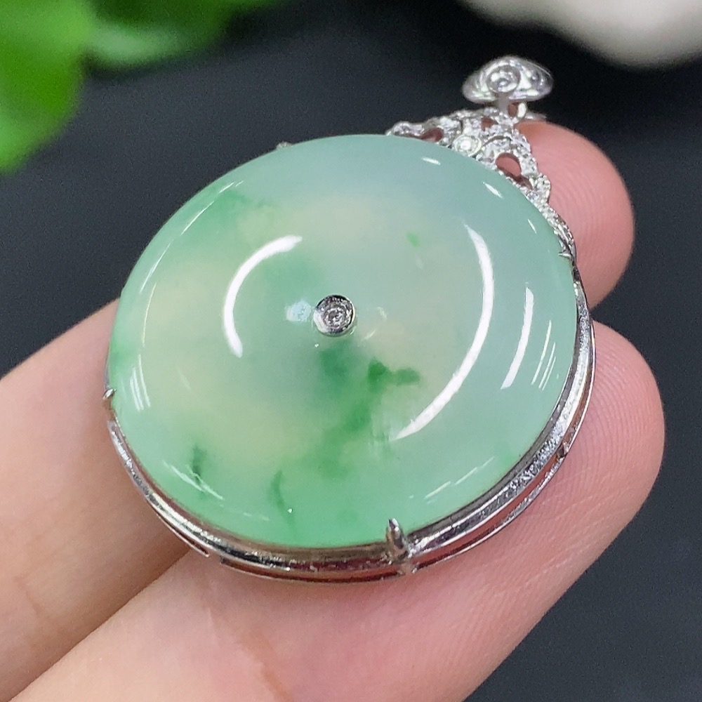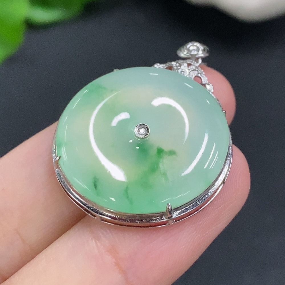 Jadeite Pendant with 18K Gold Setting, Total Weight Approx. 6.3g