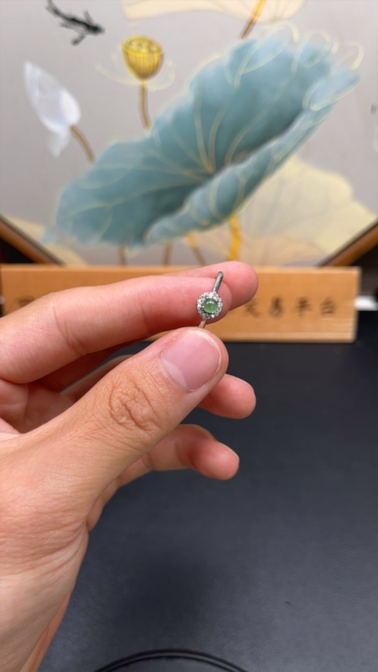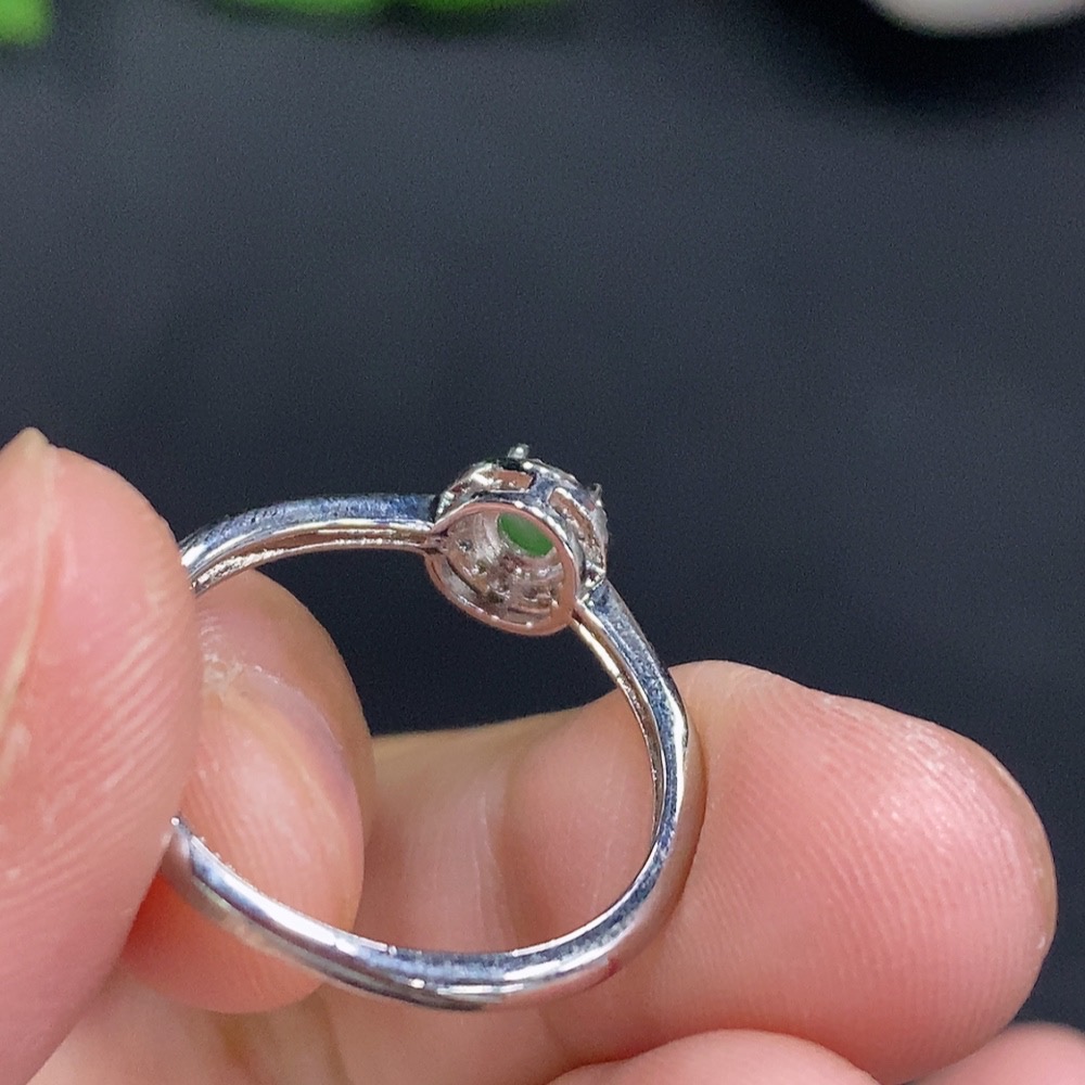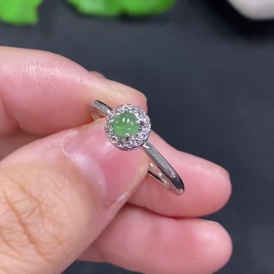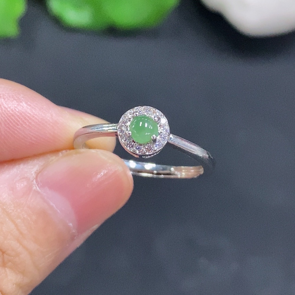 Jadeite Cabochon Inlaid Ring Adjustable Size Non-Gold Setting