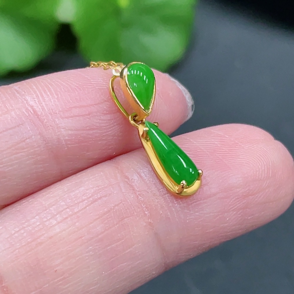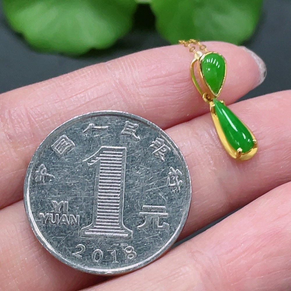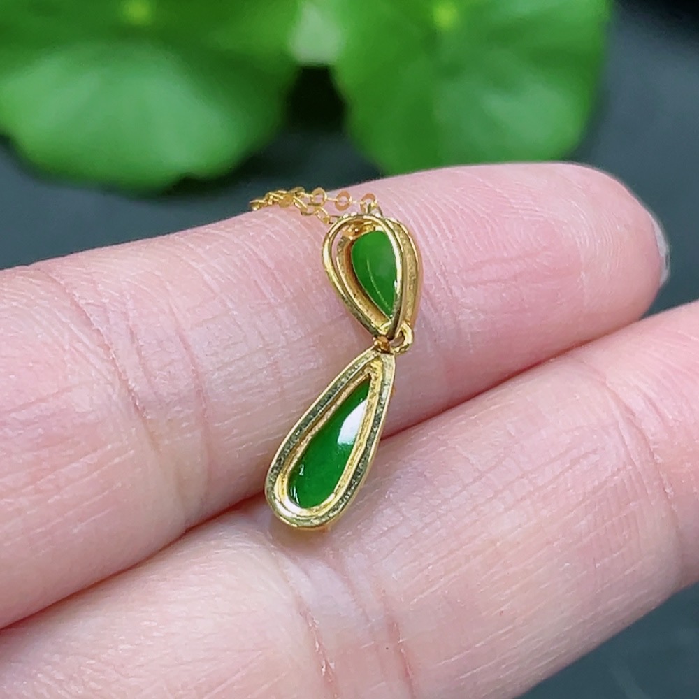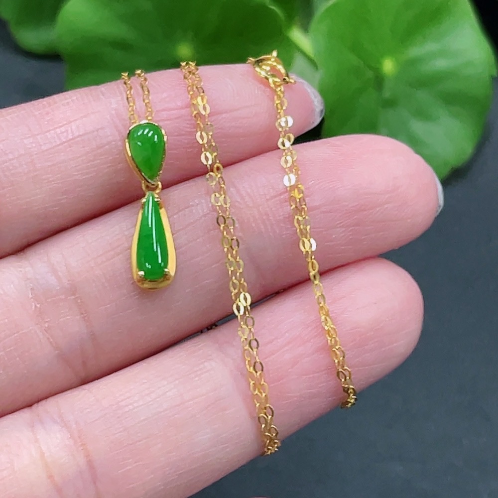 Jadeite Inlaid Pendant Full 18K Gold Total Weight Approx. 1.43g Including Chain