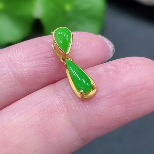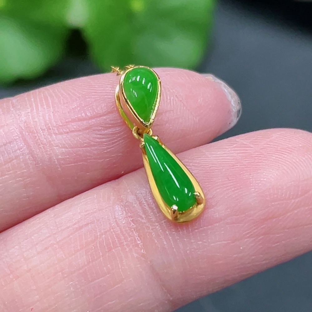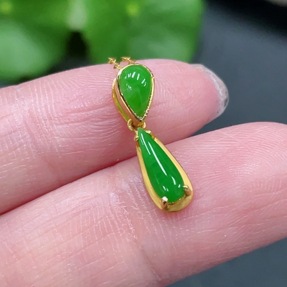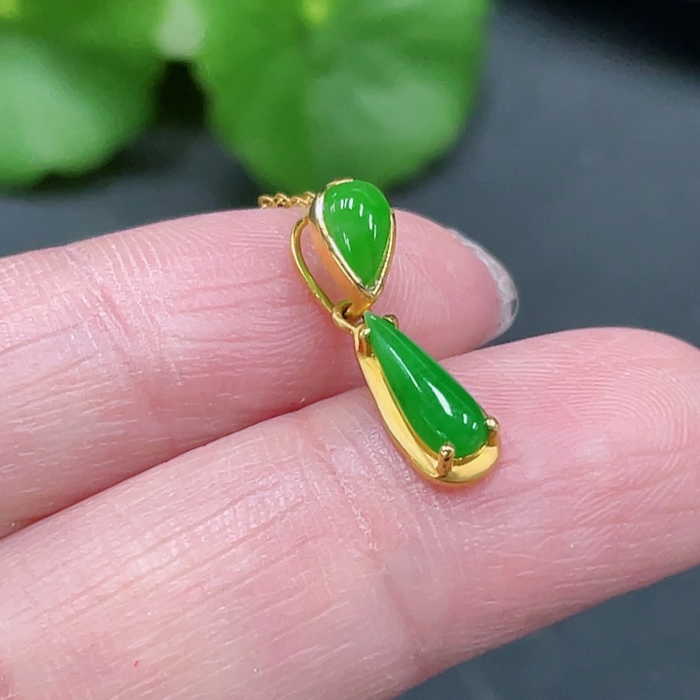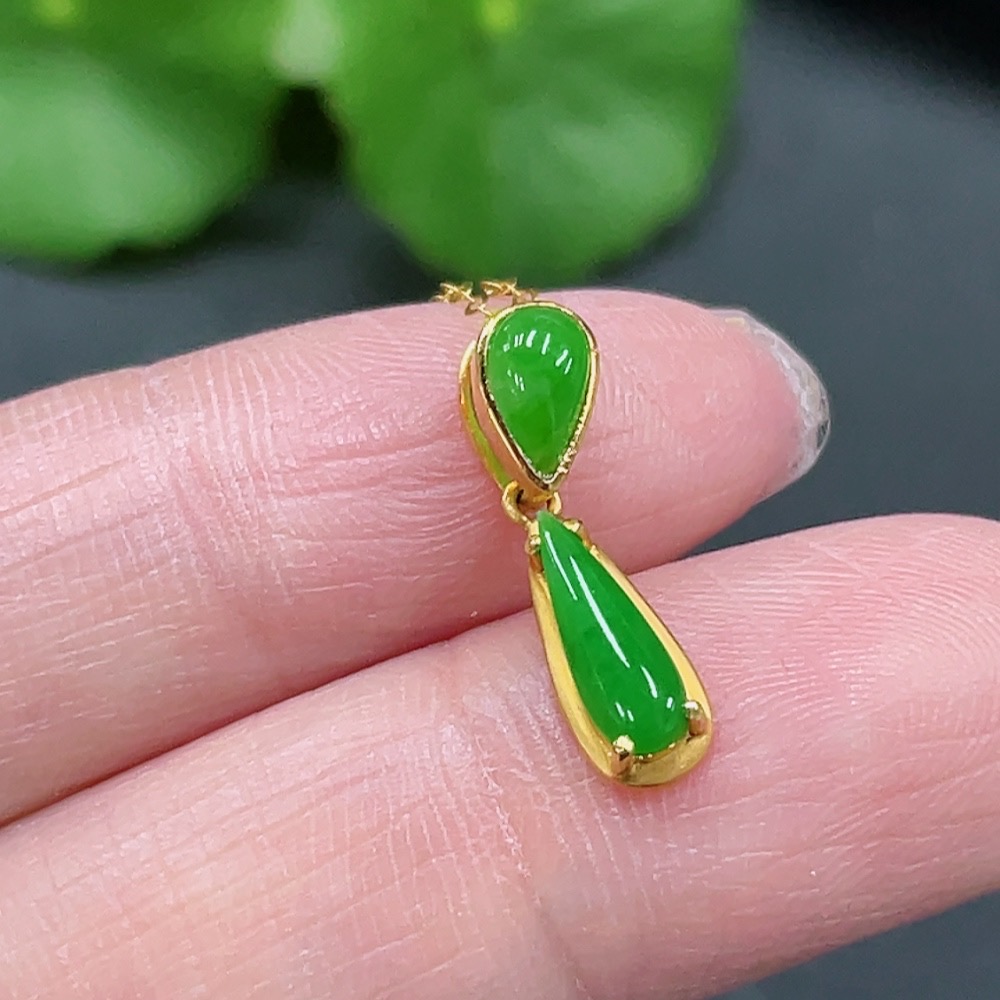 Jadeite Inlaid Pendant Full 18K Gold Total Weight Approx. 1.43g Including Chain
