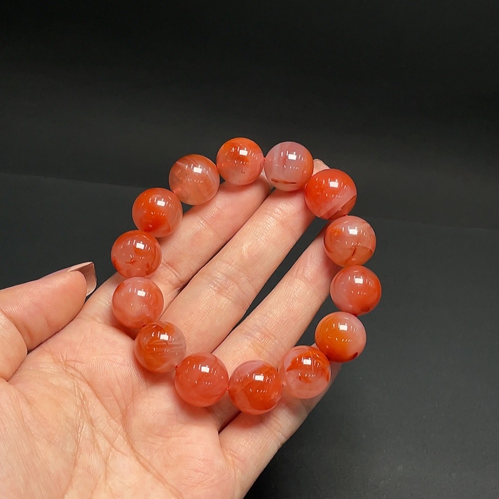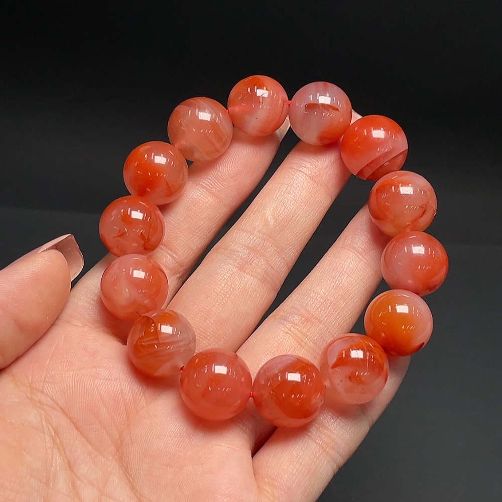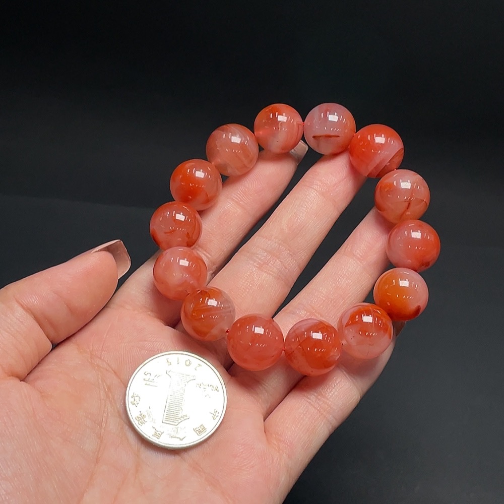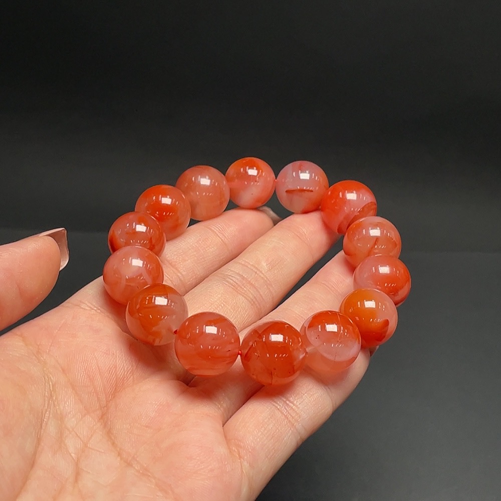 South Red Agate Bracelet, Approx. 14.4mm, Total Weight Approx. 57.98g, Visible Organic Matter