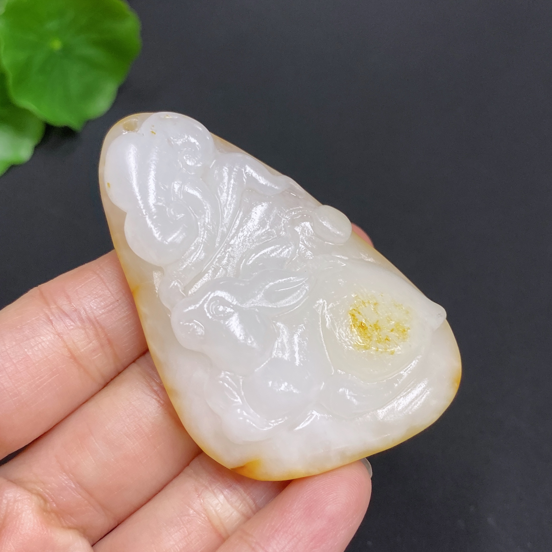 Hetian Jade Pendant Rabbit Undetermined Skin Color Origin Total Weight Approx. 44.6g