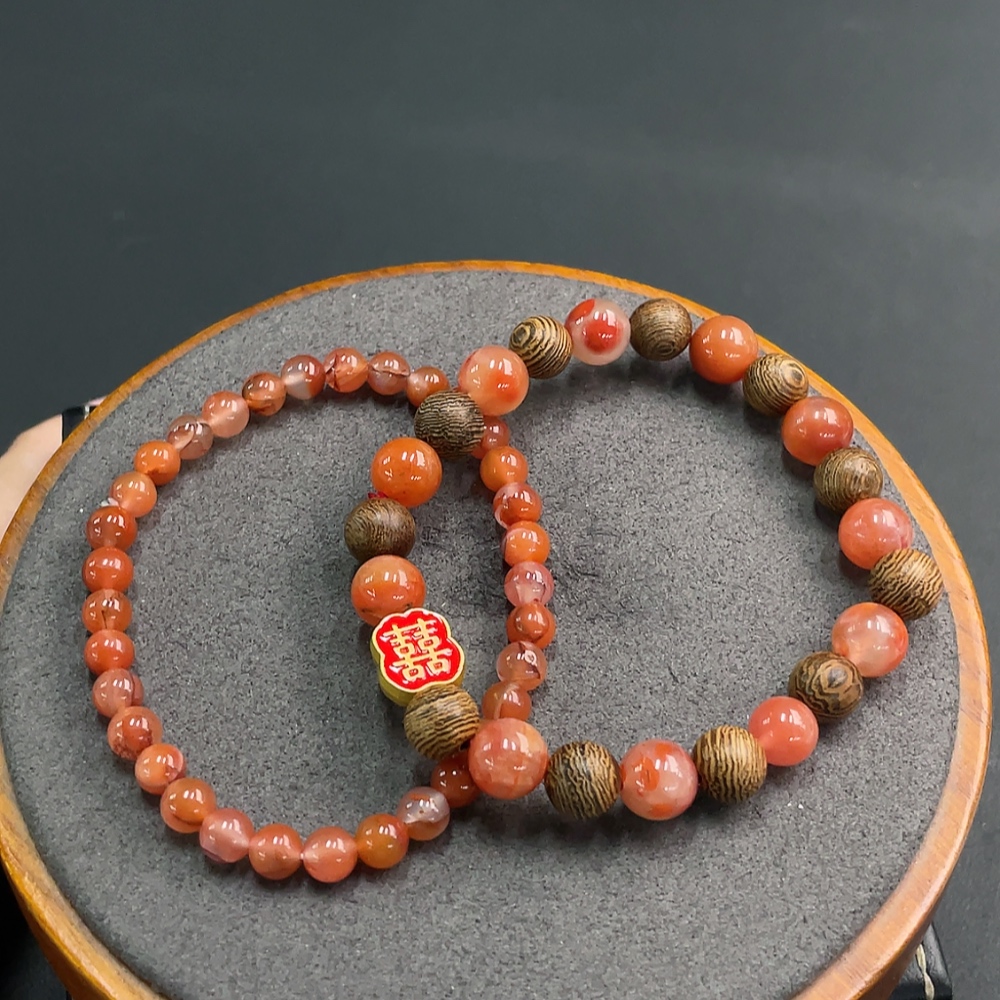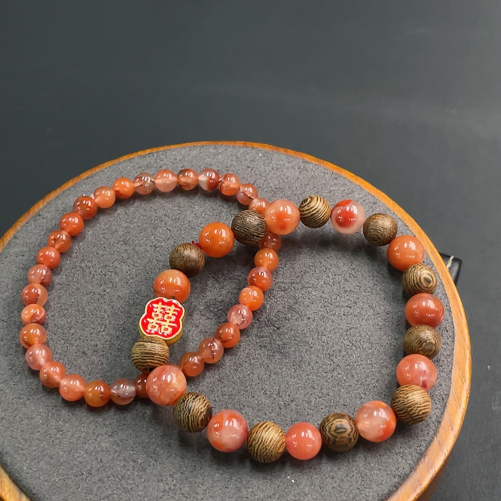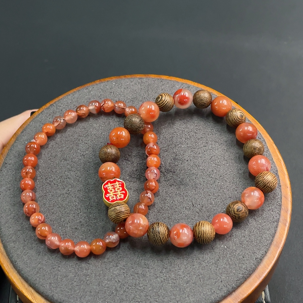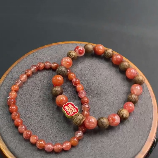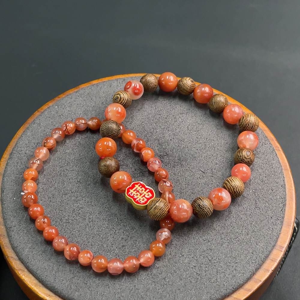 Red Agate Bracelet with Visible Organic Inclusions, Non-Gold Inlaid, Total Weight Approx. 21.97g, Sell as a Lot