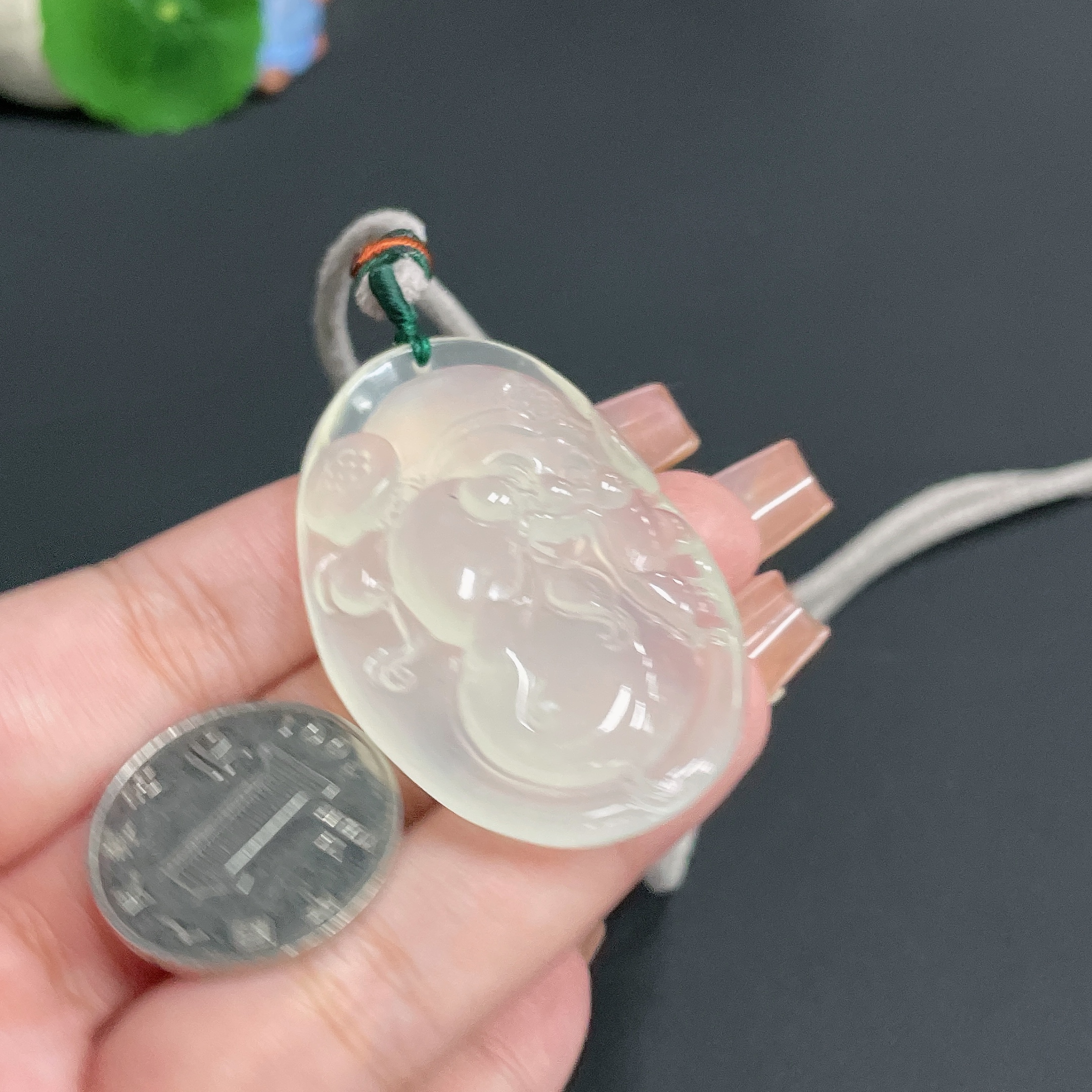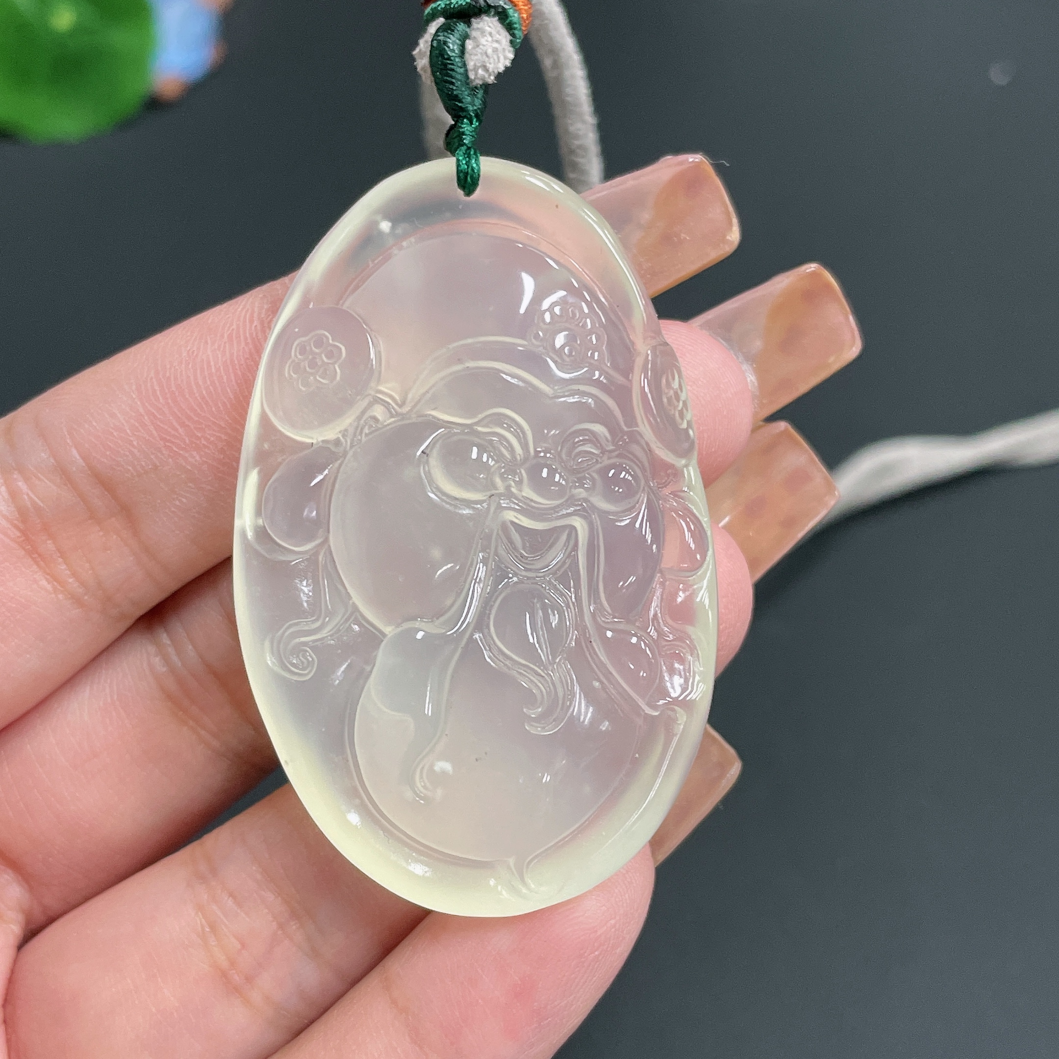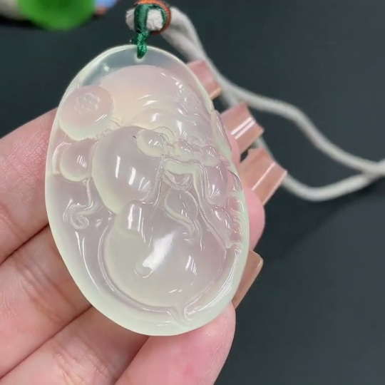 Xiuyu (serpentine jade) pendant God of Wealth with rope, total weight 30.26g