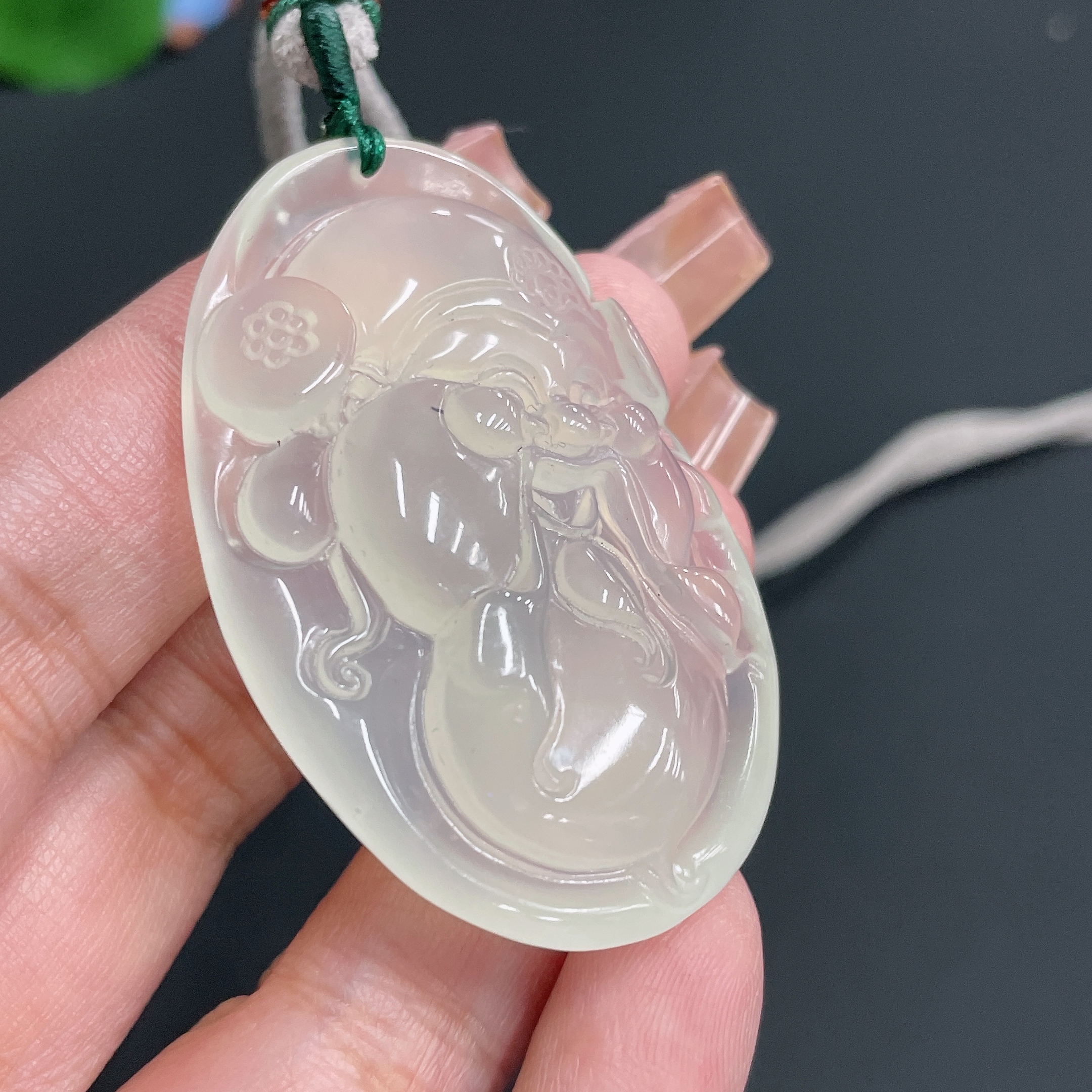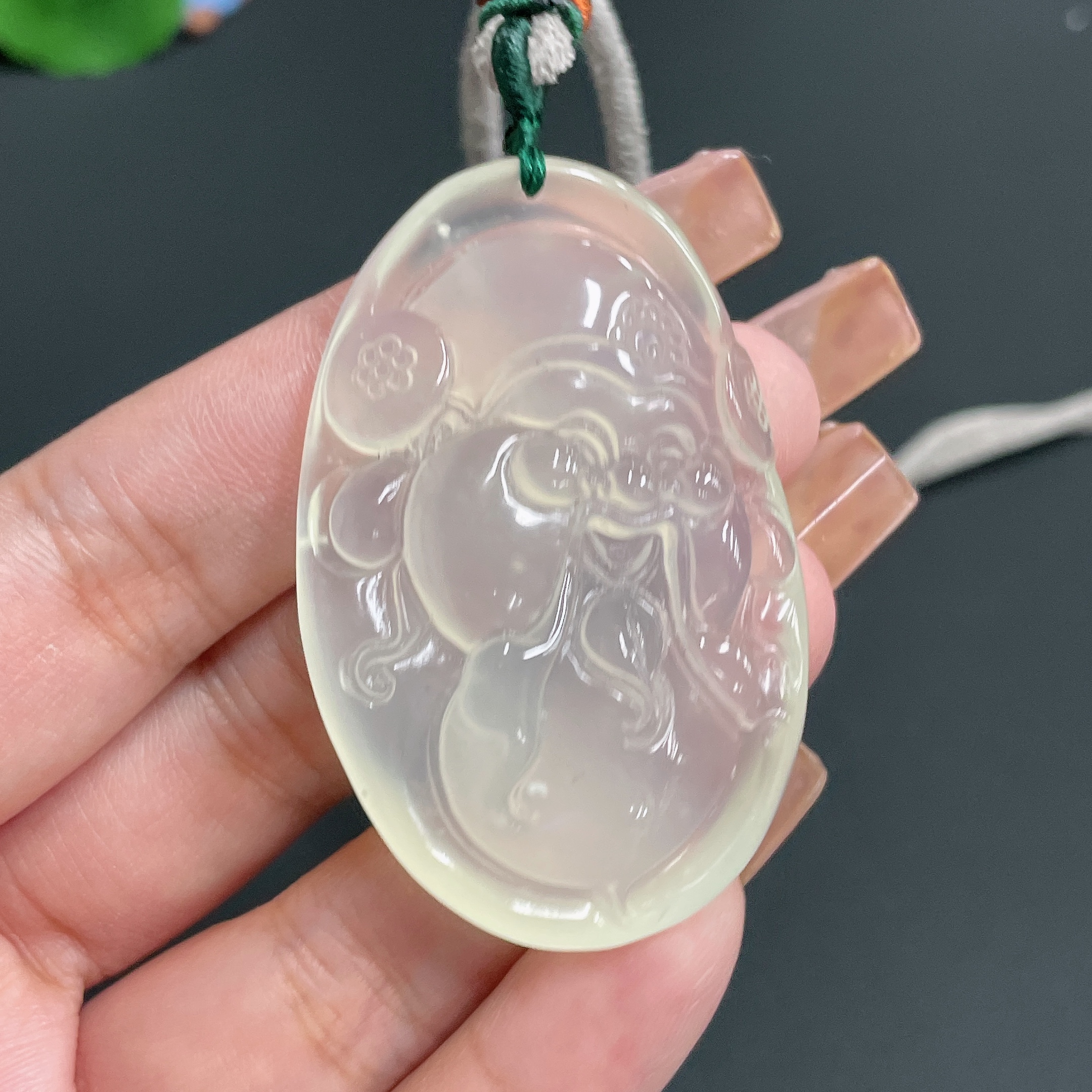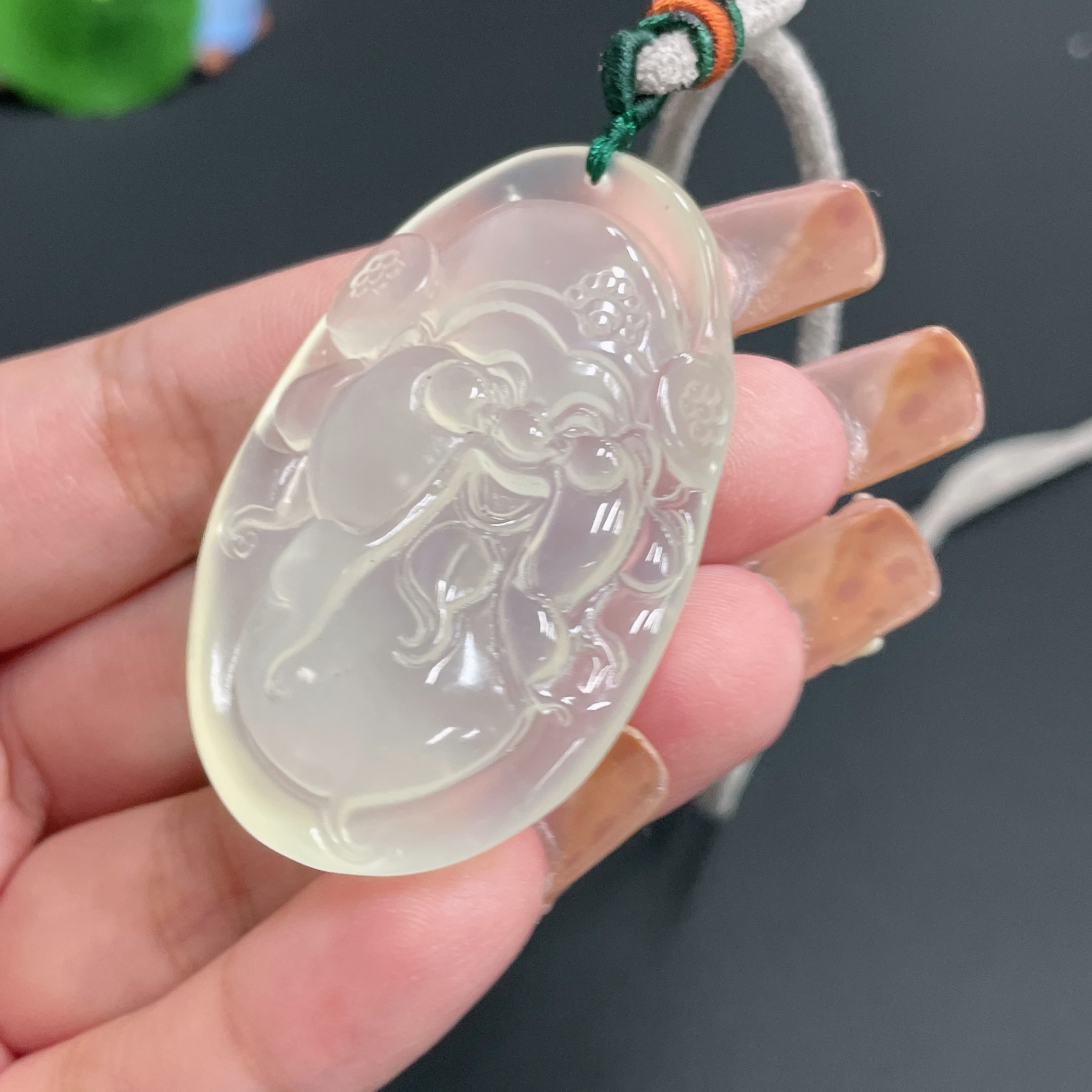 Xiuyu (serpentine jade) pendant God of Wealth with rope, total weight 30.26g