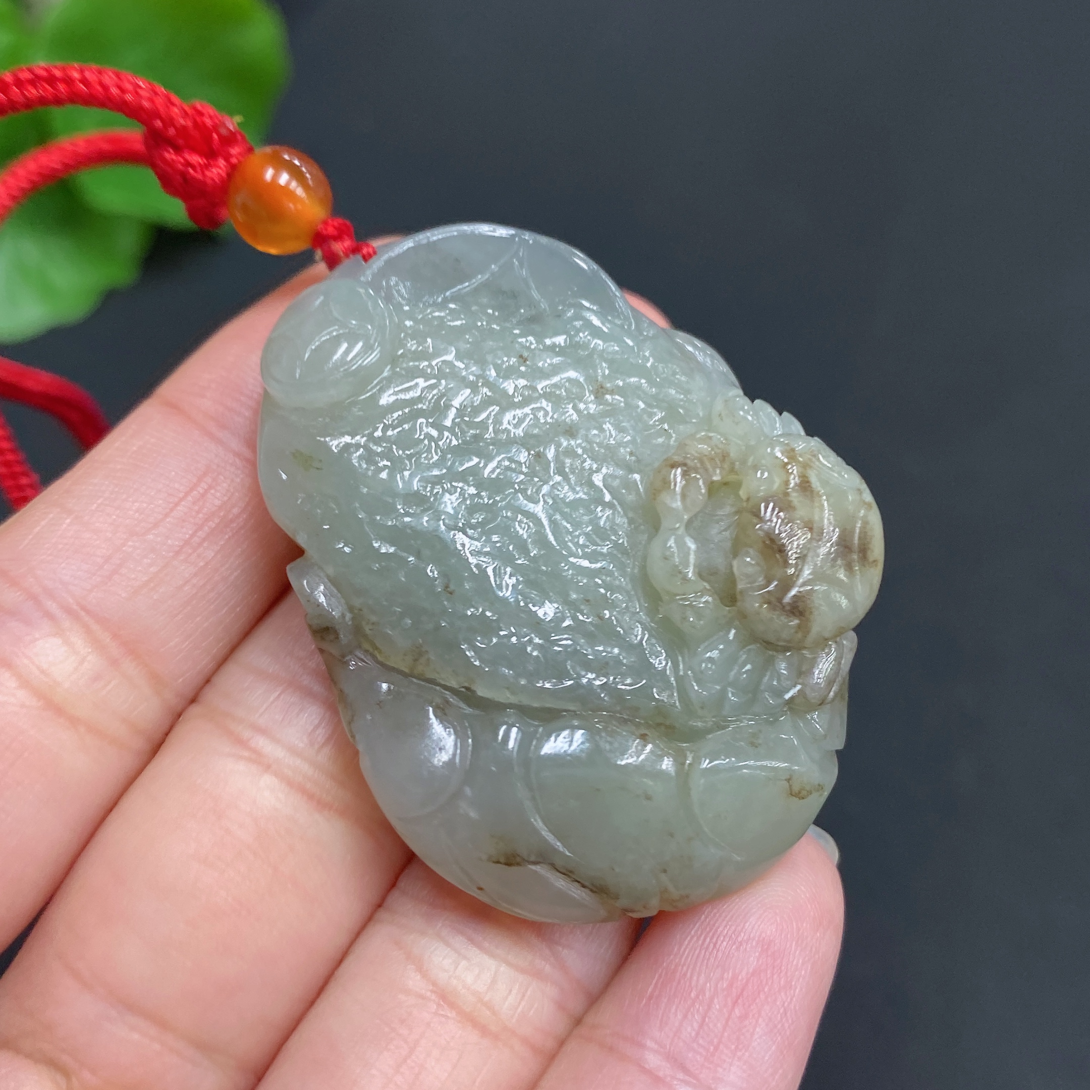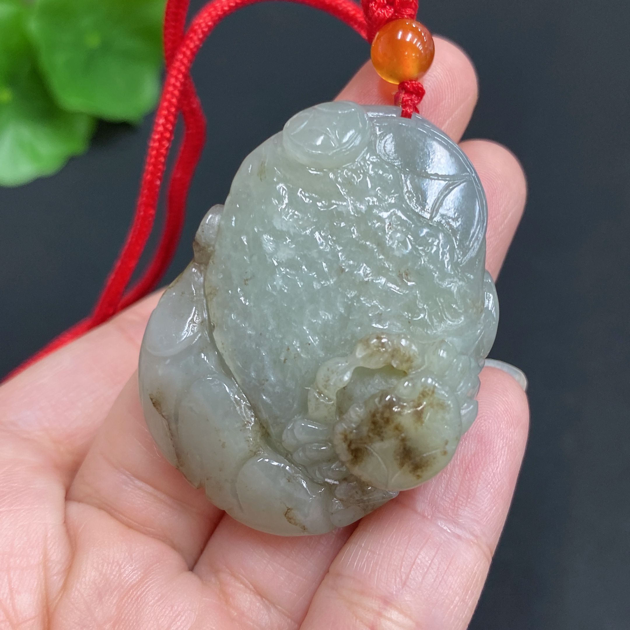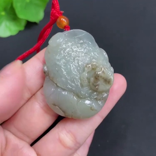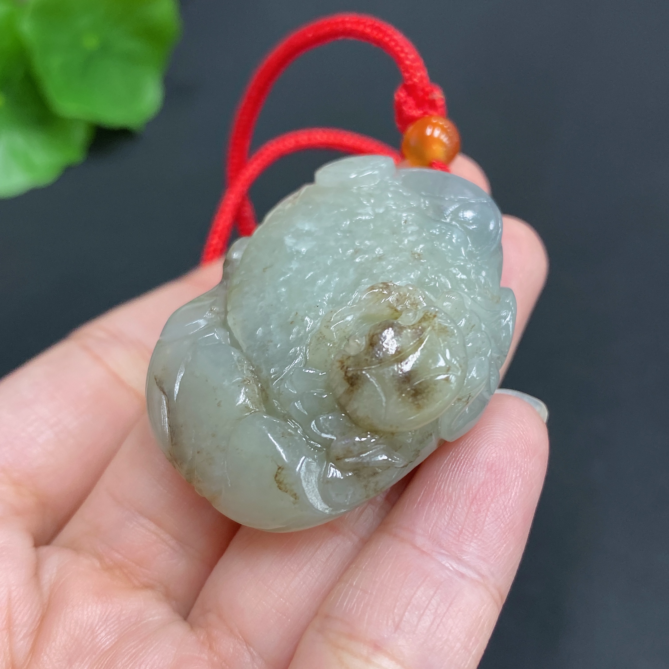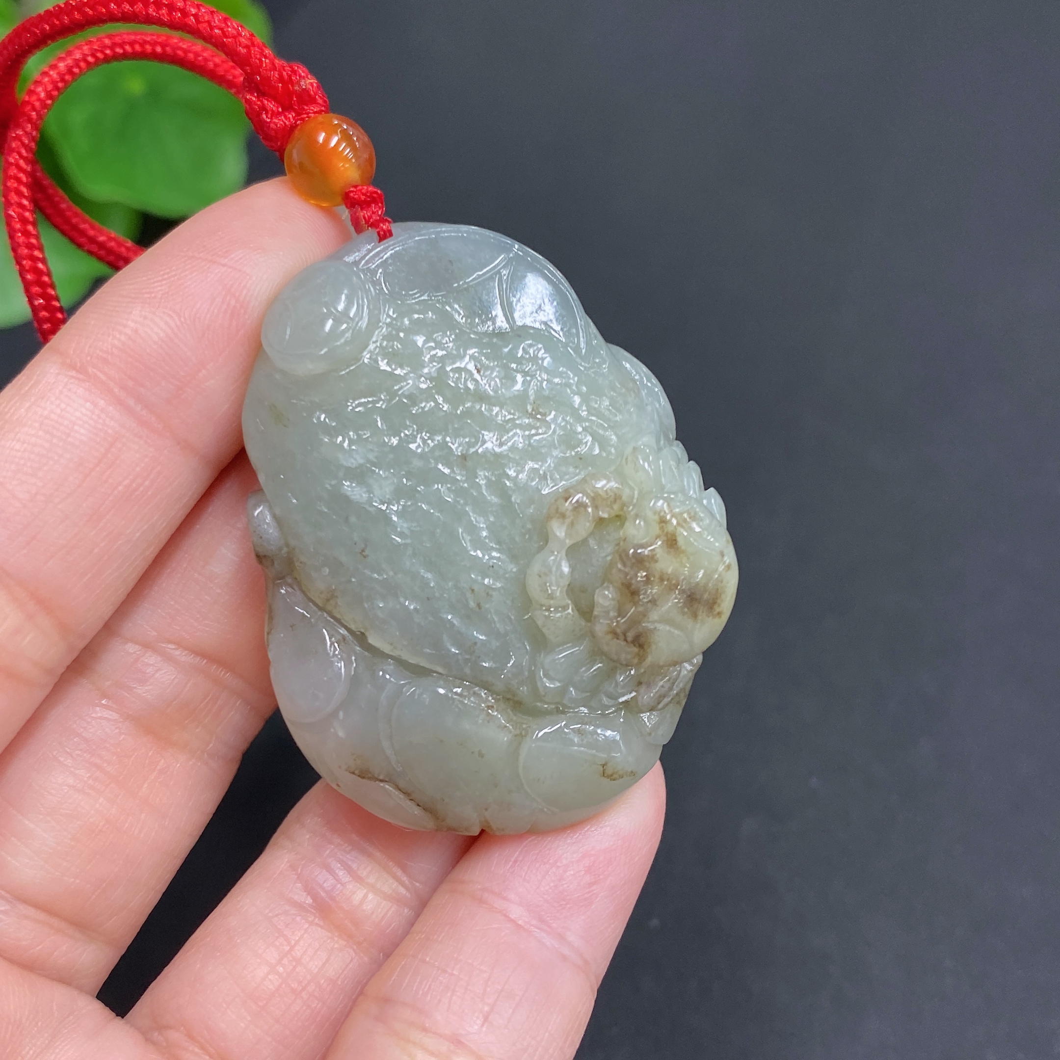 Hetian Jade Seed Material Pendant, Fortune from All Directions, Total Weight (including rope) 30.4g
