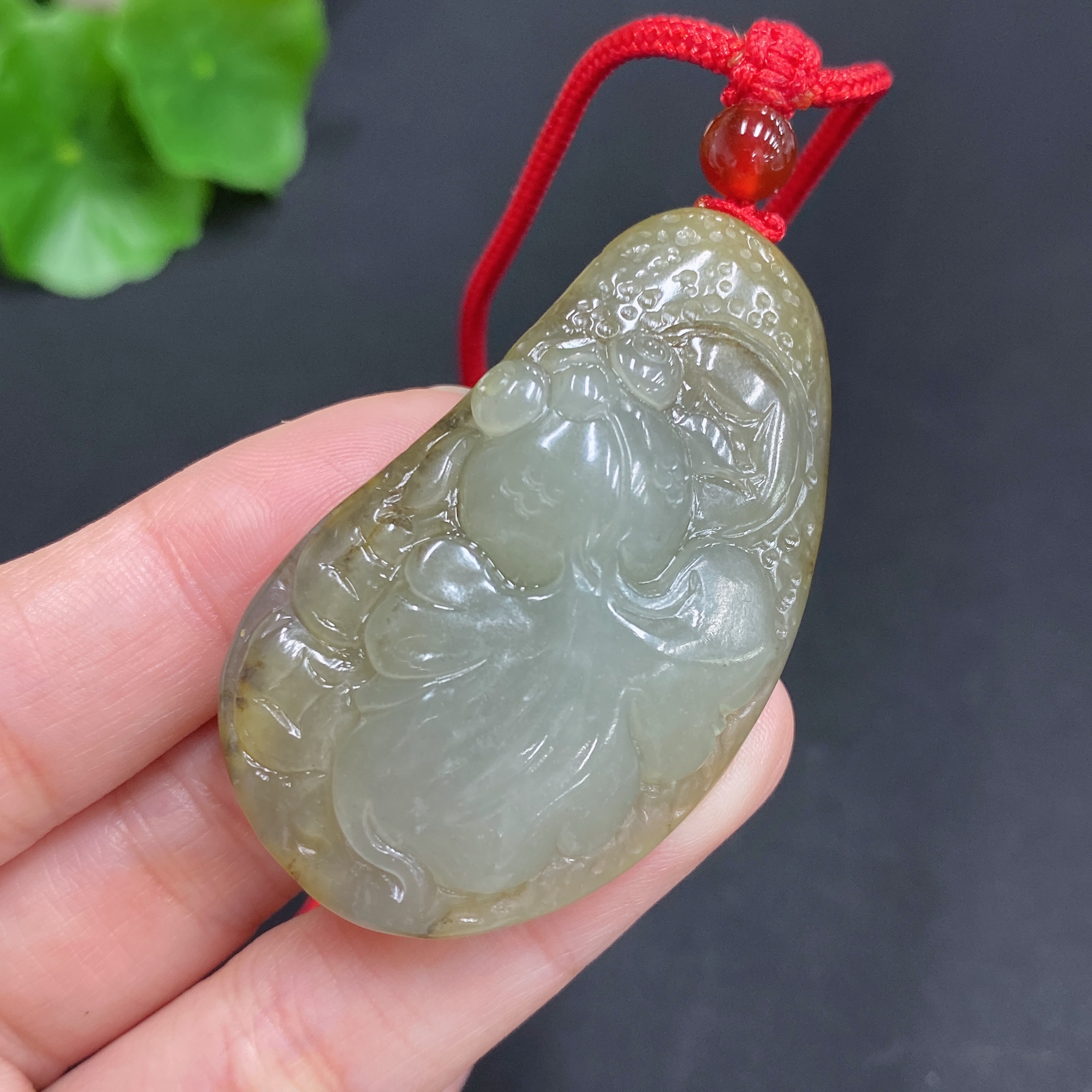 Hetian Jade Seed Material Pendant - Goldfish - Total Weight Approx. (Including Rope) 32g - Undetermined Skin Color Cause