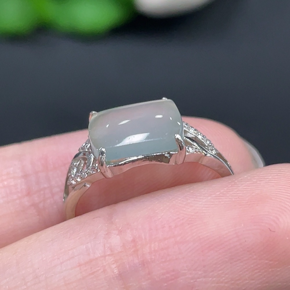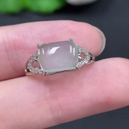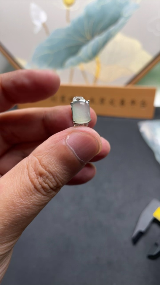 Jadeite Cabochon Ring Non-Gold Setting Adjustable Size Total Weight Approx. 1.78g