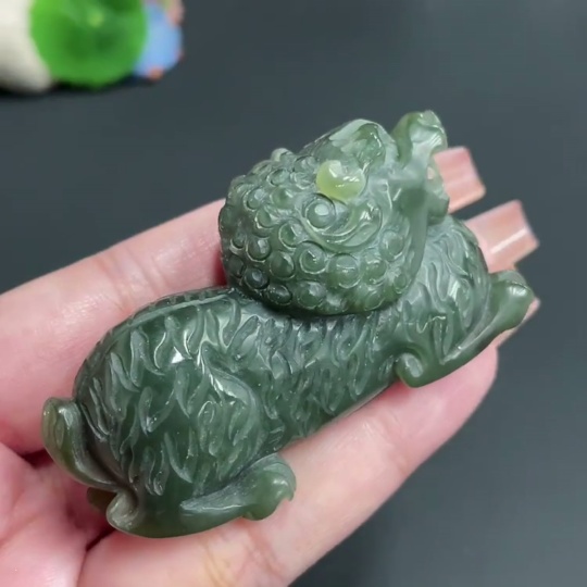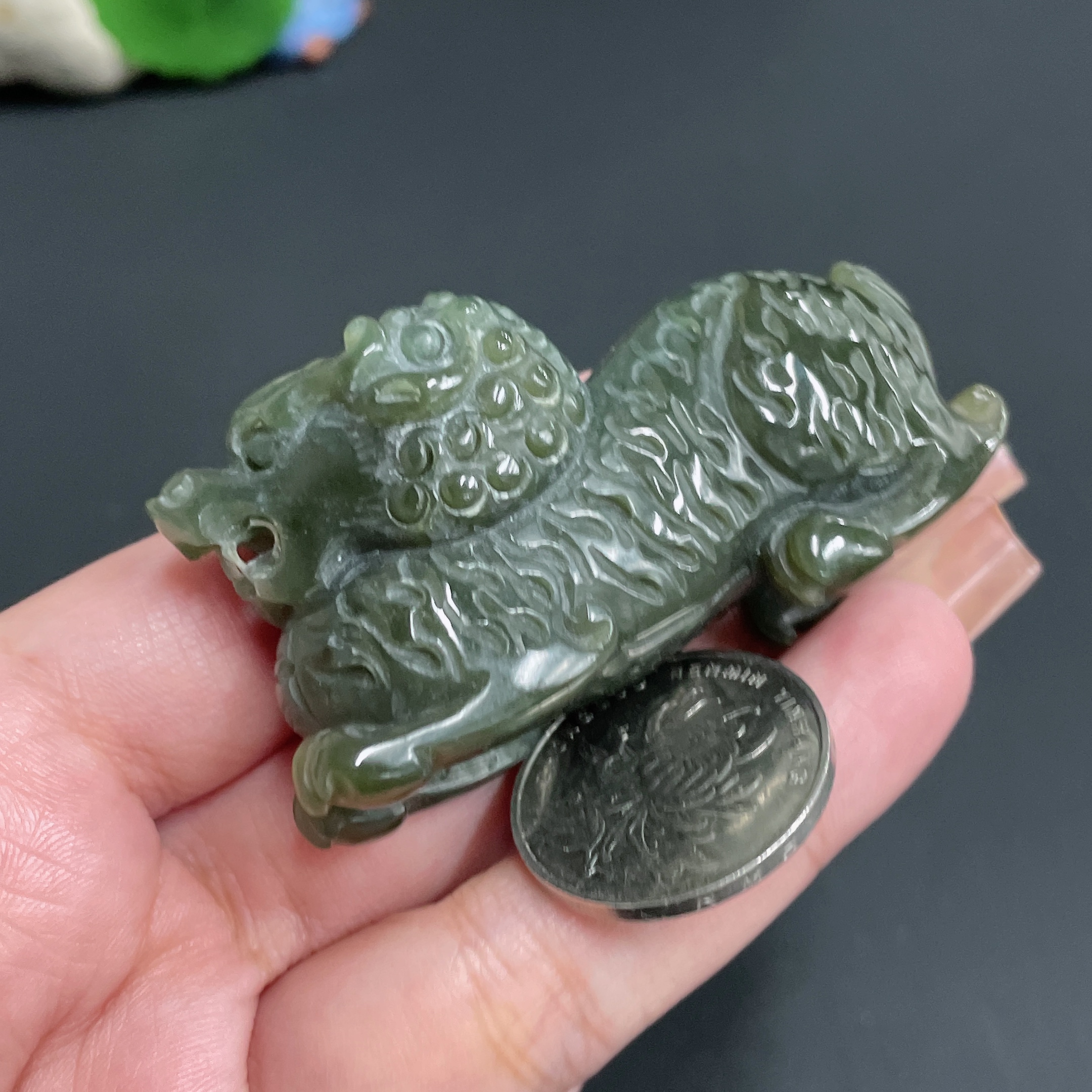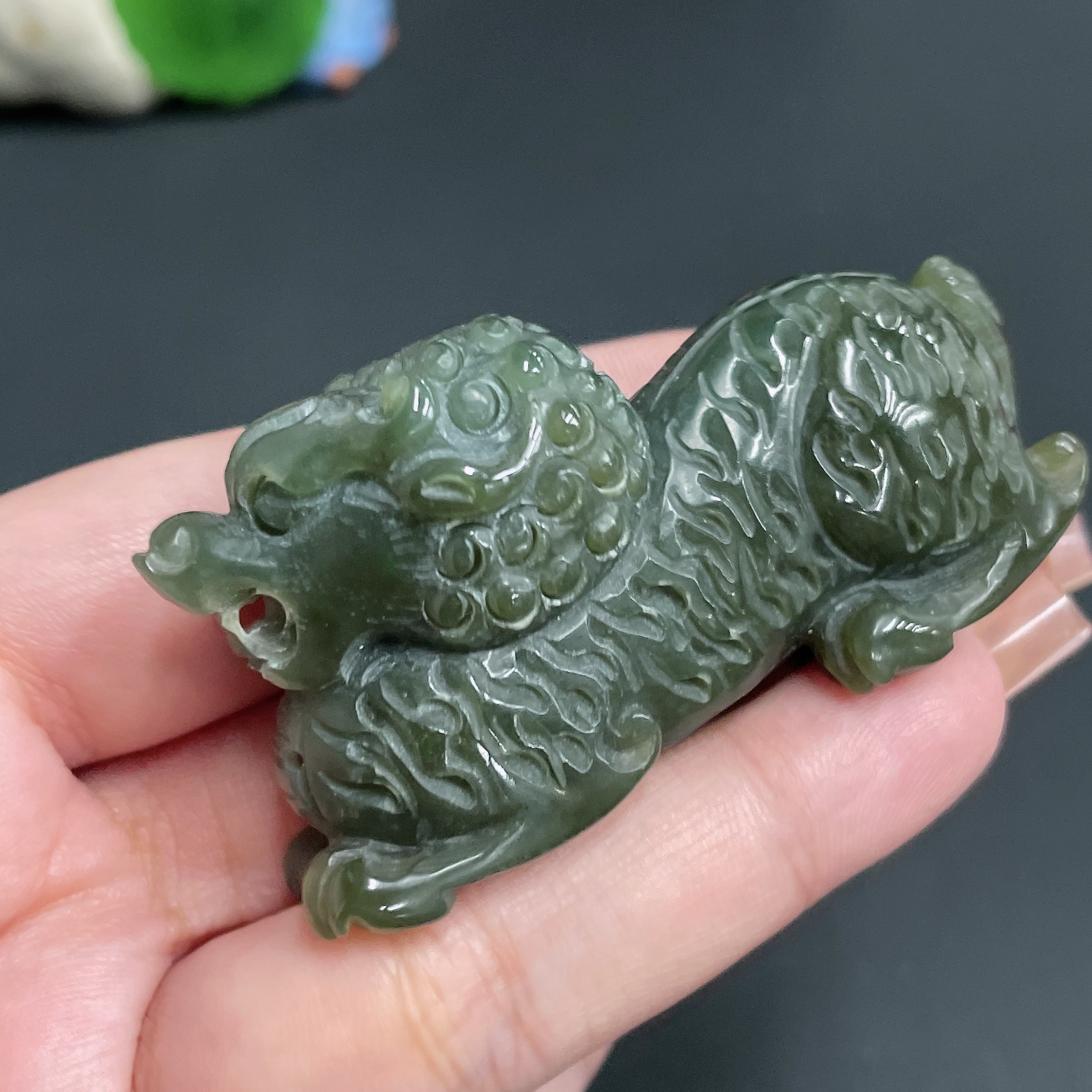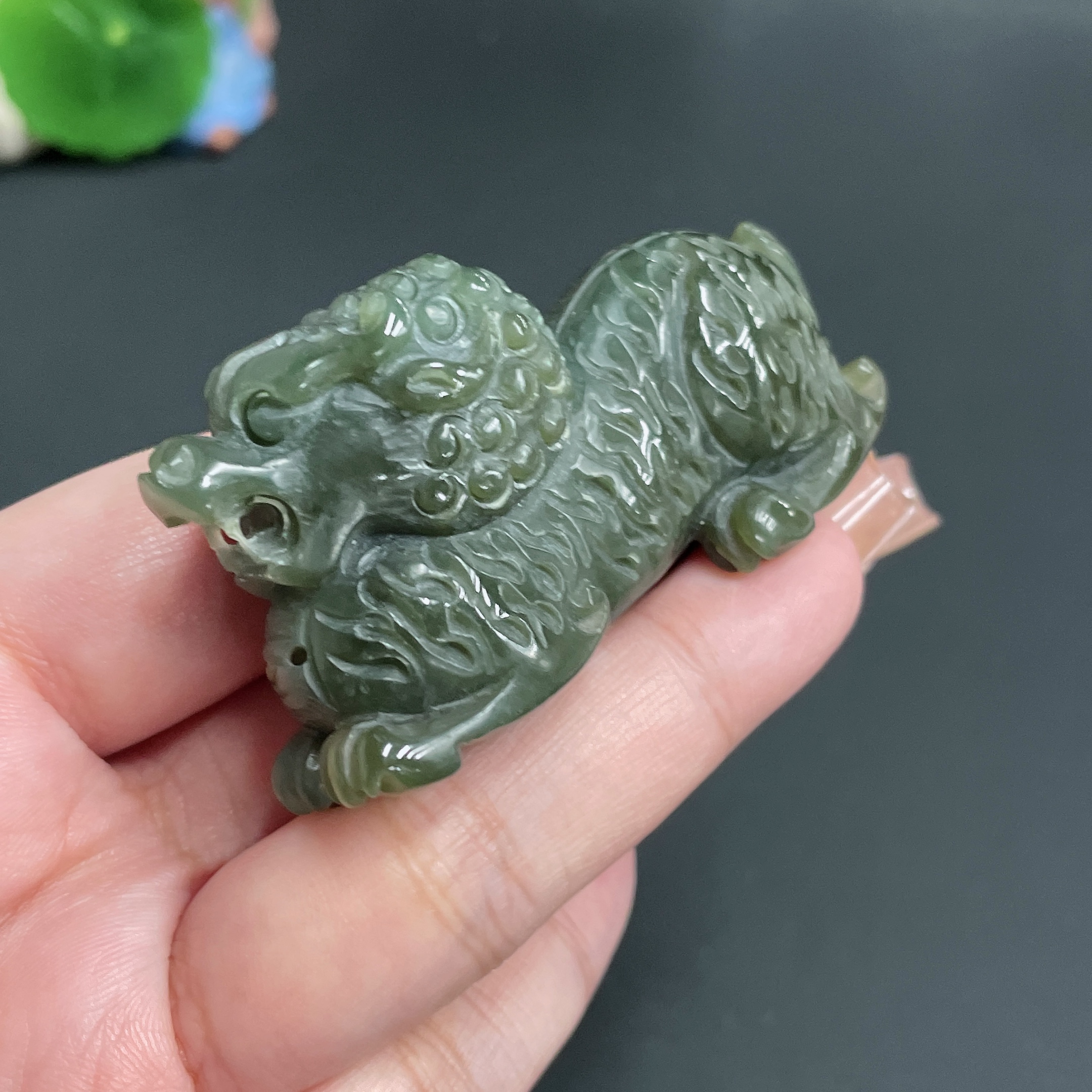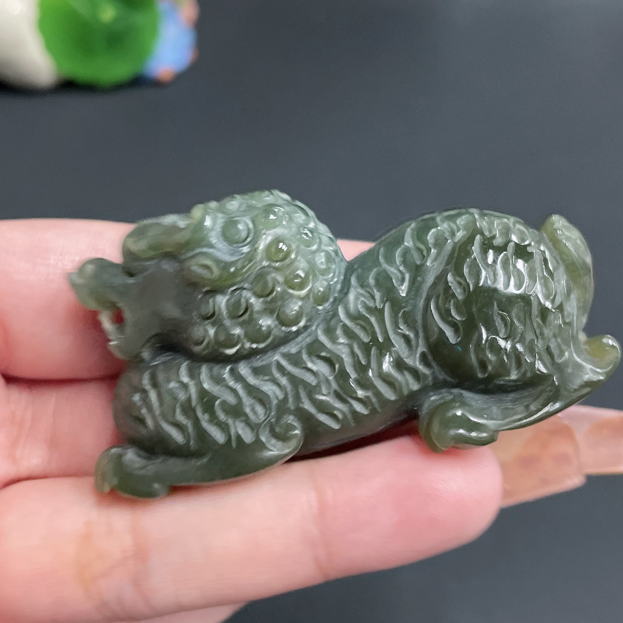 Hetian Jade Handheld Ornament - Auspicious Beast, Total Weight Approx. 66.67g, with Damage