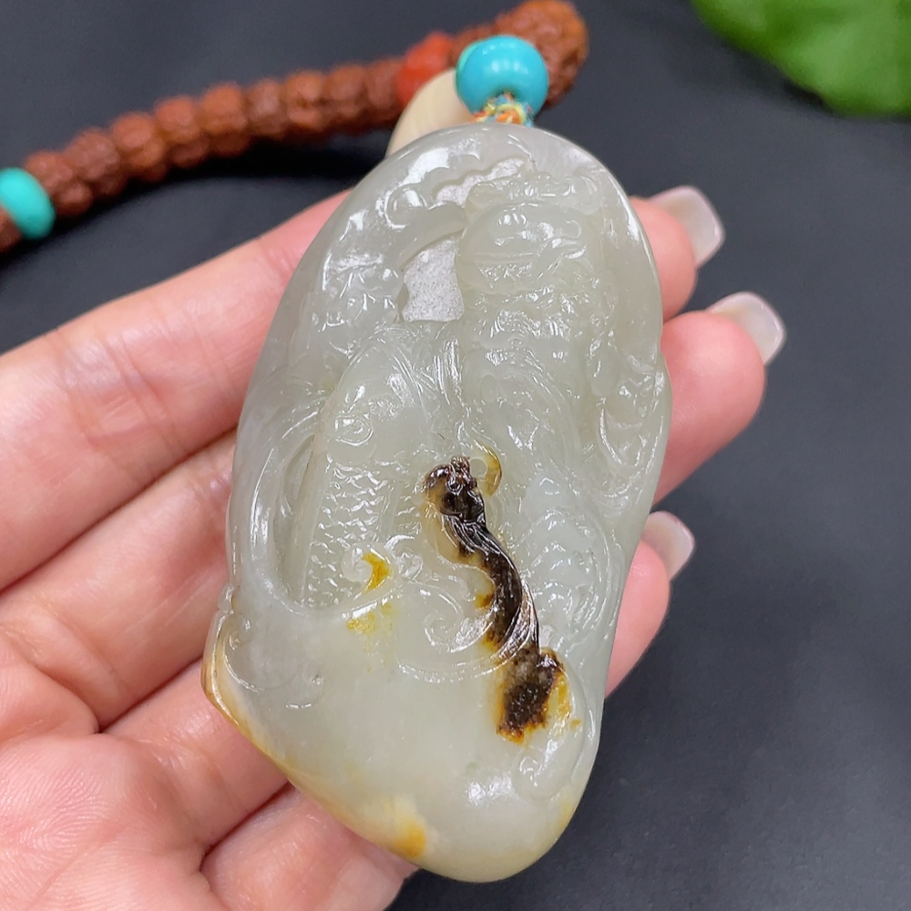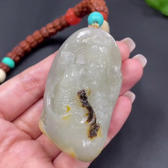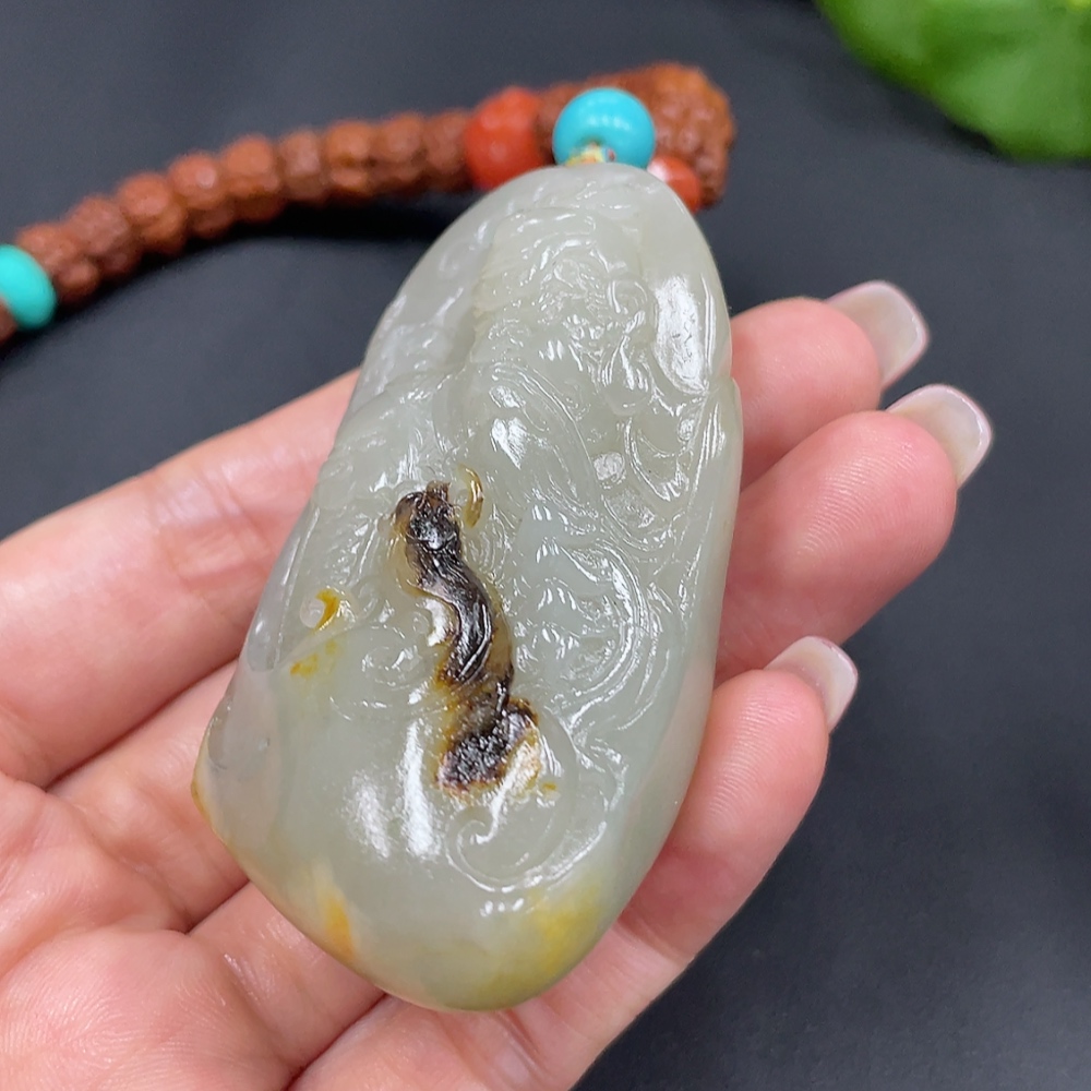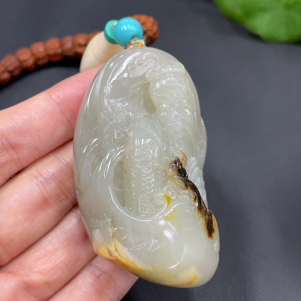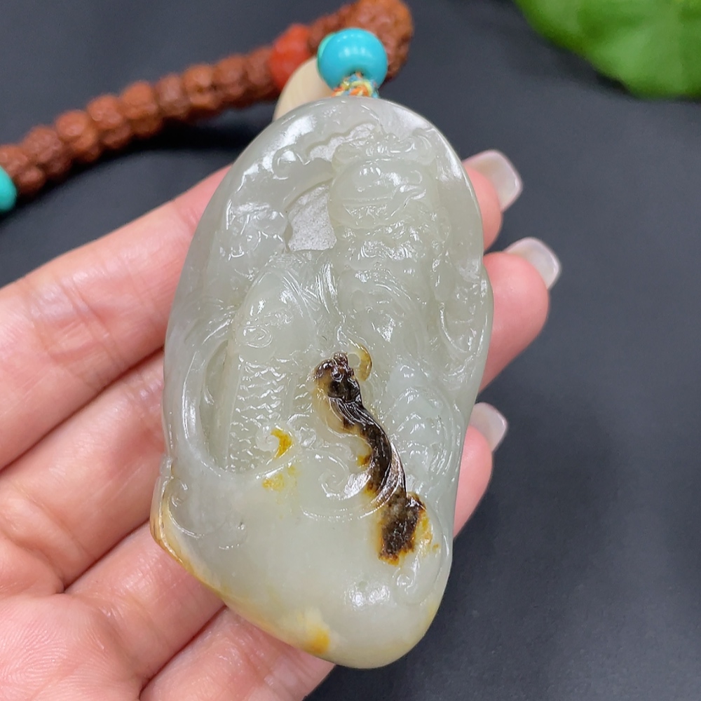 Hetian Jade Seed Material Handheld Piece - Guan Gong