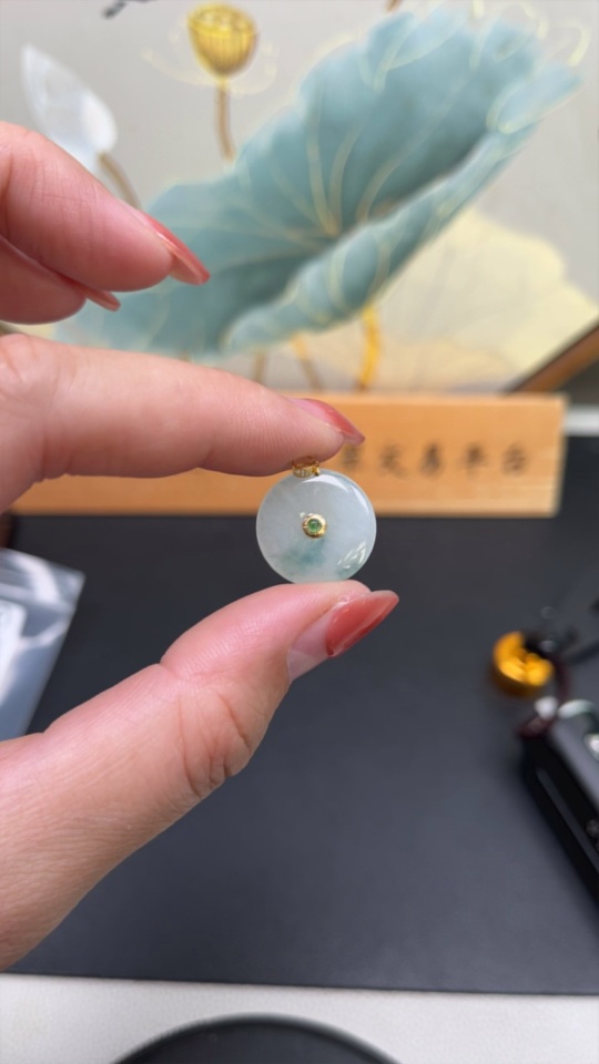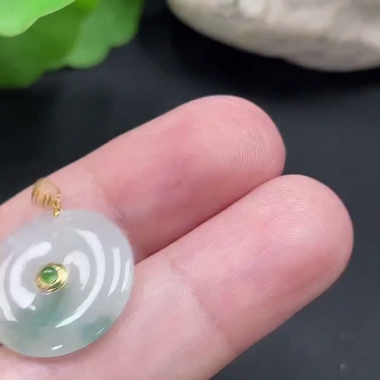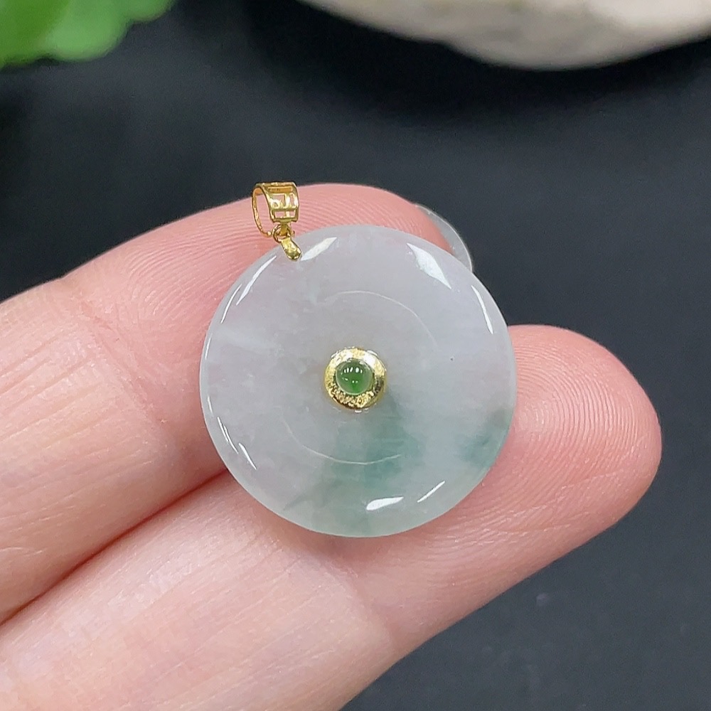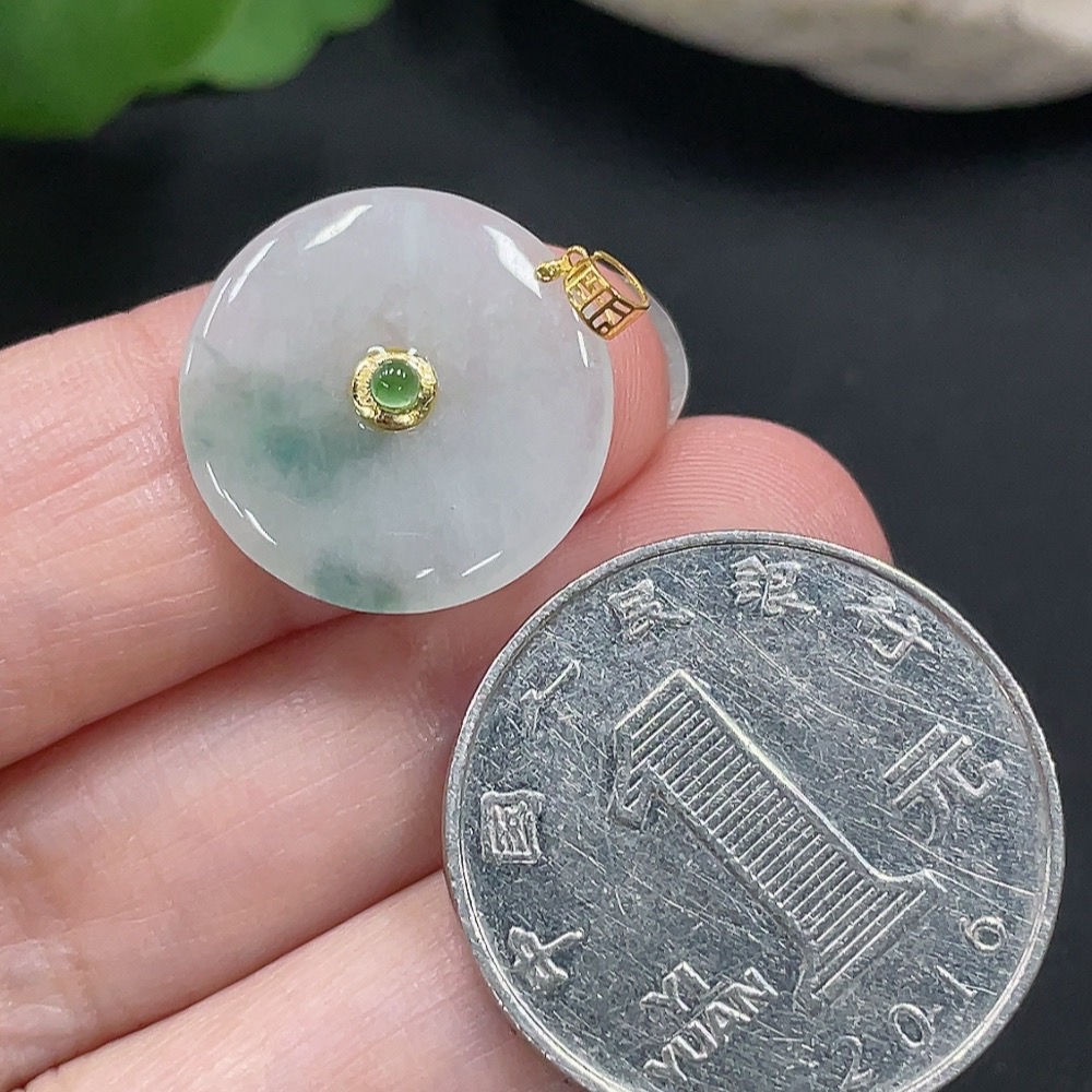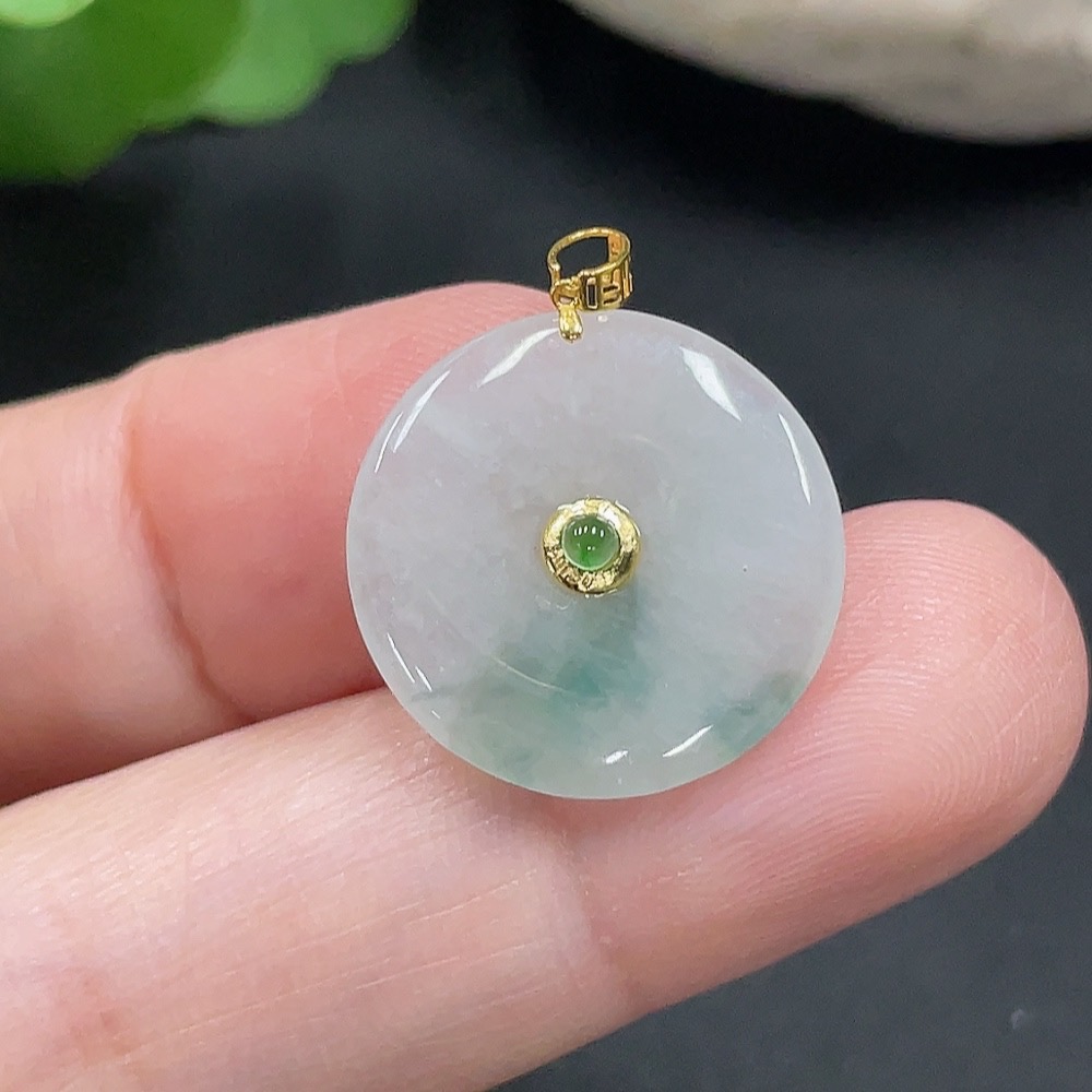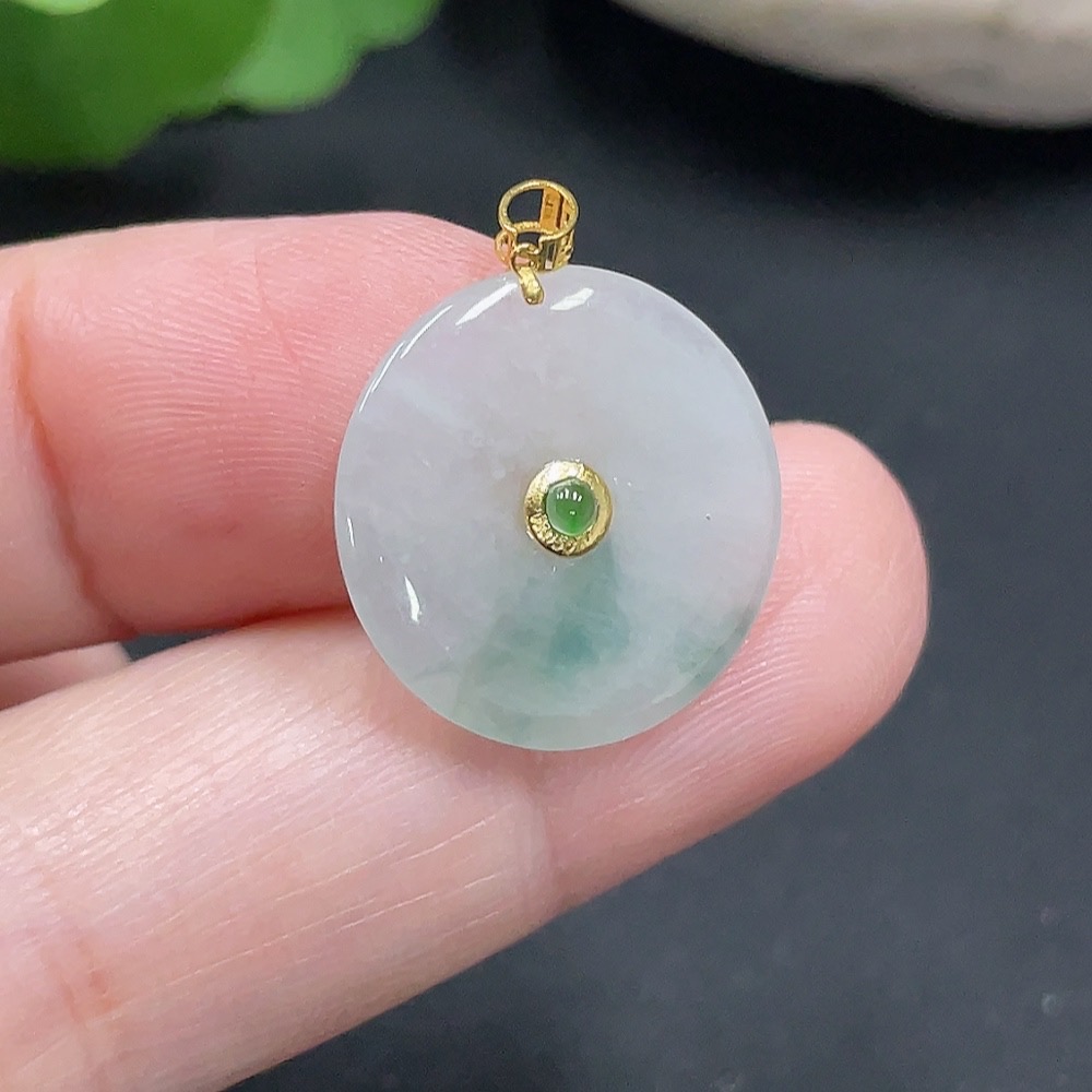 Jadeite Safety Pendant with 18K Gold, Total Weight Approximately 1.4g