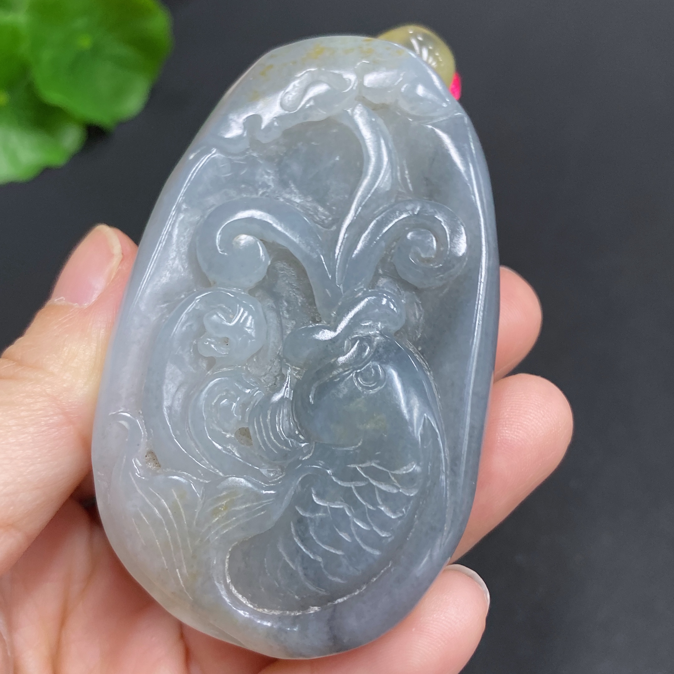 Hetian Jade Handheld Ornament - Abundance Every Year - Undetermined Skin Color Origin - Total Weight (Including Rope) Approx. 82g