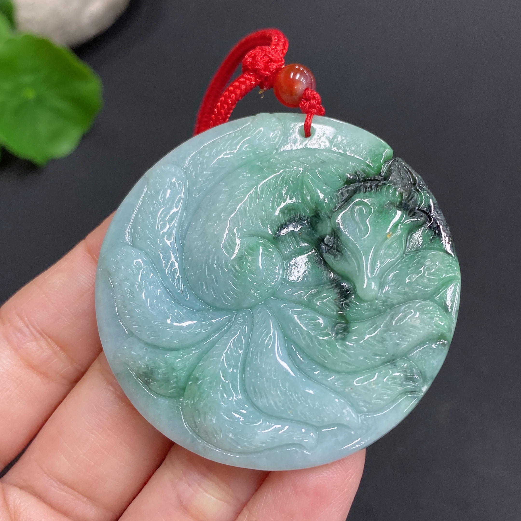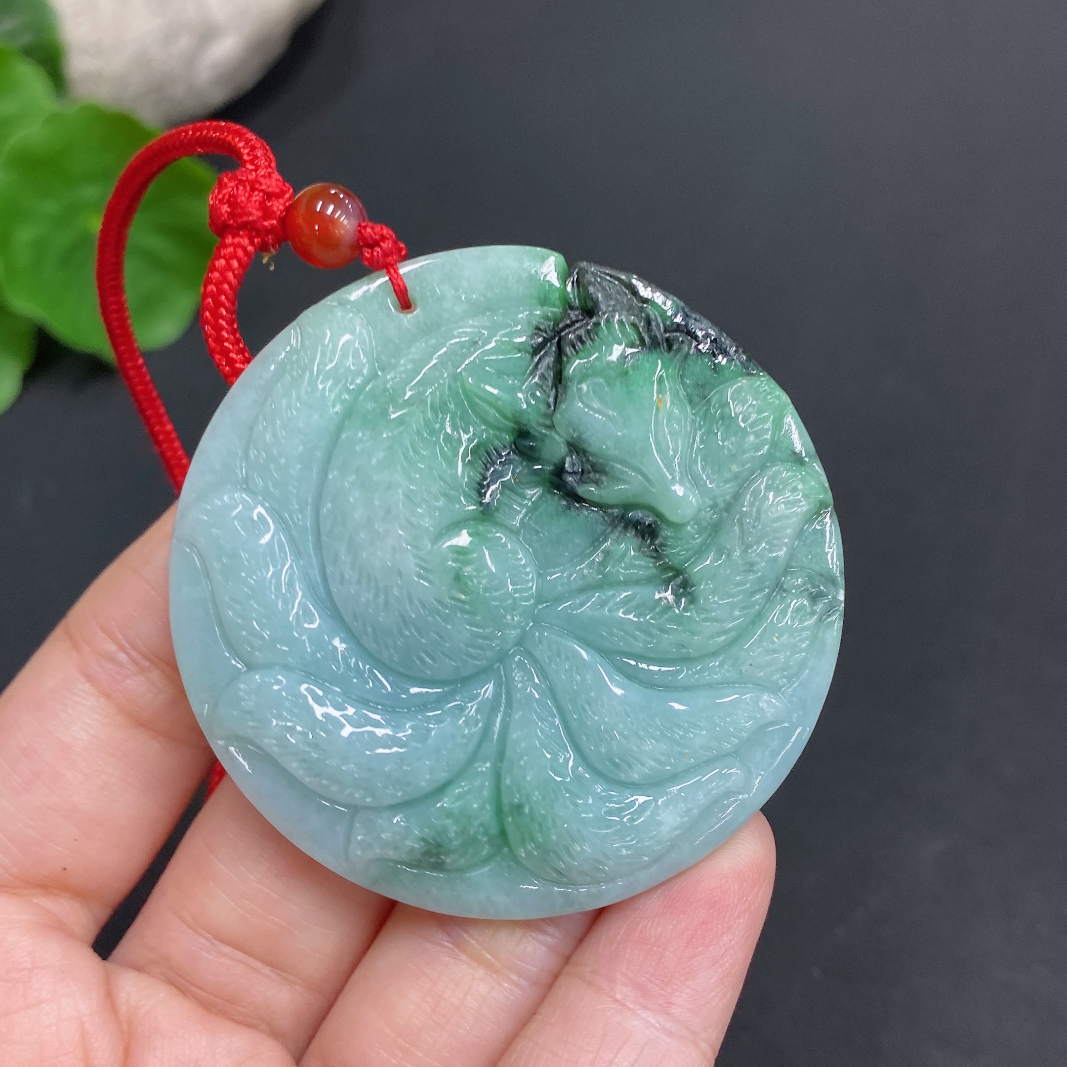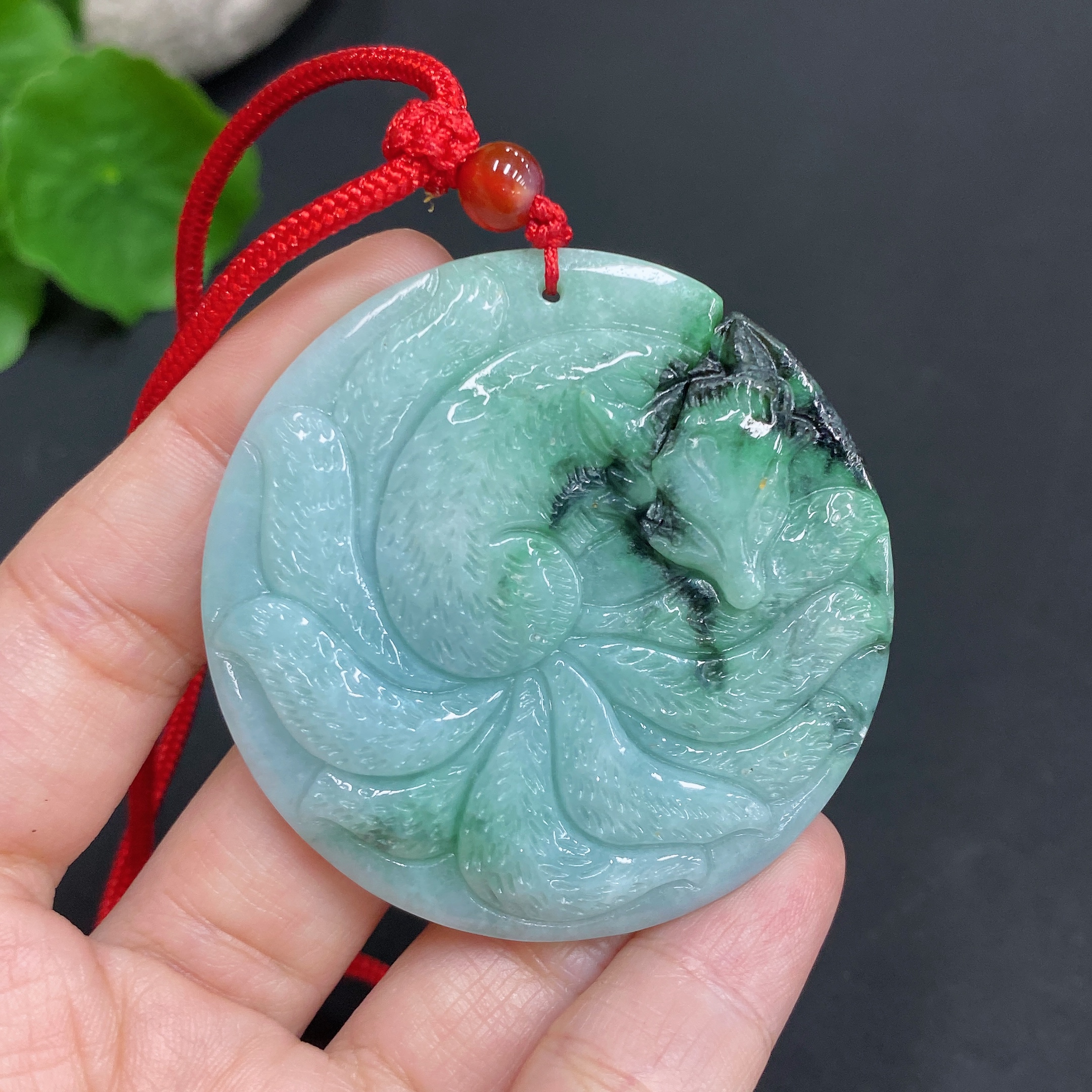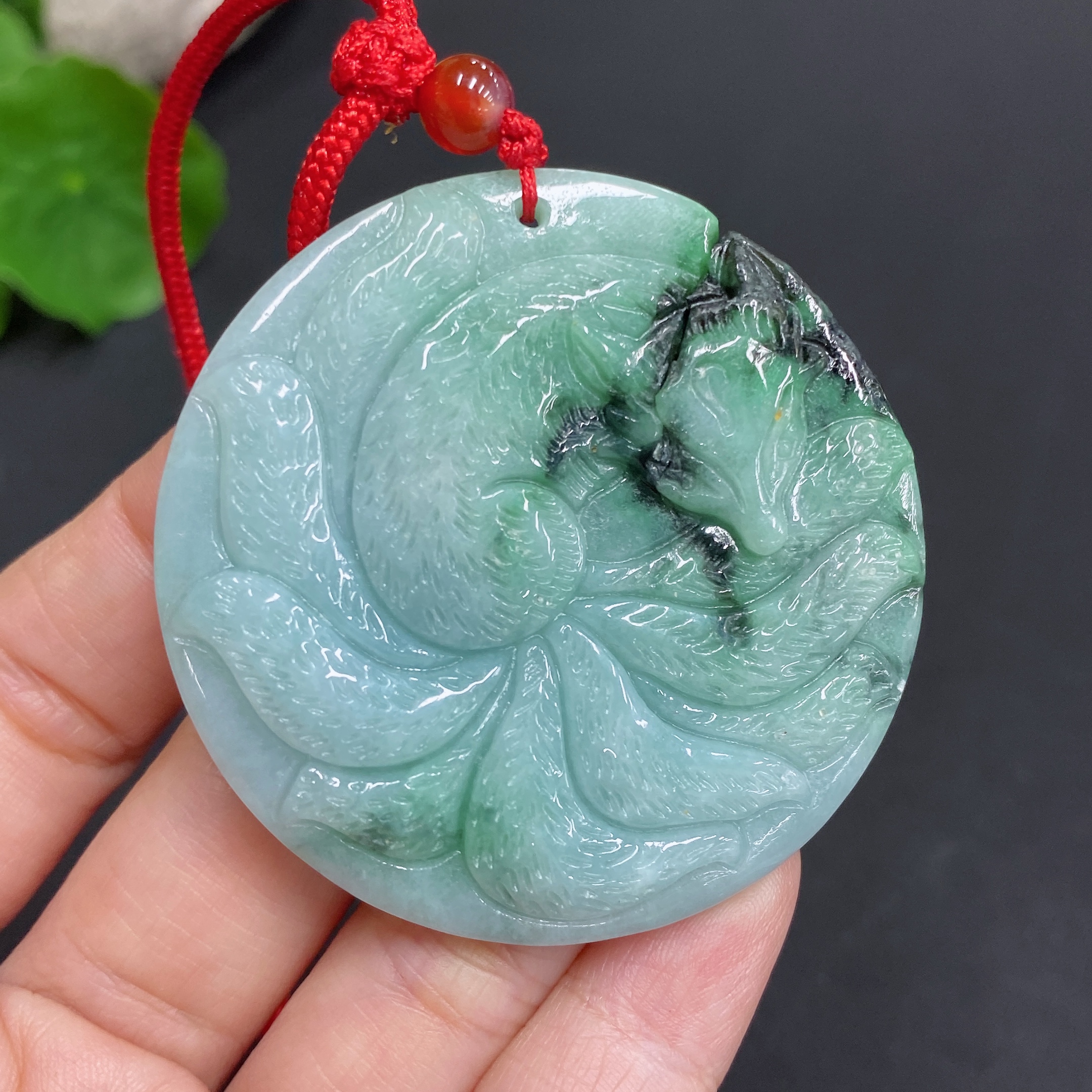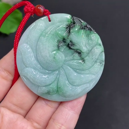 Jadeite Pendant - Nine-Tailed Fox with Other Mineral Components, Total Weight 30.938g