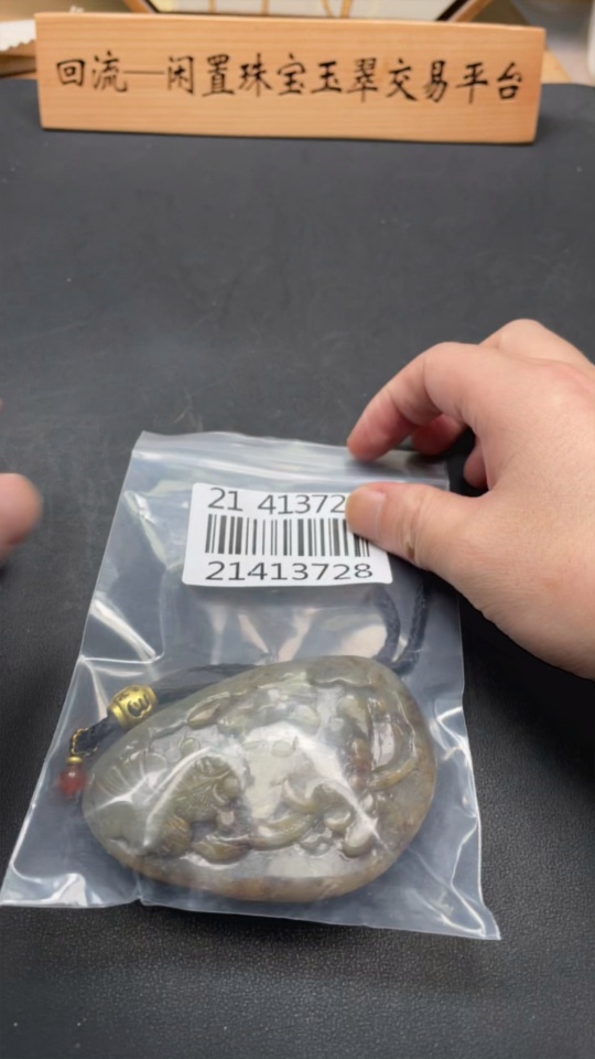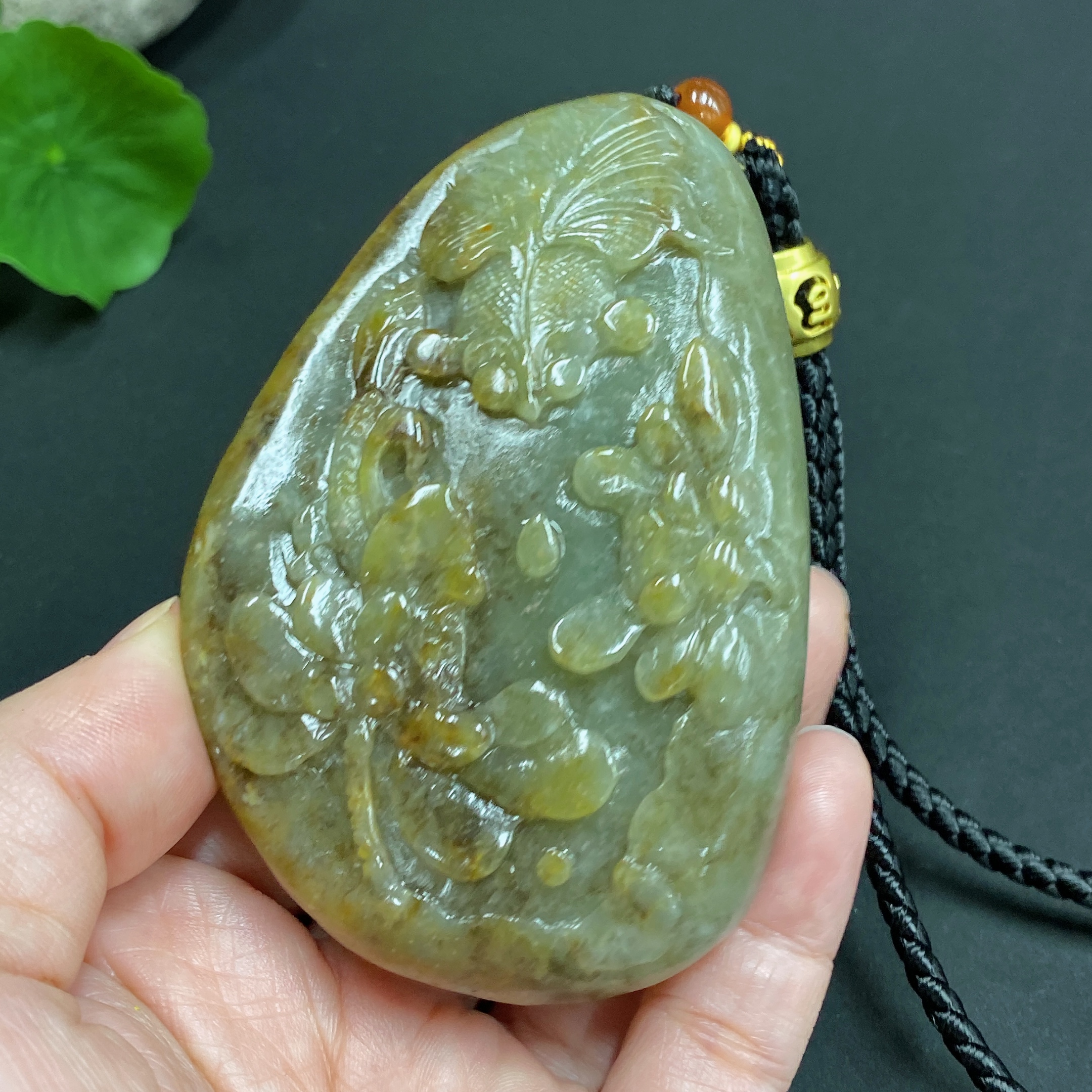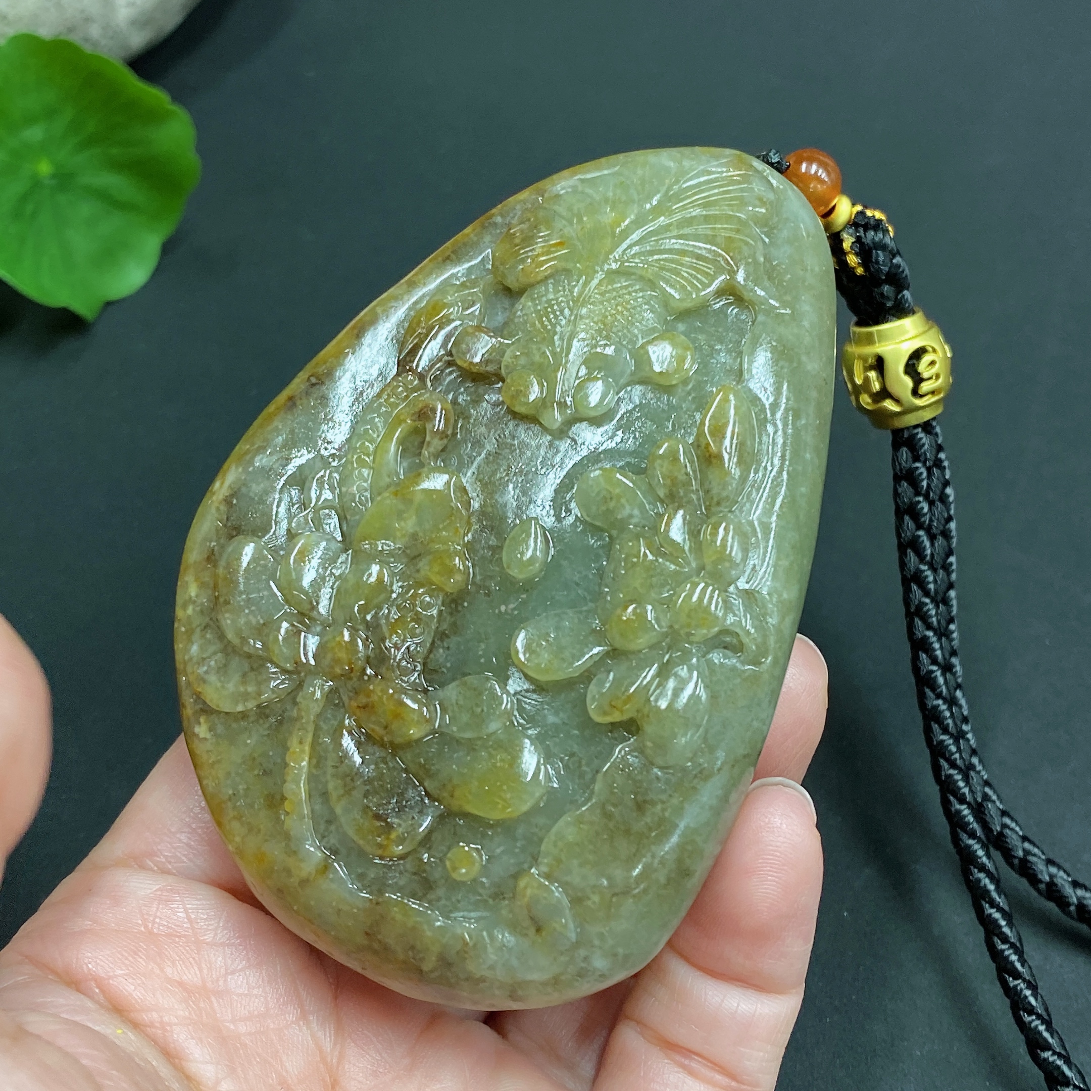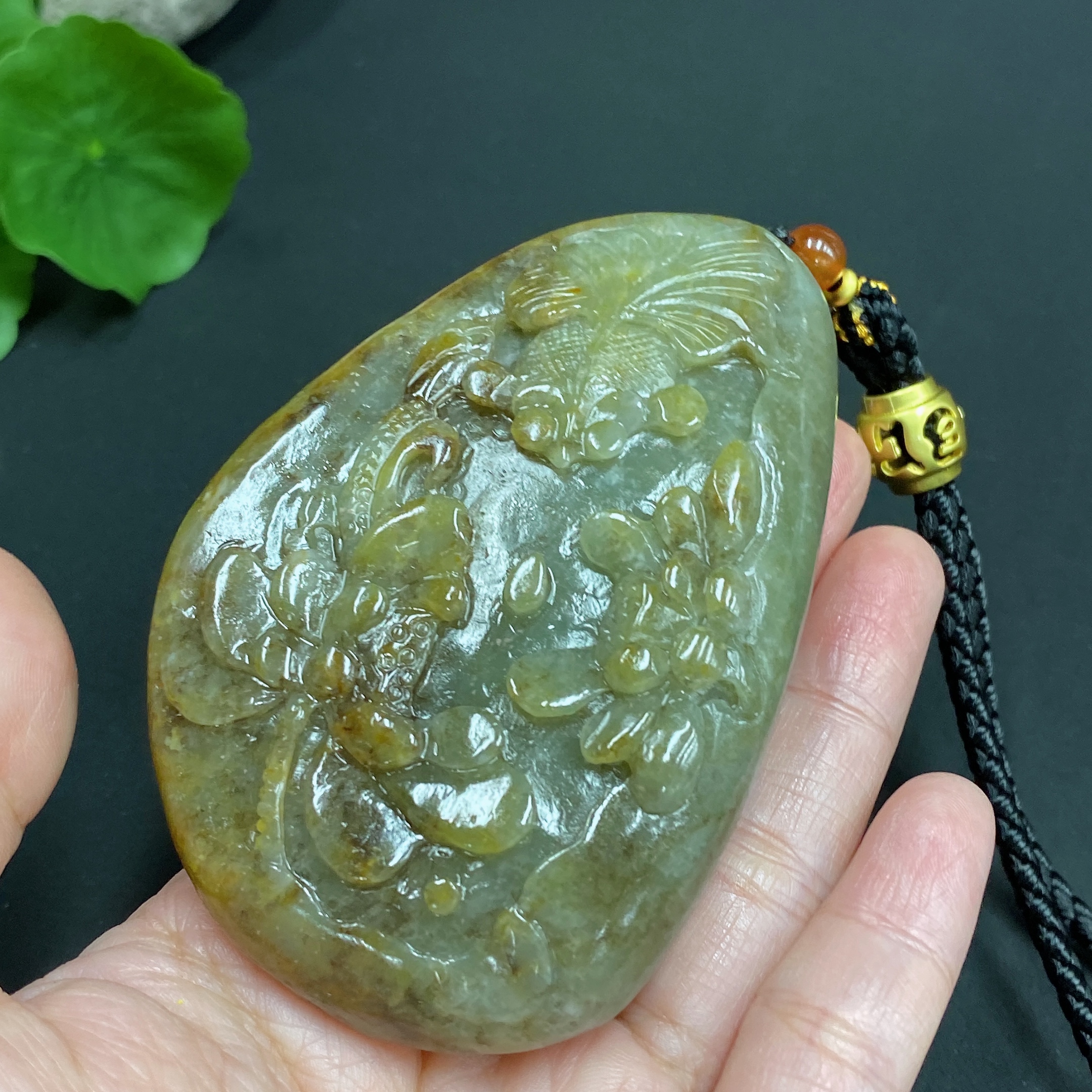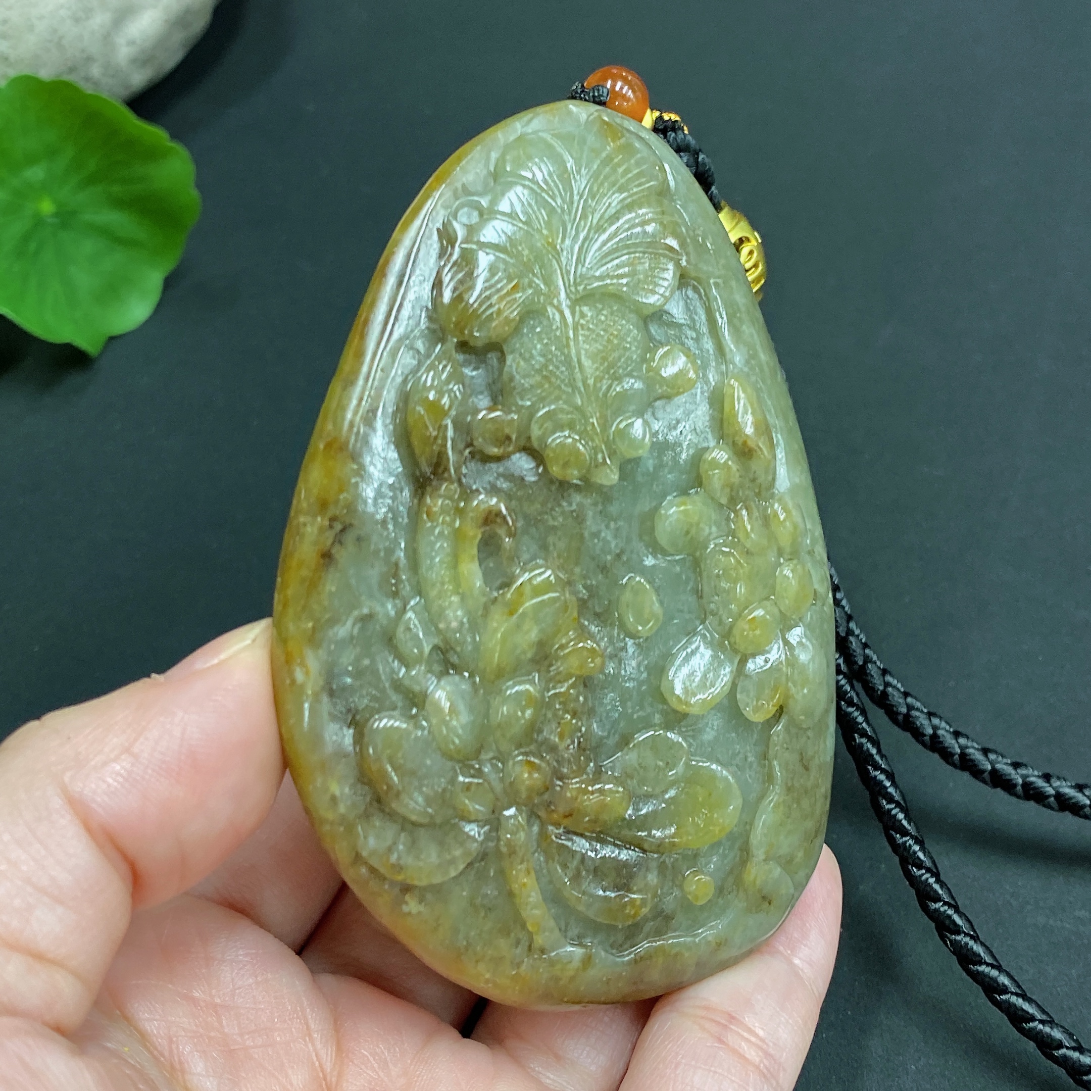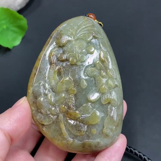 Trezaar - Hetian Jade Seed Material Handheld Piece 'Abundance Every Year' Undetermined Skin Color Cause Total Weight Approximately (Including Rope) 148.5g