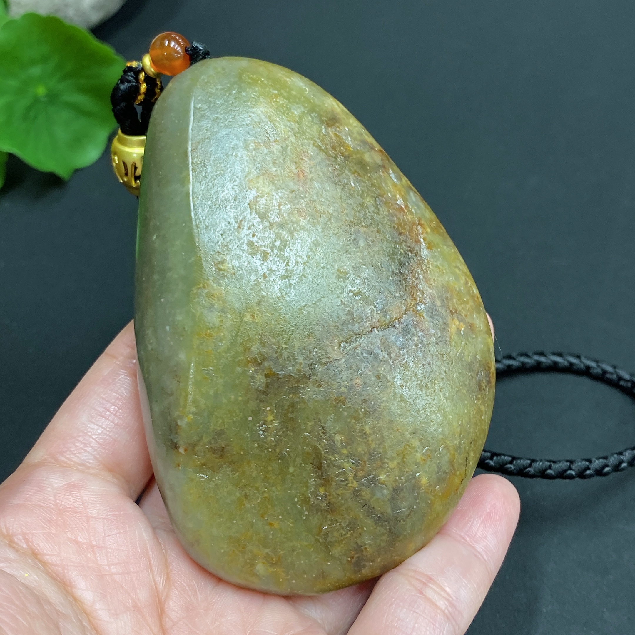 Hetian Jade Seed Material Handheld Piece 'Abundance Every Year' Undetermined Skin Color Cause Total Weight Approximately (Including Rope) 148.5g