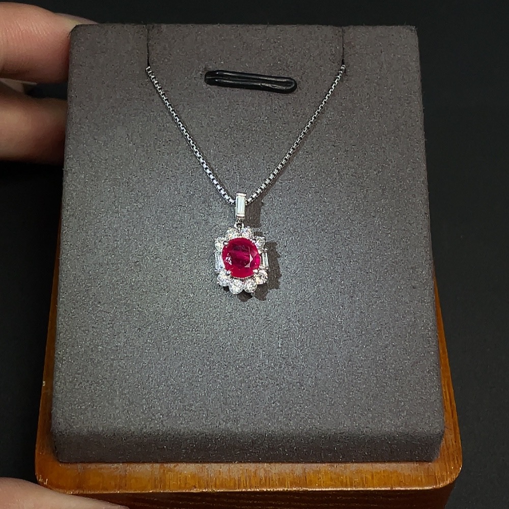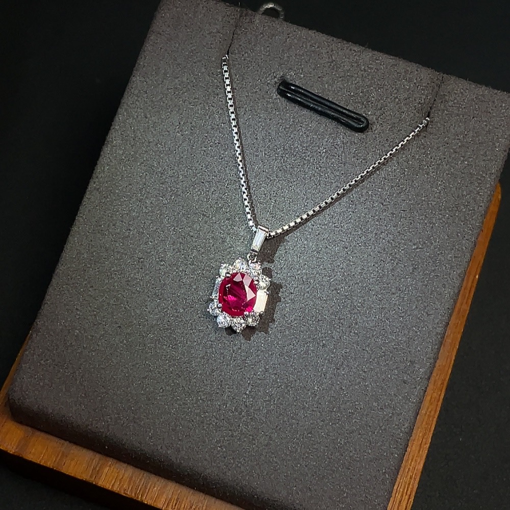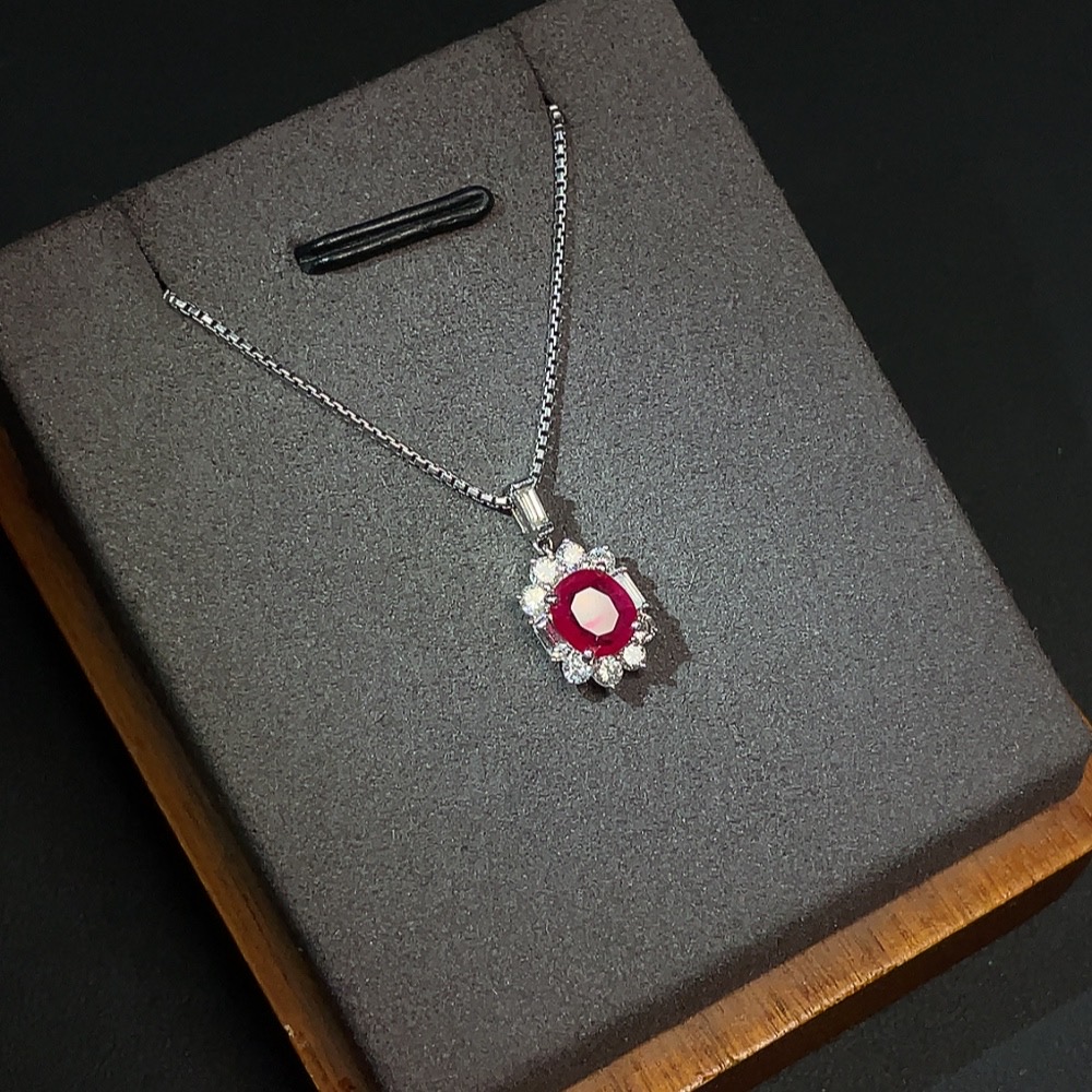 Ruby Pendant with 18K Gold Setting, Total Weight Approx. 4.42g Including 18K Gold Chain