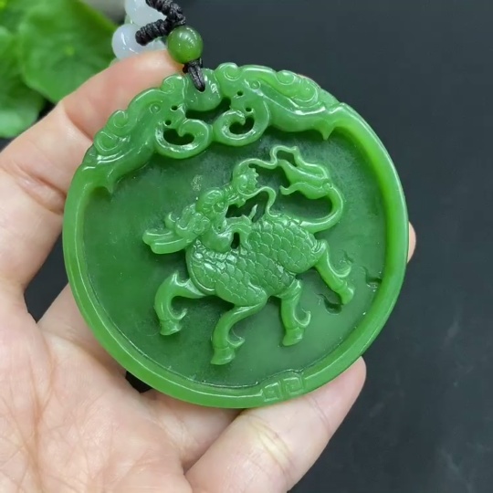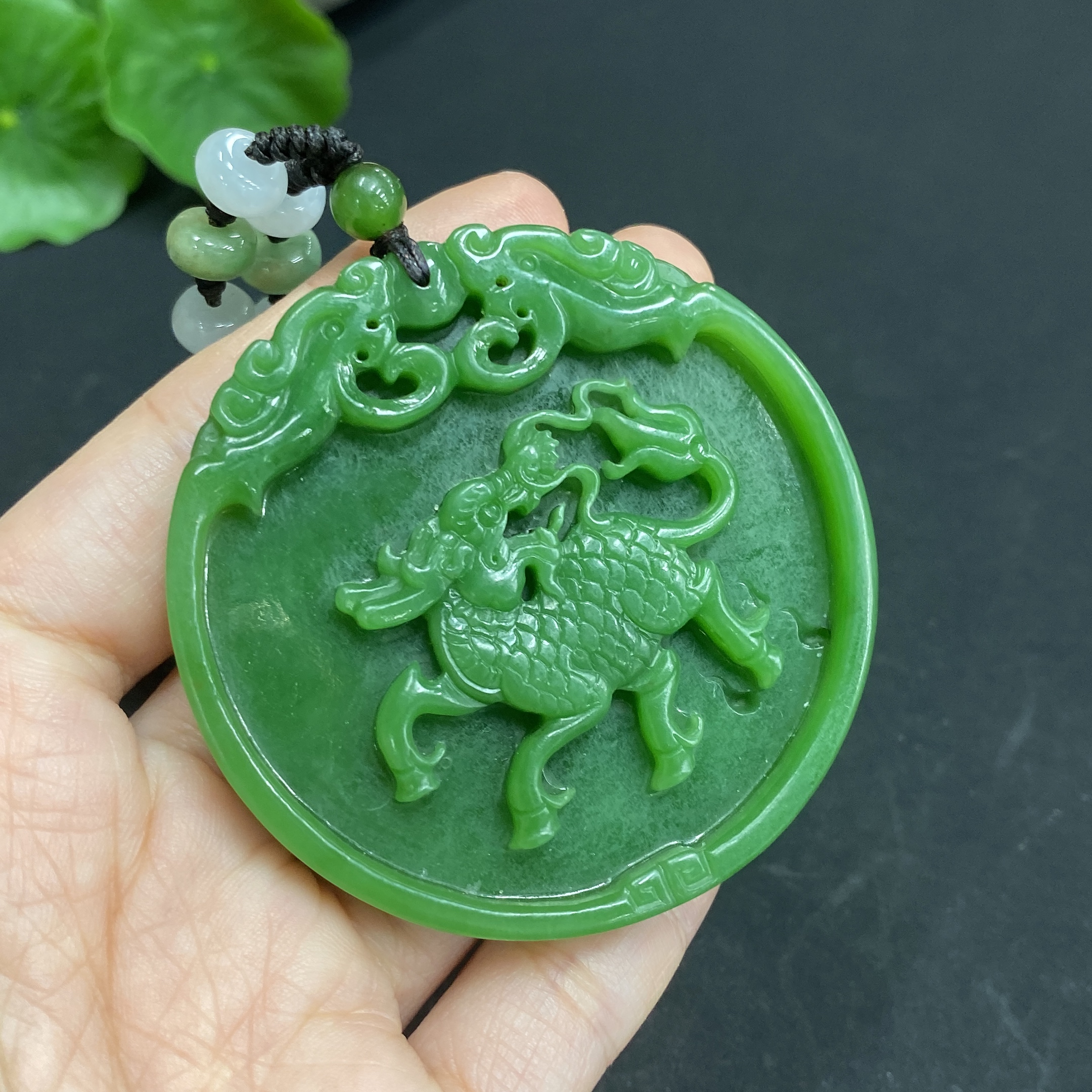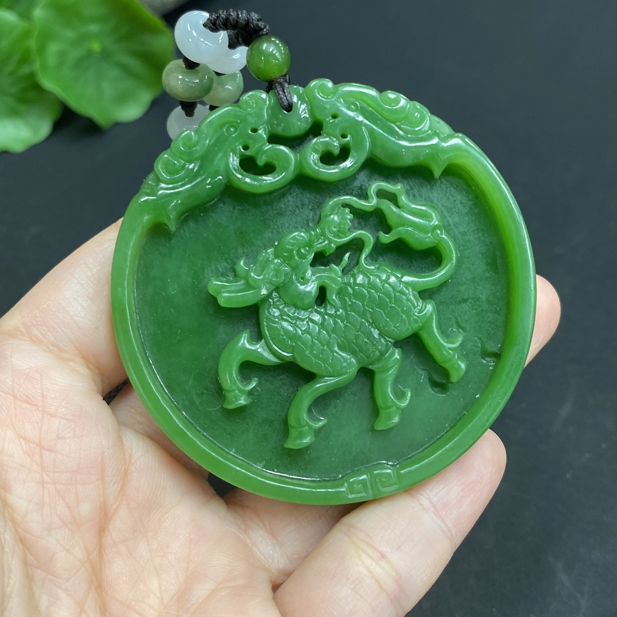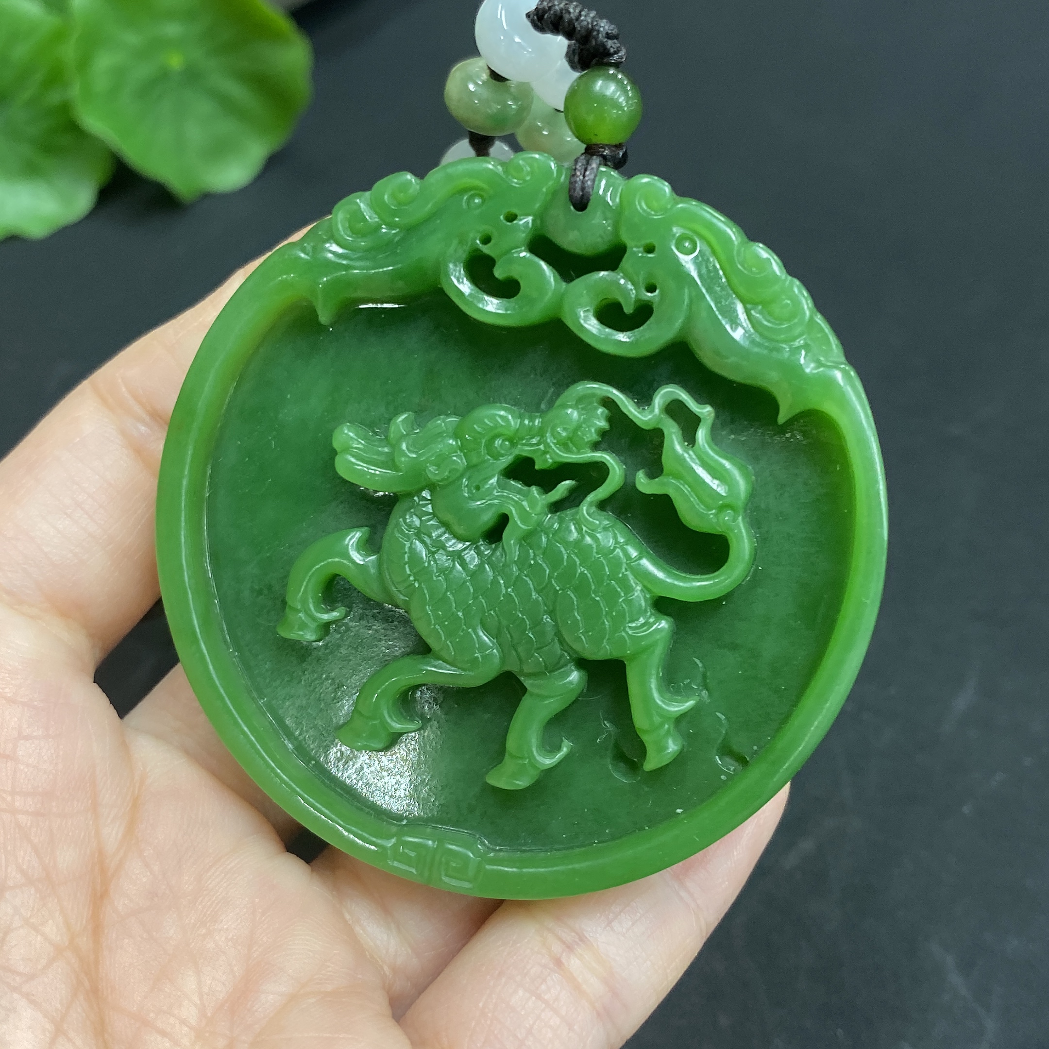 Hetian Jade Pendant Kylin Total Weight Approx. (Including Rope) 54.1g