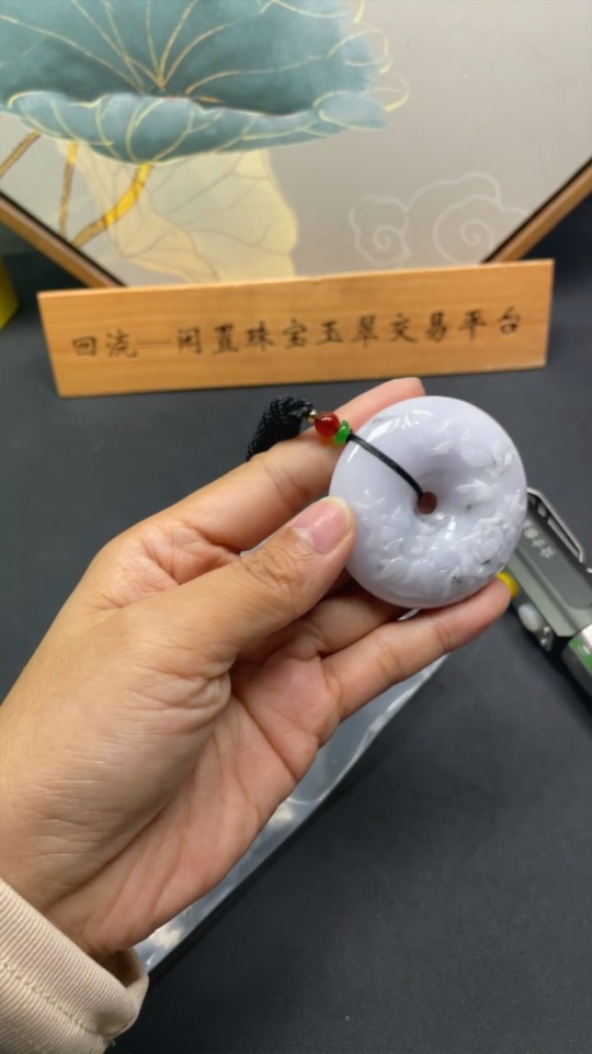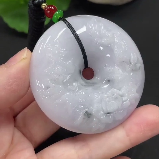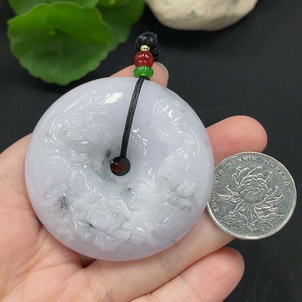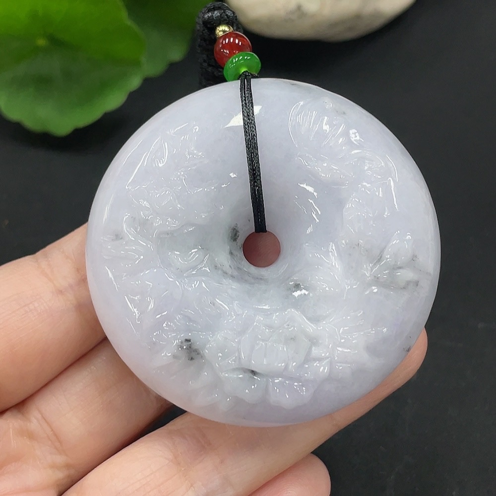 Jadeite Flower of Prosperity Pendant, including cord total weight approximately 66.7g