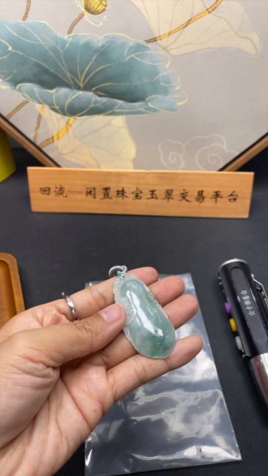 Jadeite Pendant Fu Gua total weight approx. 20.9g (with rope)