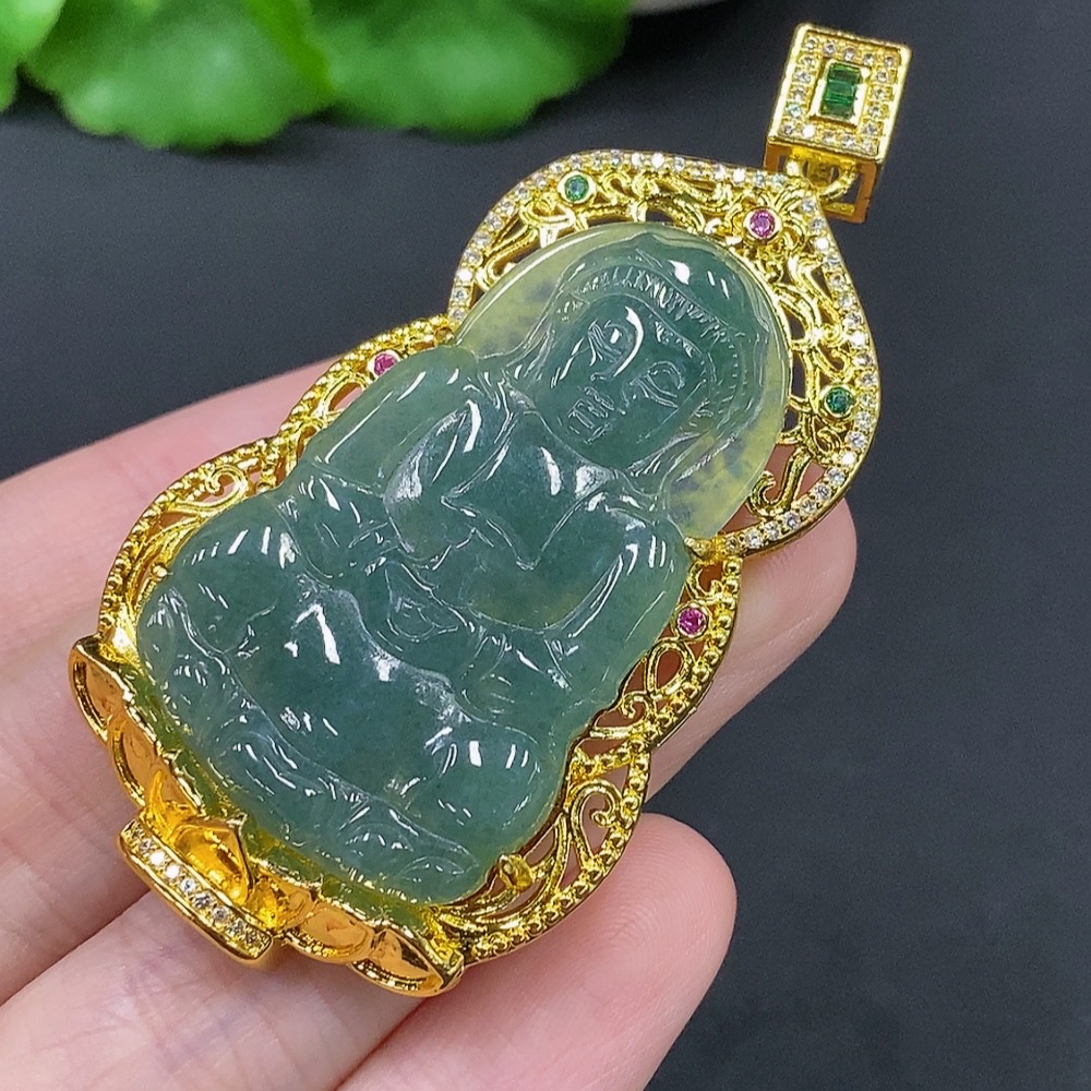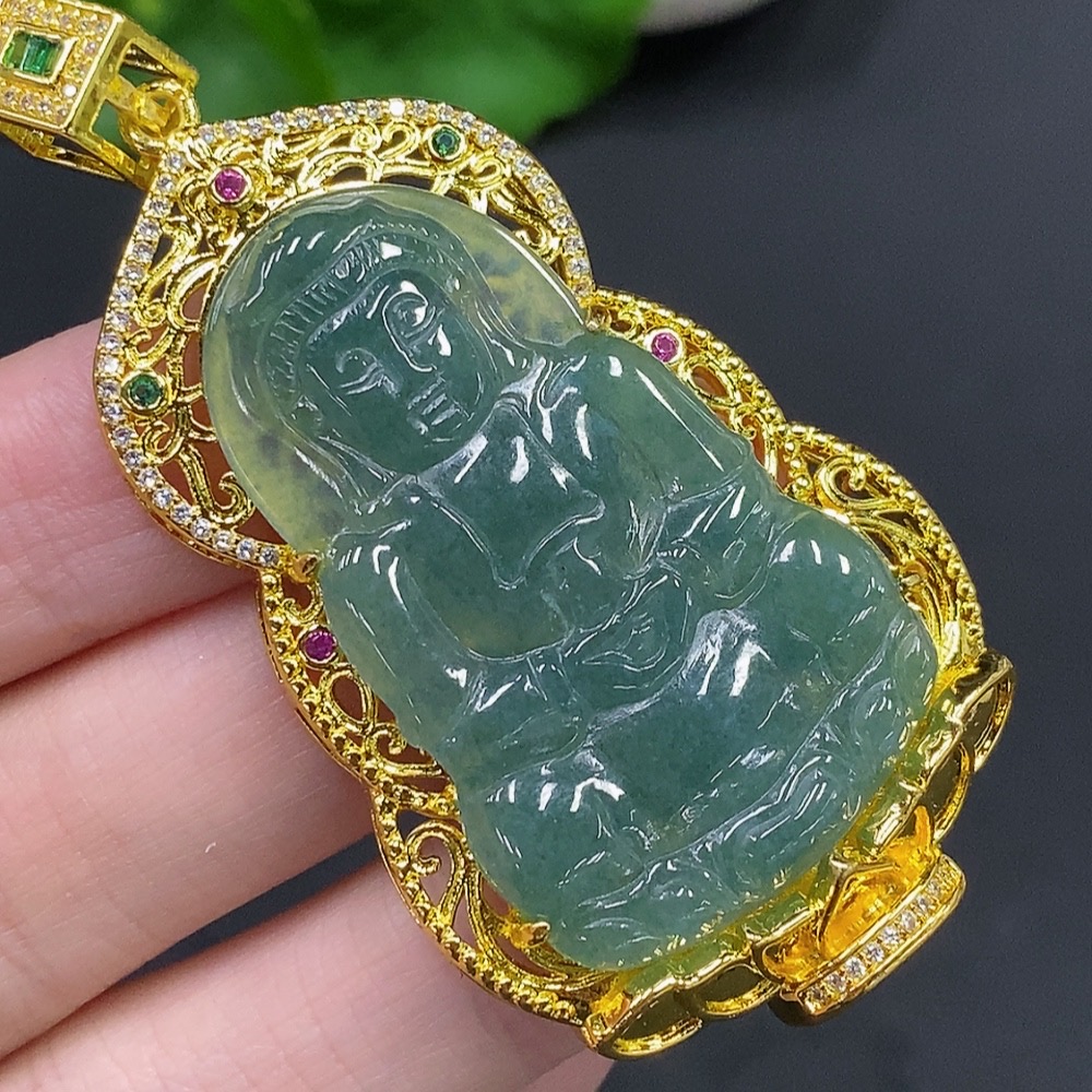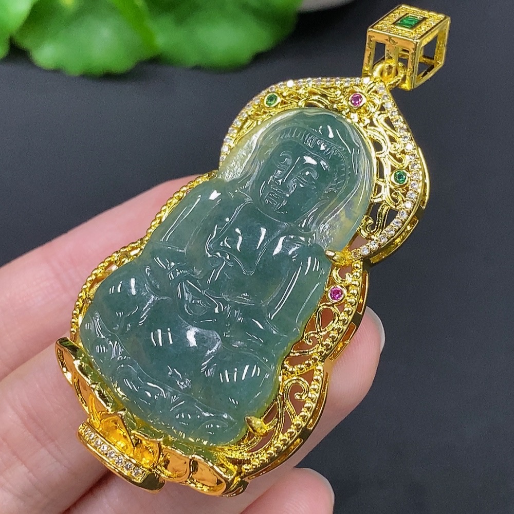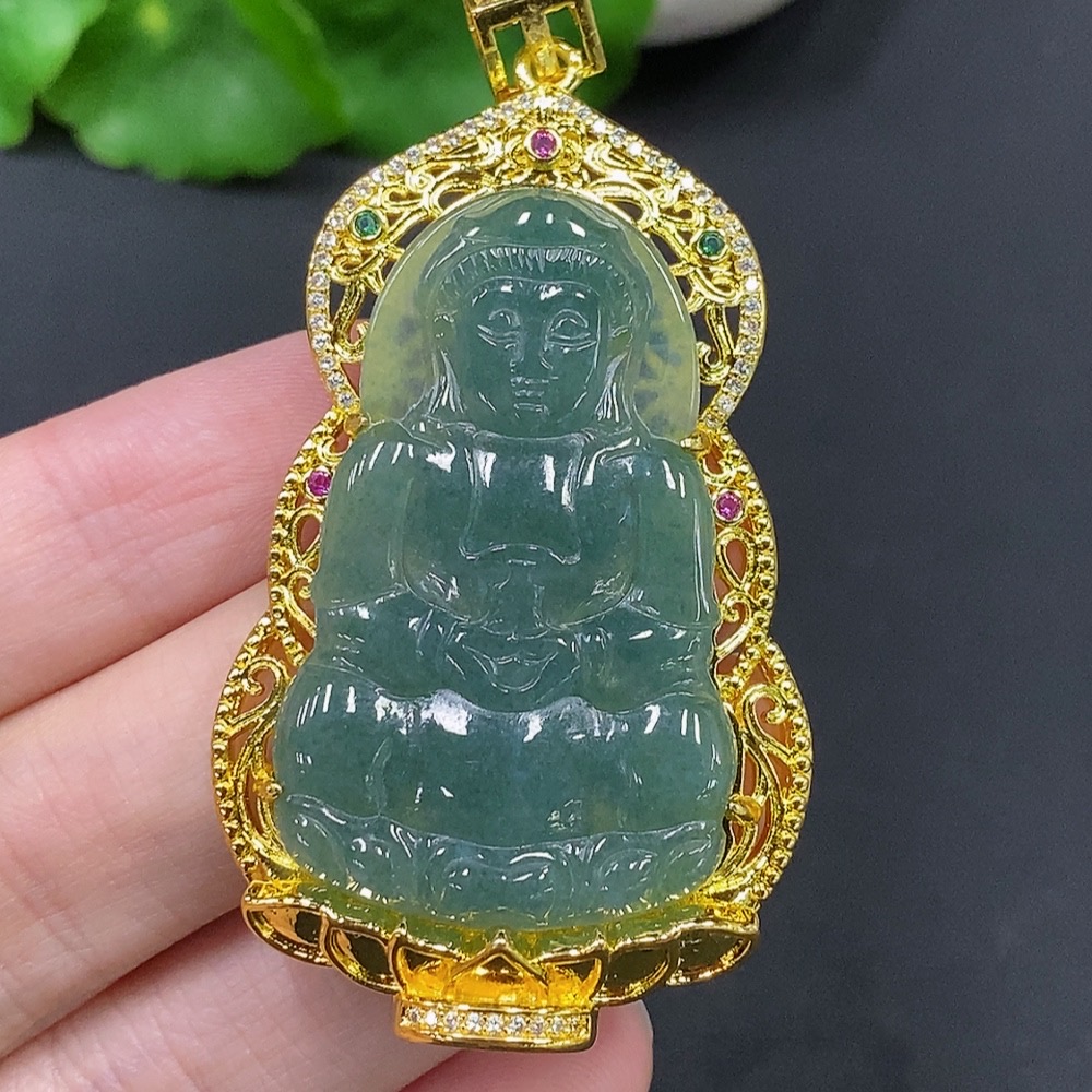Jadeite Guanyin Pendant Non-Gold Inlaid Total Weight Approx. 19.33g