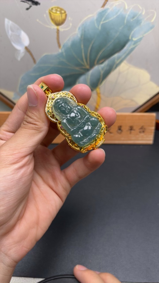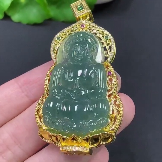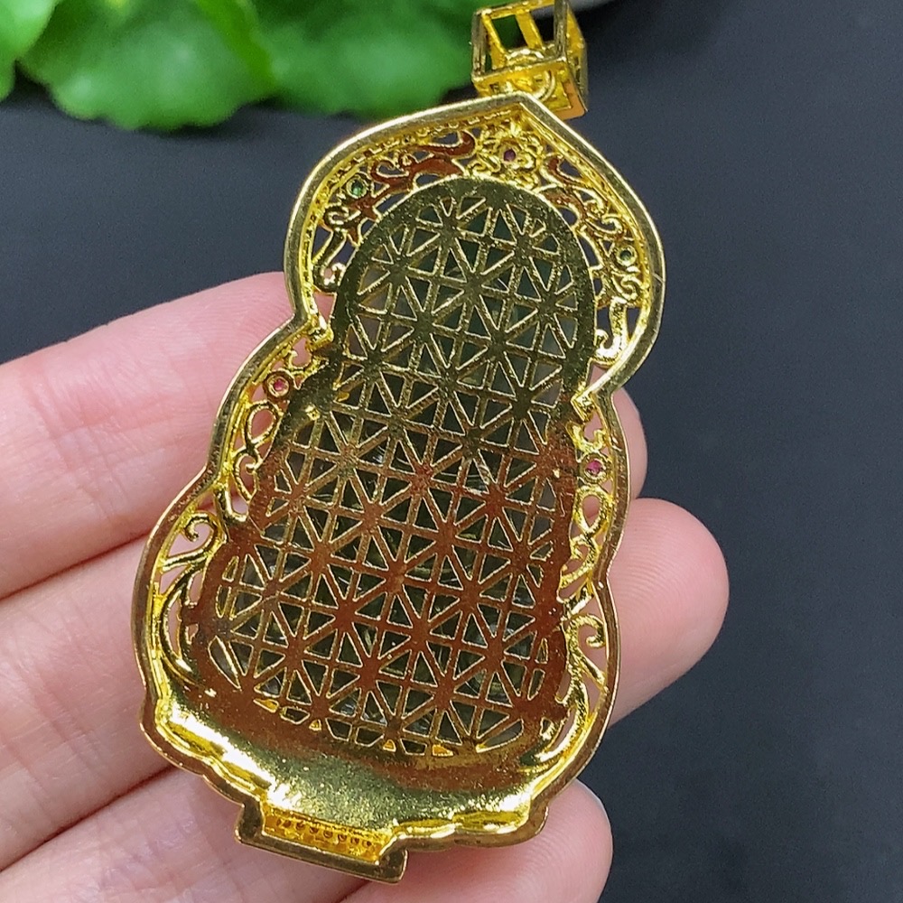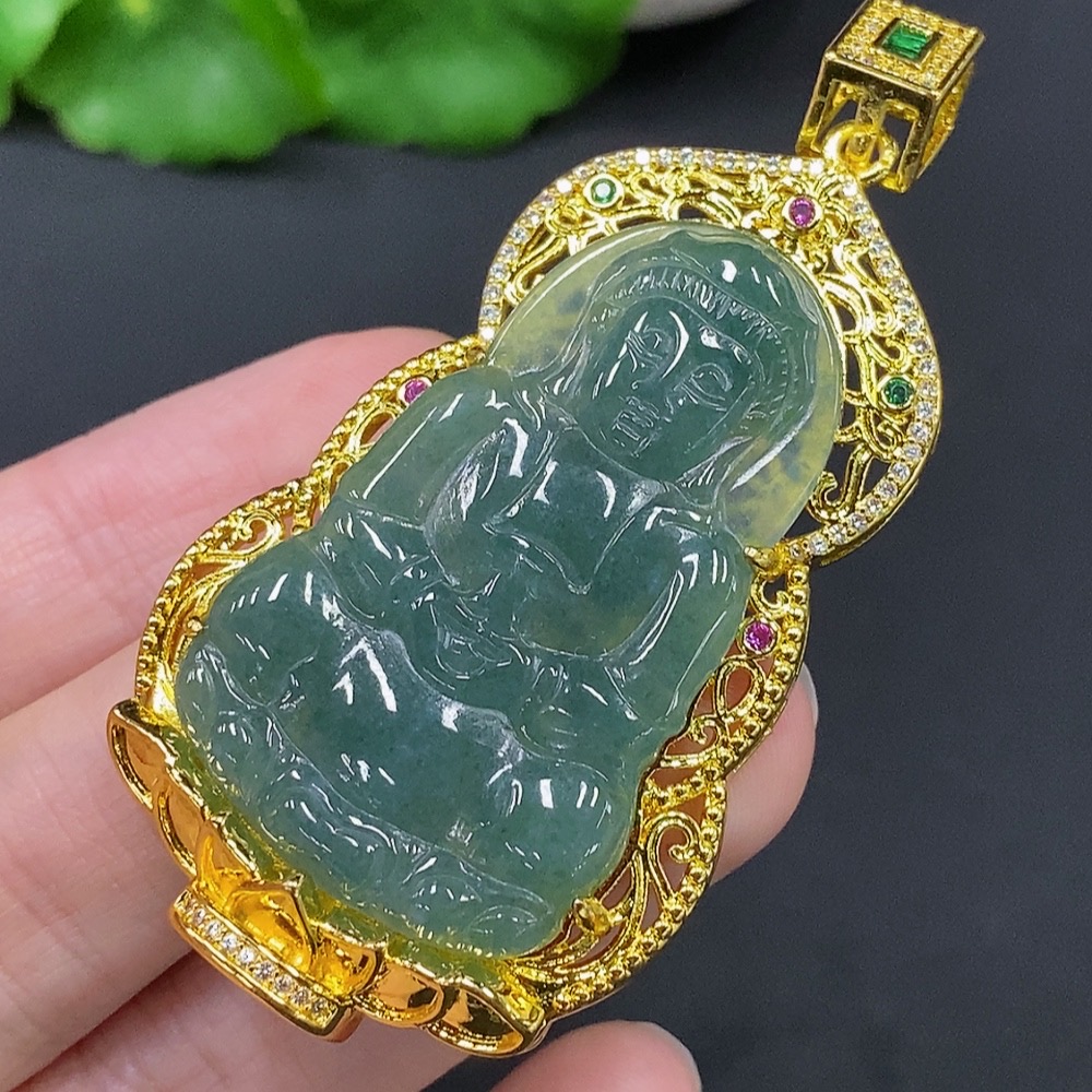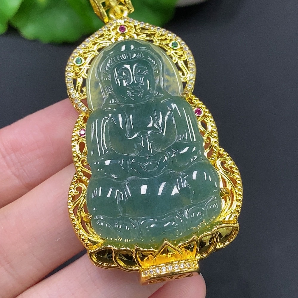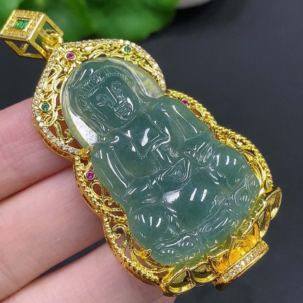Jadeite Guanyin Pendant Non-Gold Inlaid Total Weight Approx. 19.33g