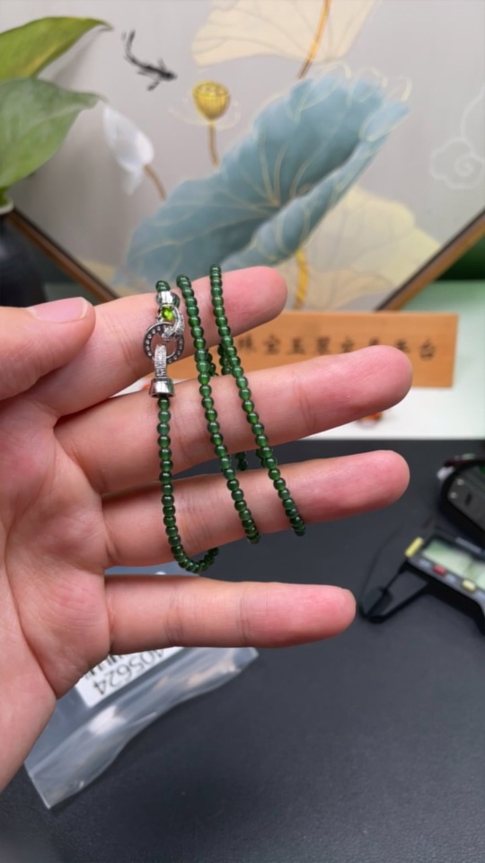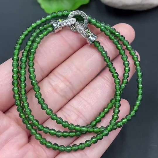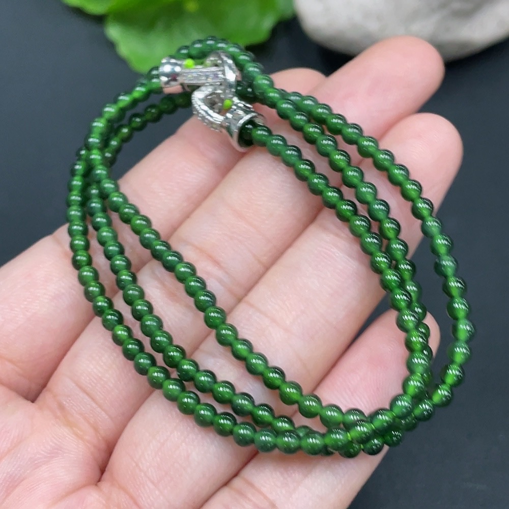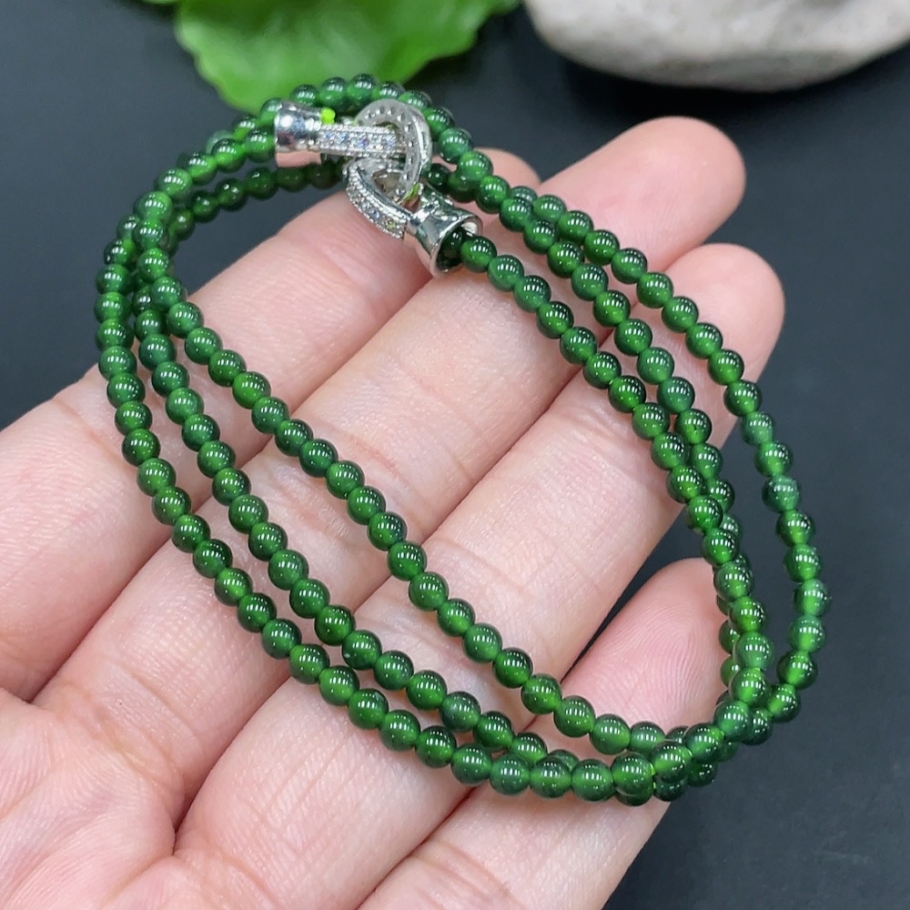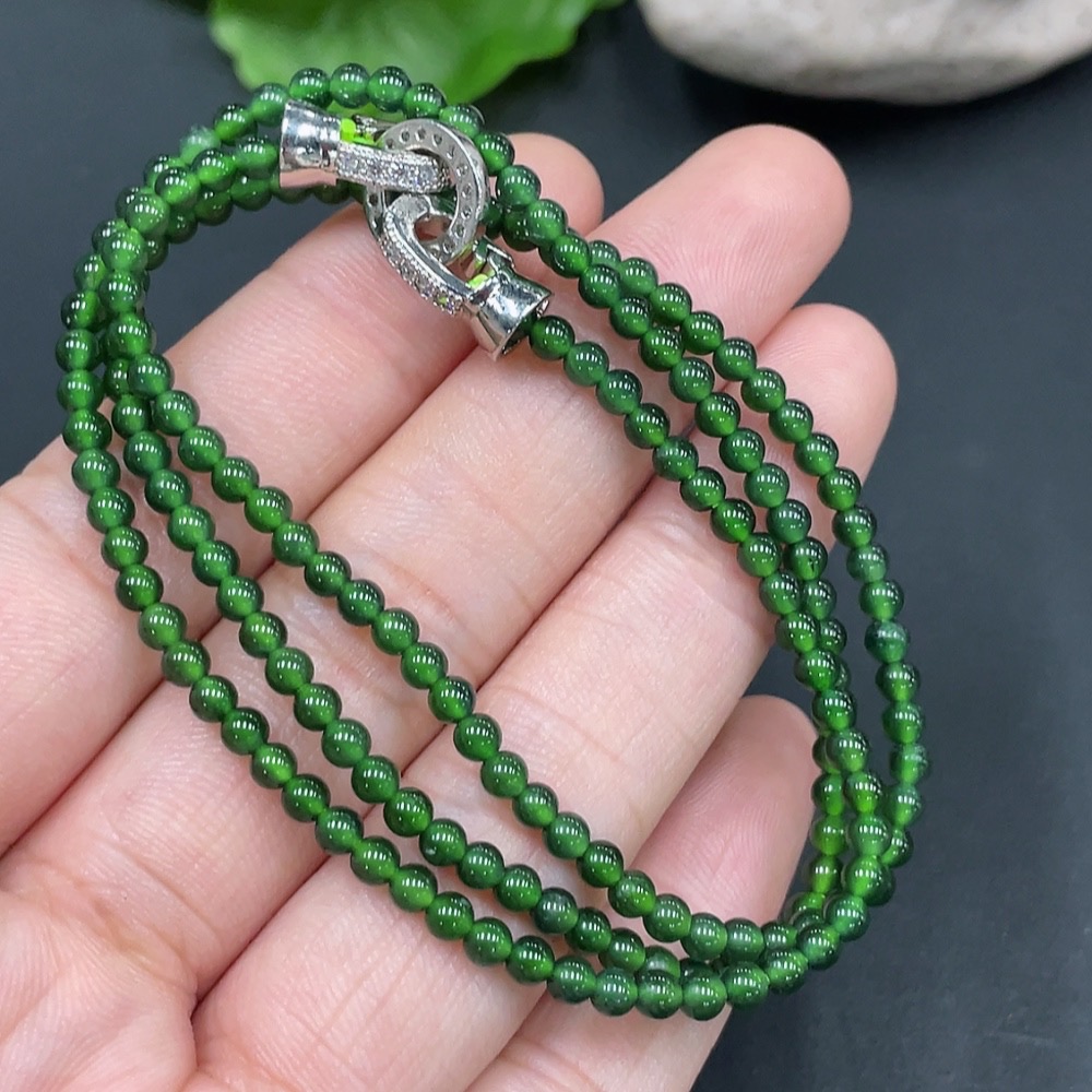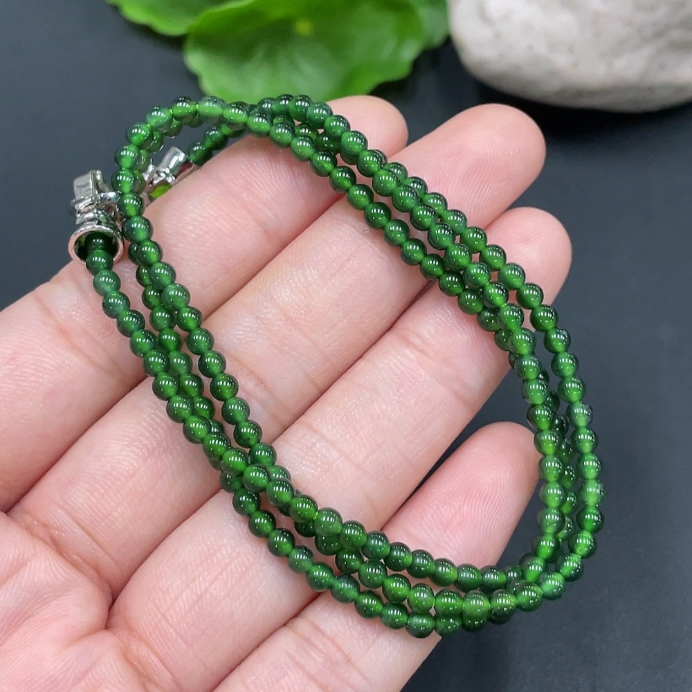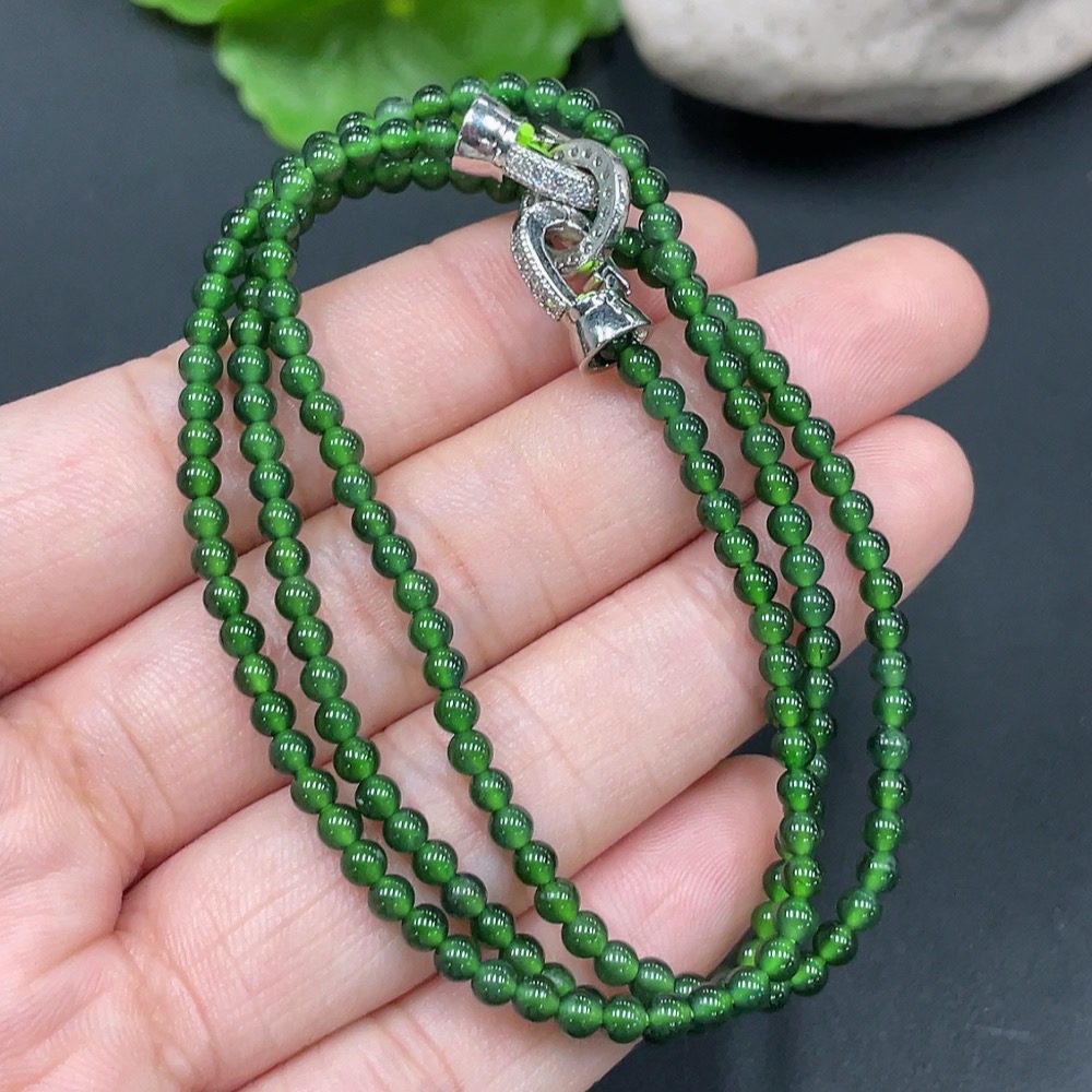 Jadeite Beaded Necklace Approx. 3mm Non-Gold Setting Total Weight Approx. 9.41g