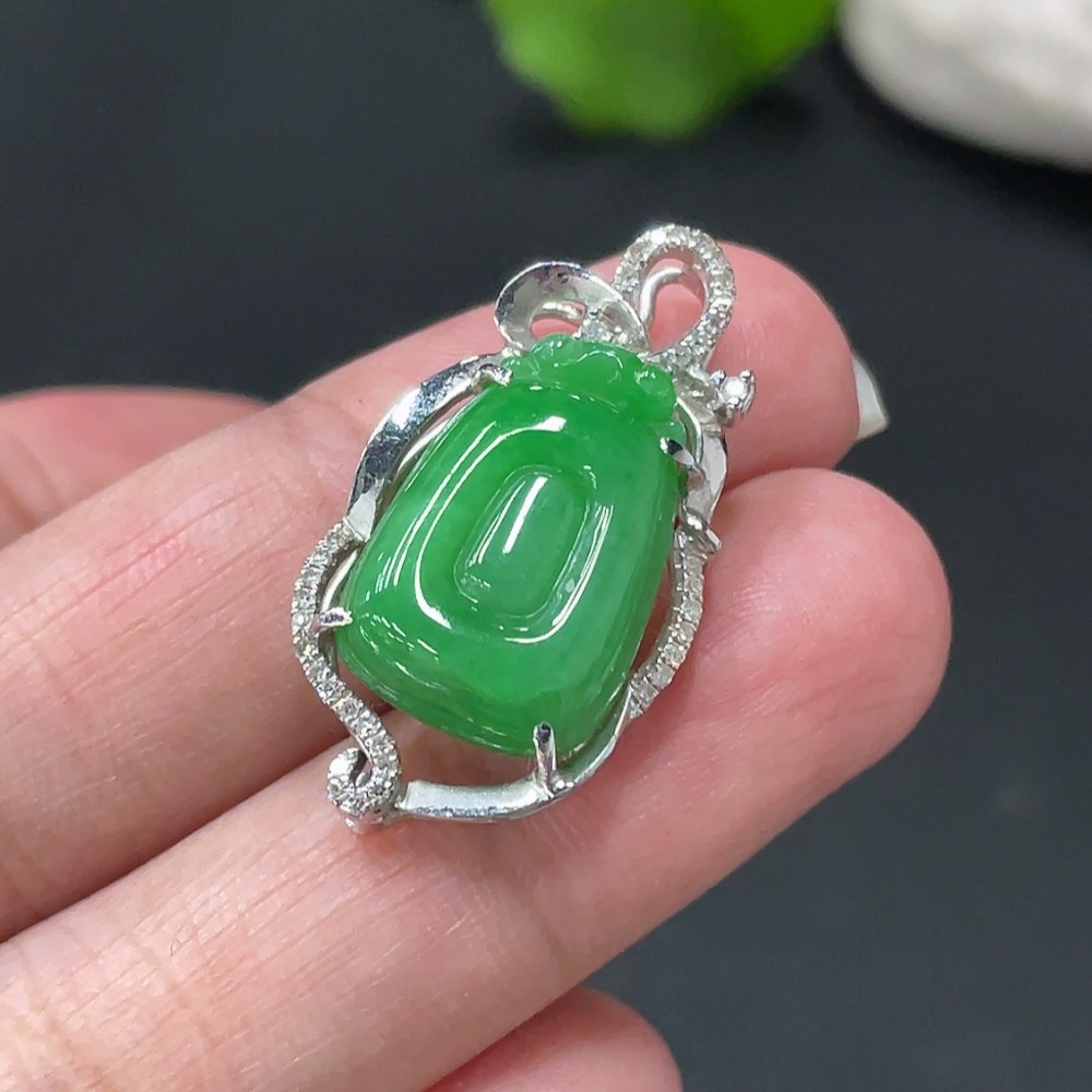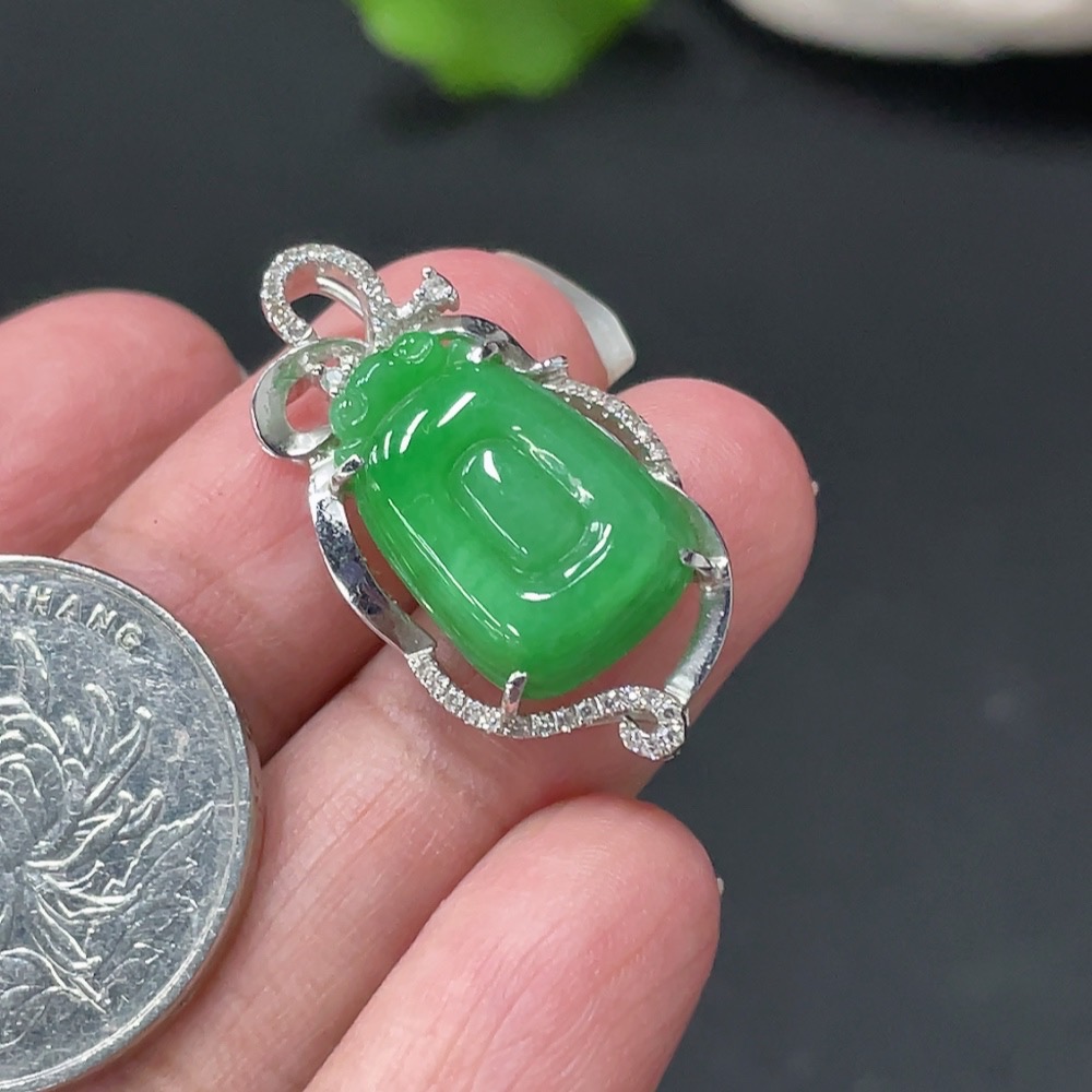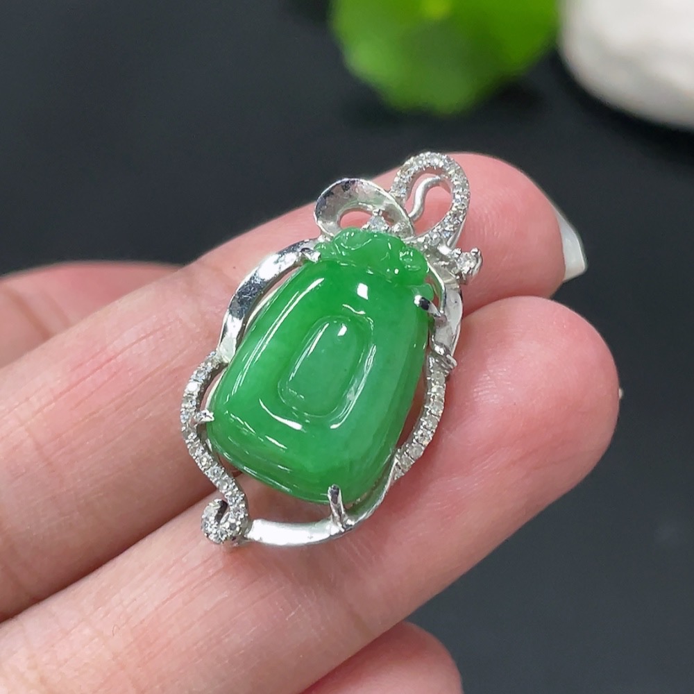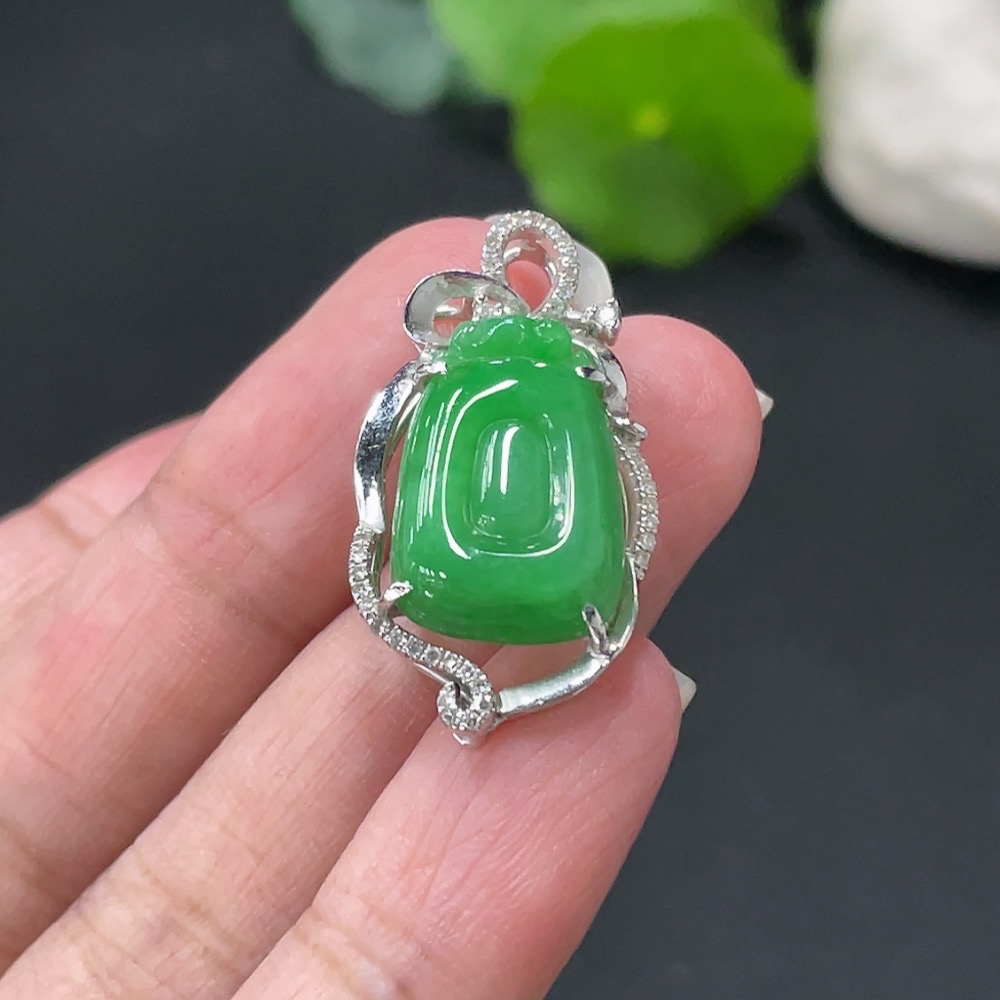 Jadeite Blessing Shell Inlaid Pendant 18k Gold Inlaid Approximately 3.65g