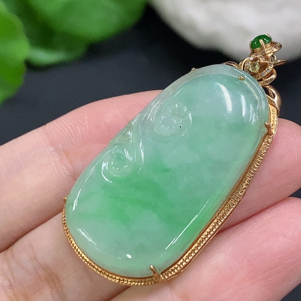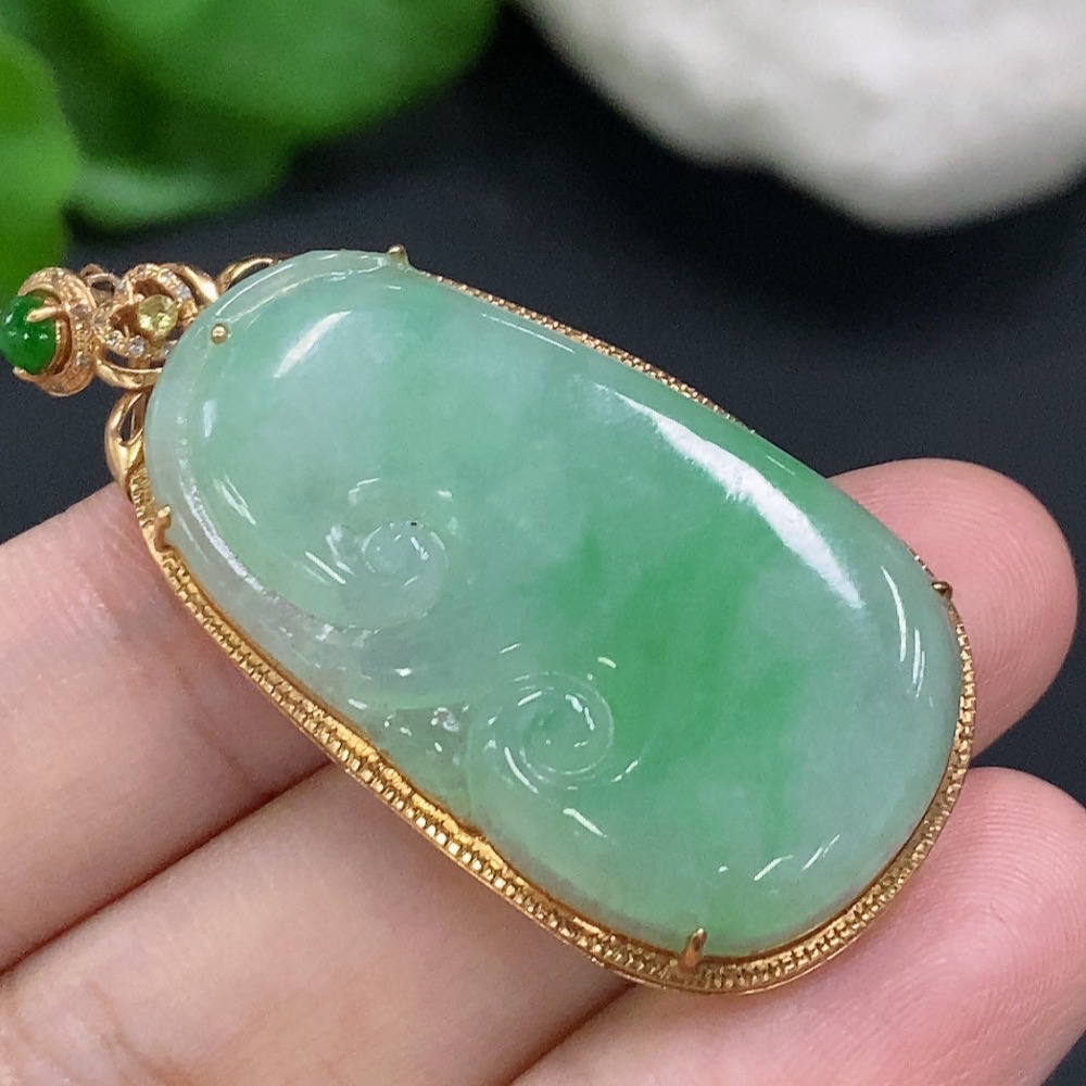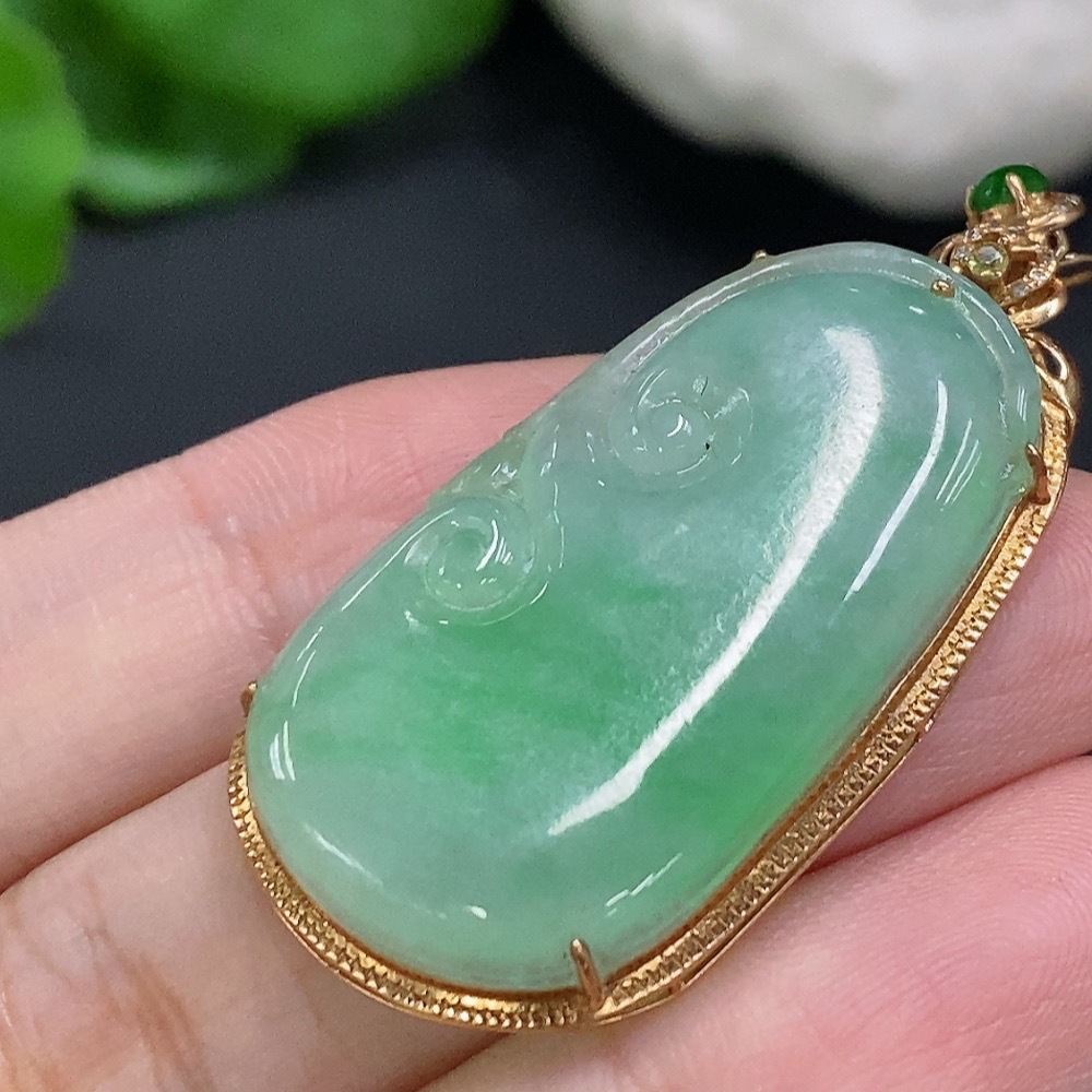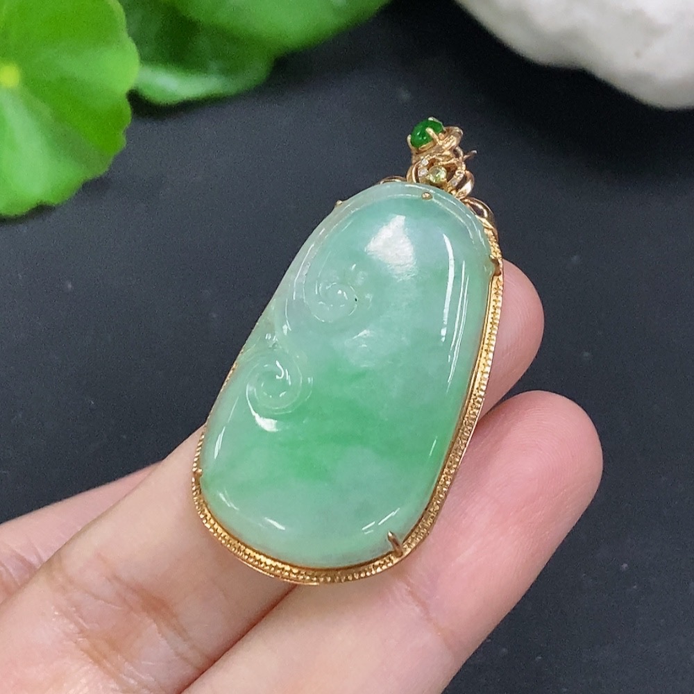 Jadeite Ruyi Inlaid Pendant 18K Gold Total Weight Approx. 7.3g