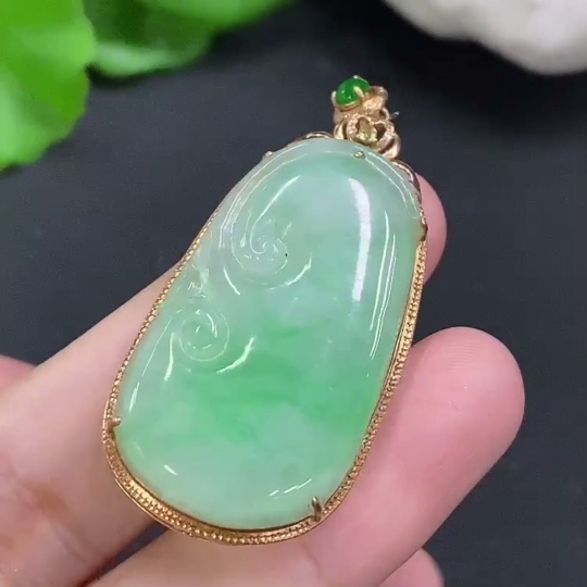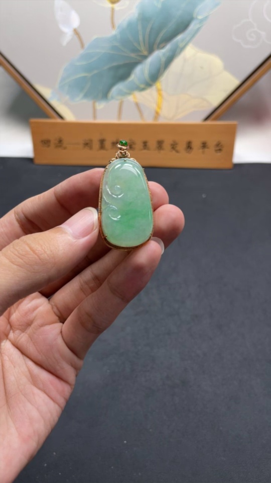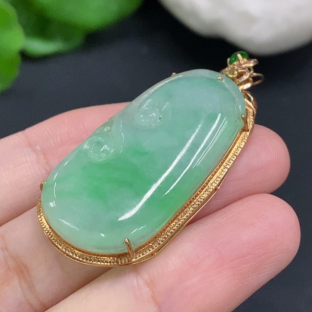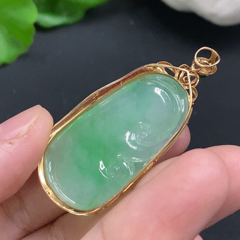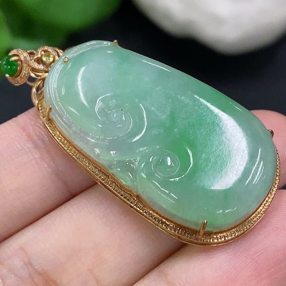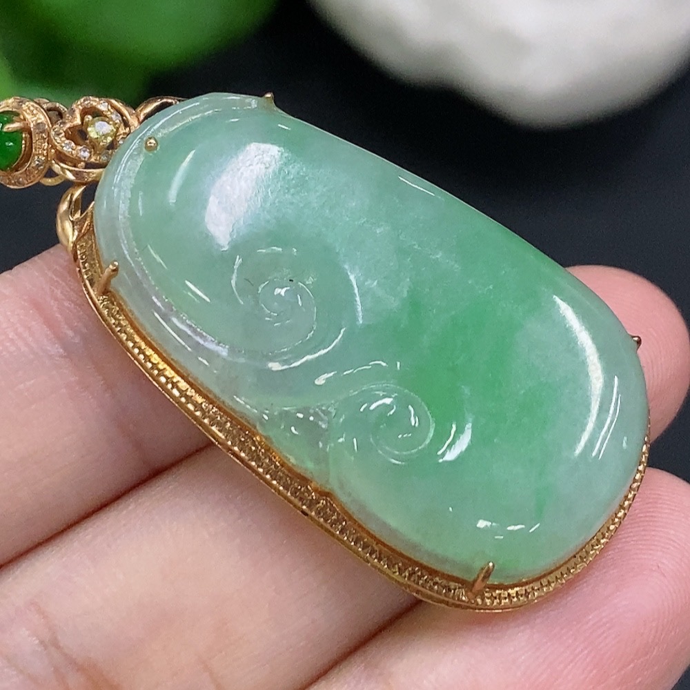Jadeite Ruyi Inlaid Pendant 18K Gold Total Weight Approx. 7.3g