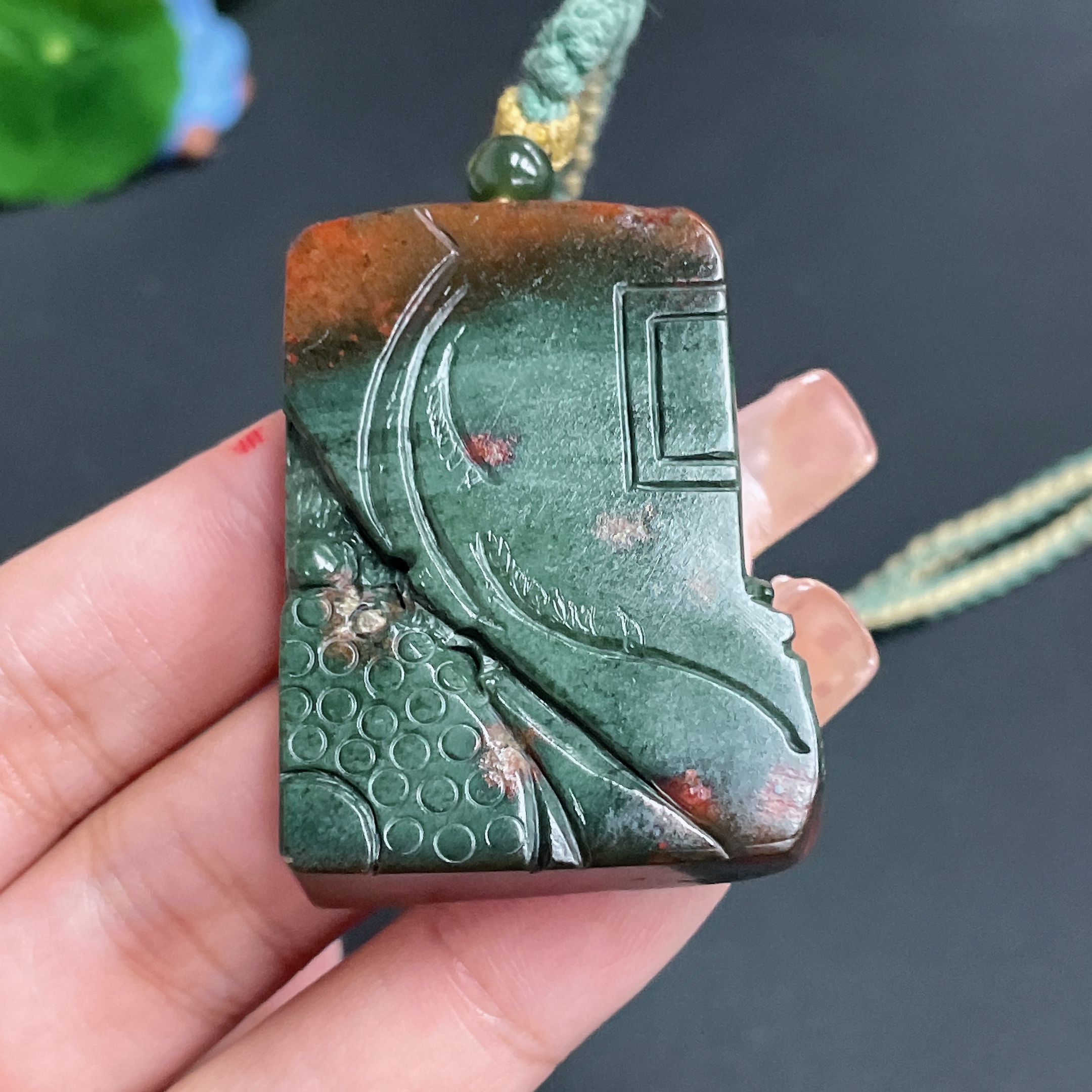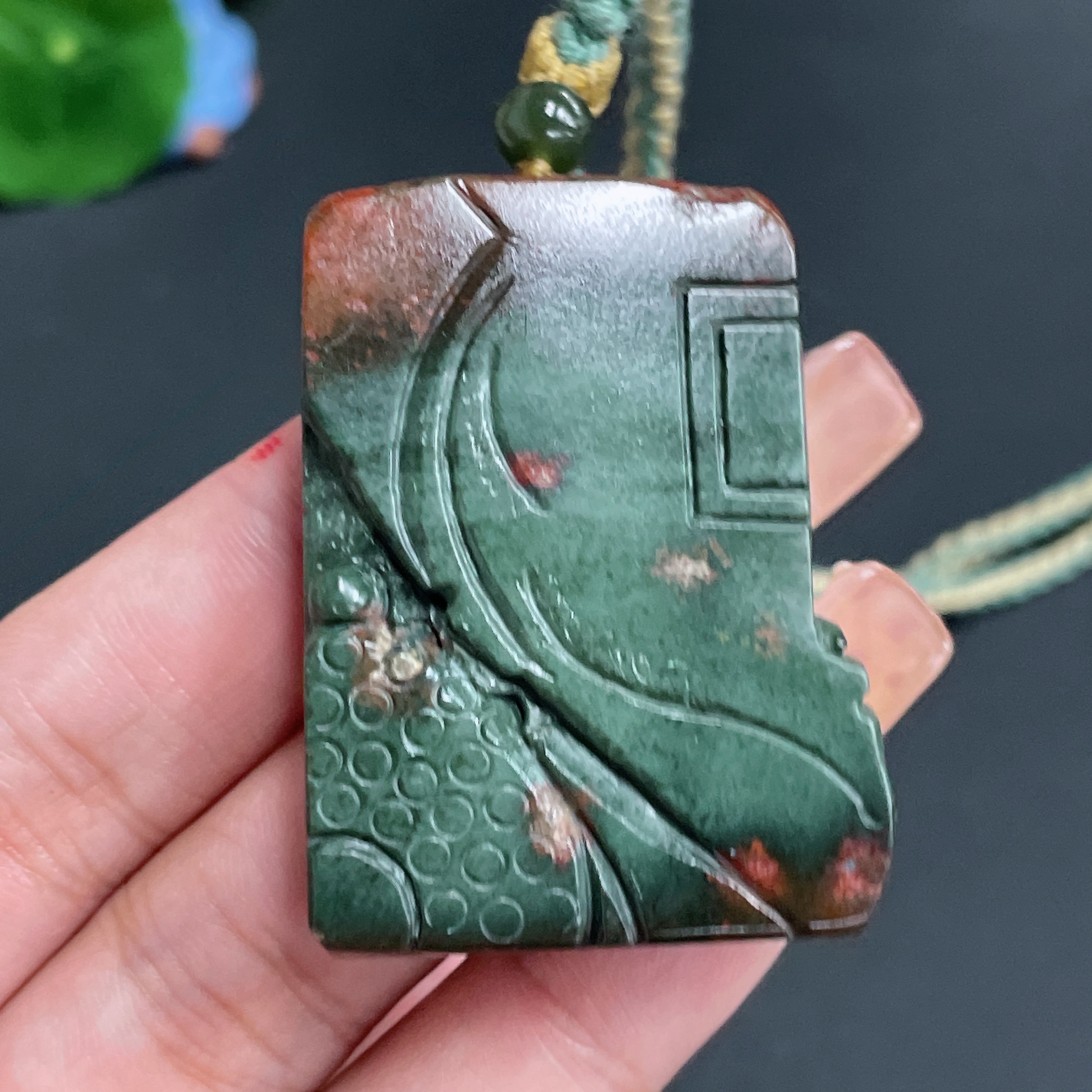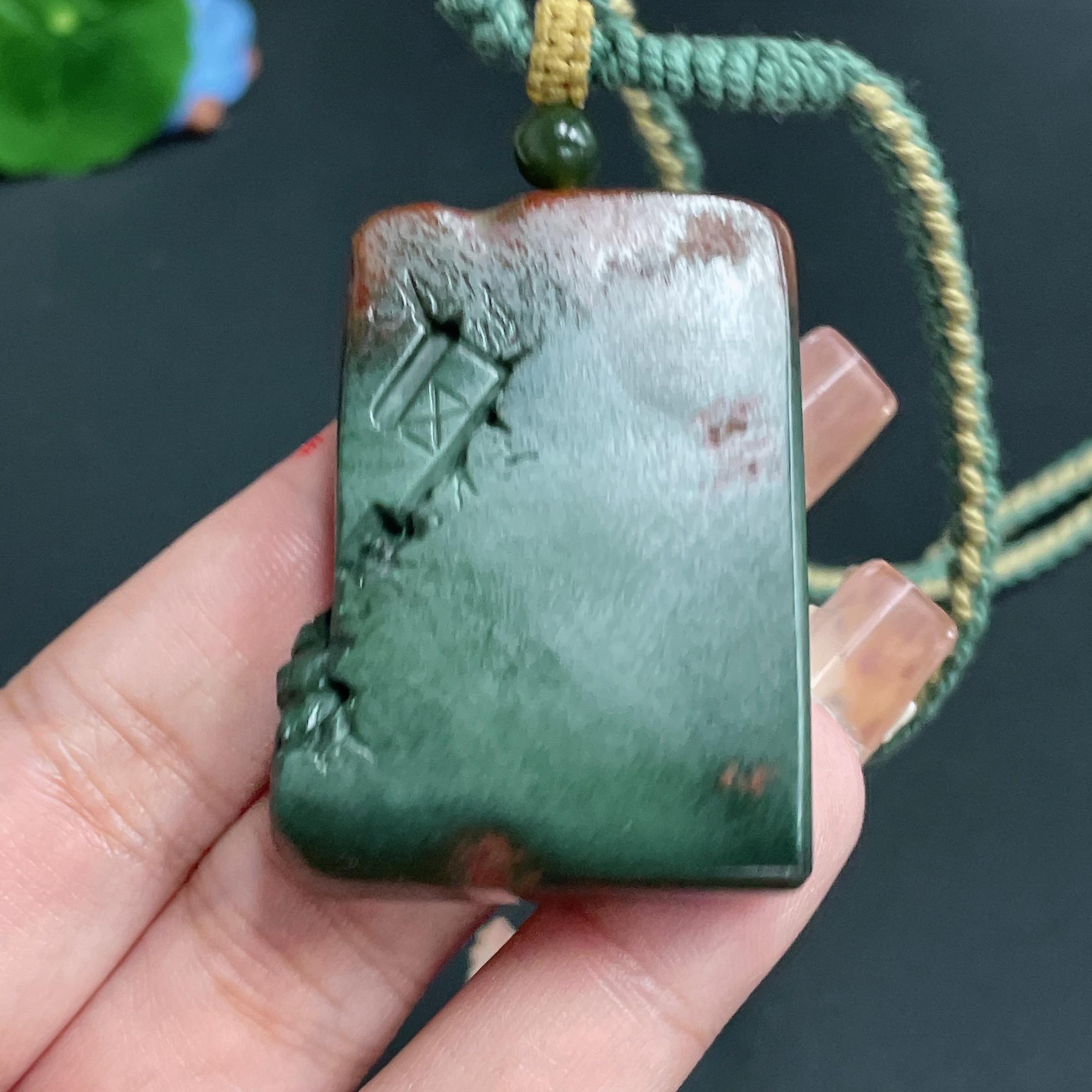 Hetian Jade Pendant Antique Style with Cord Total Weight 47.71g
