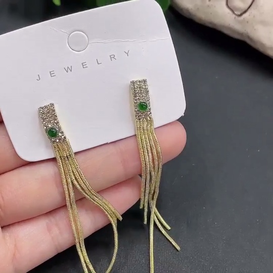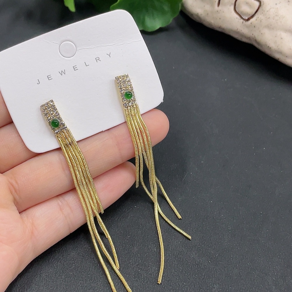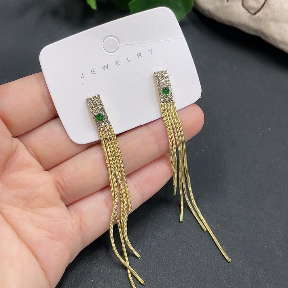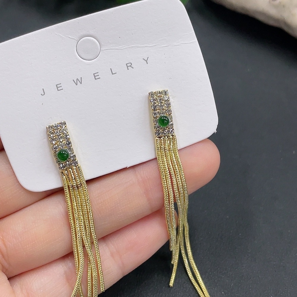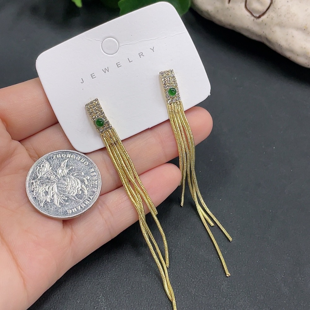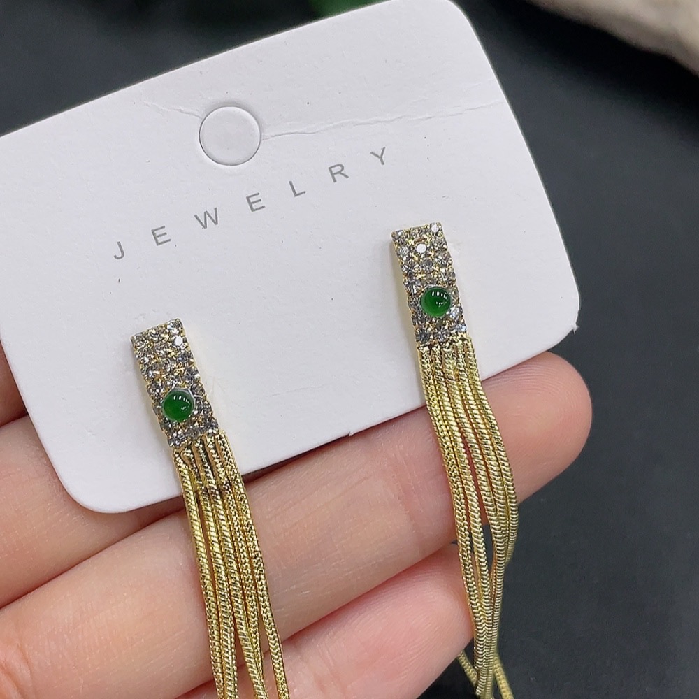 Jadeite Inlaid Earrings Non-Gold Total Weight 6.071g