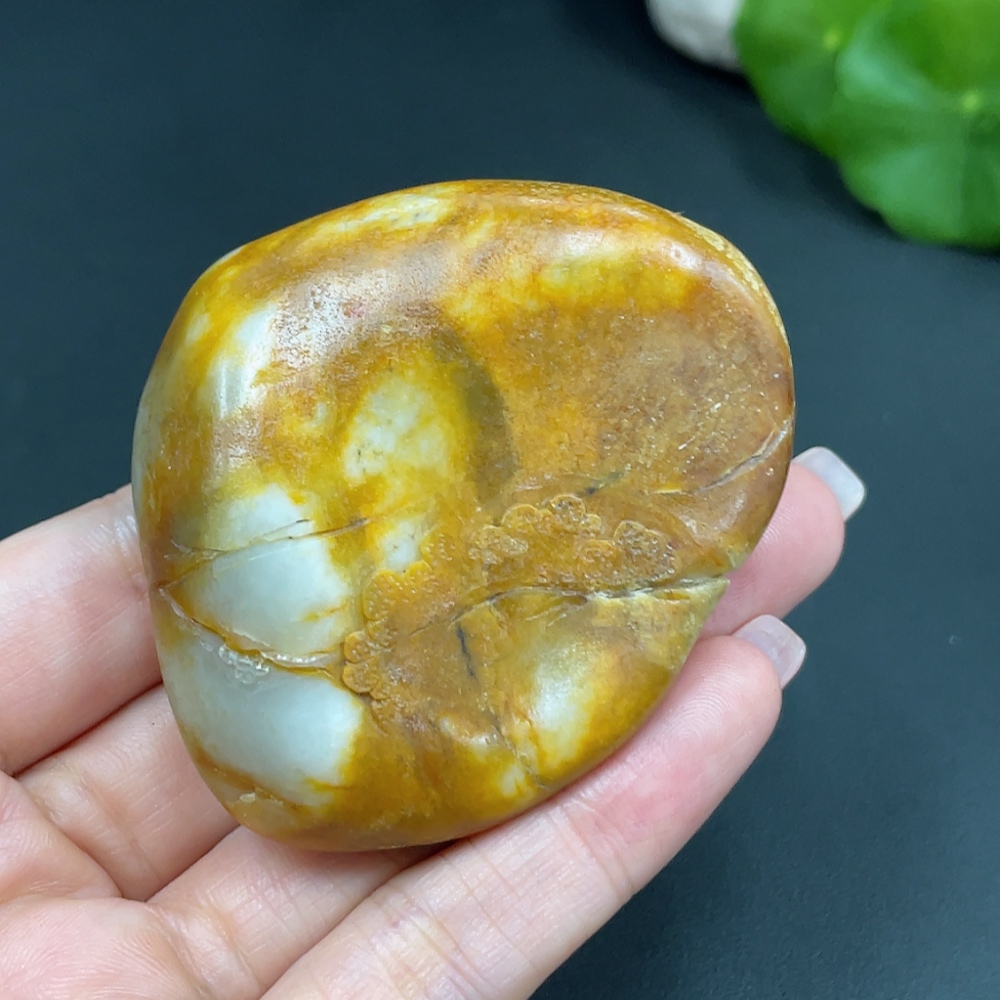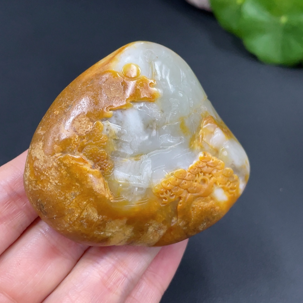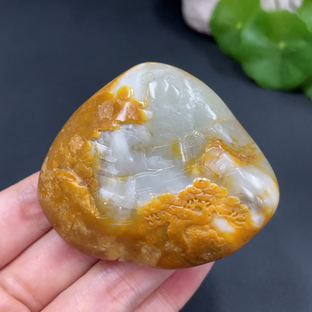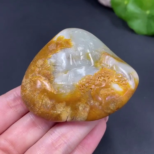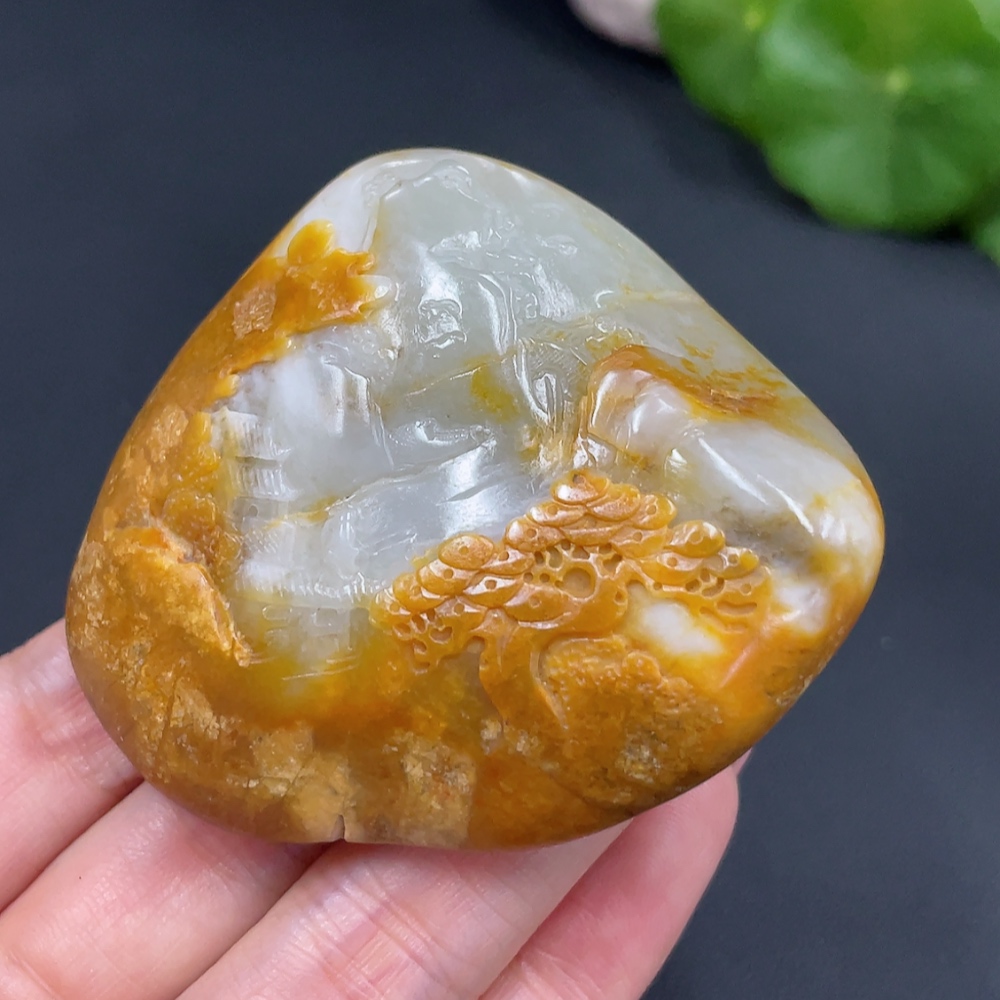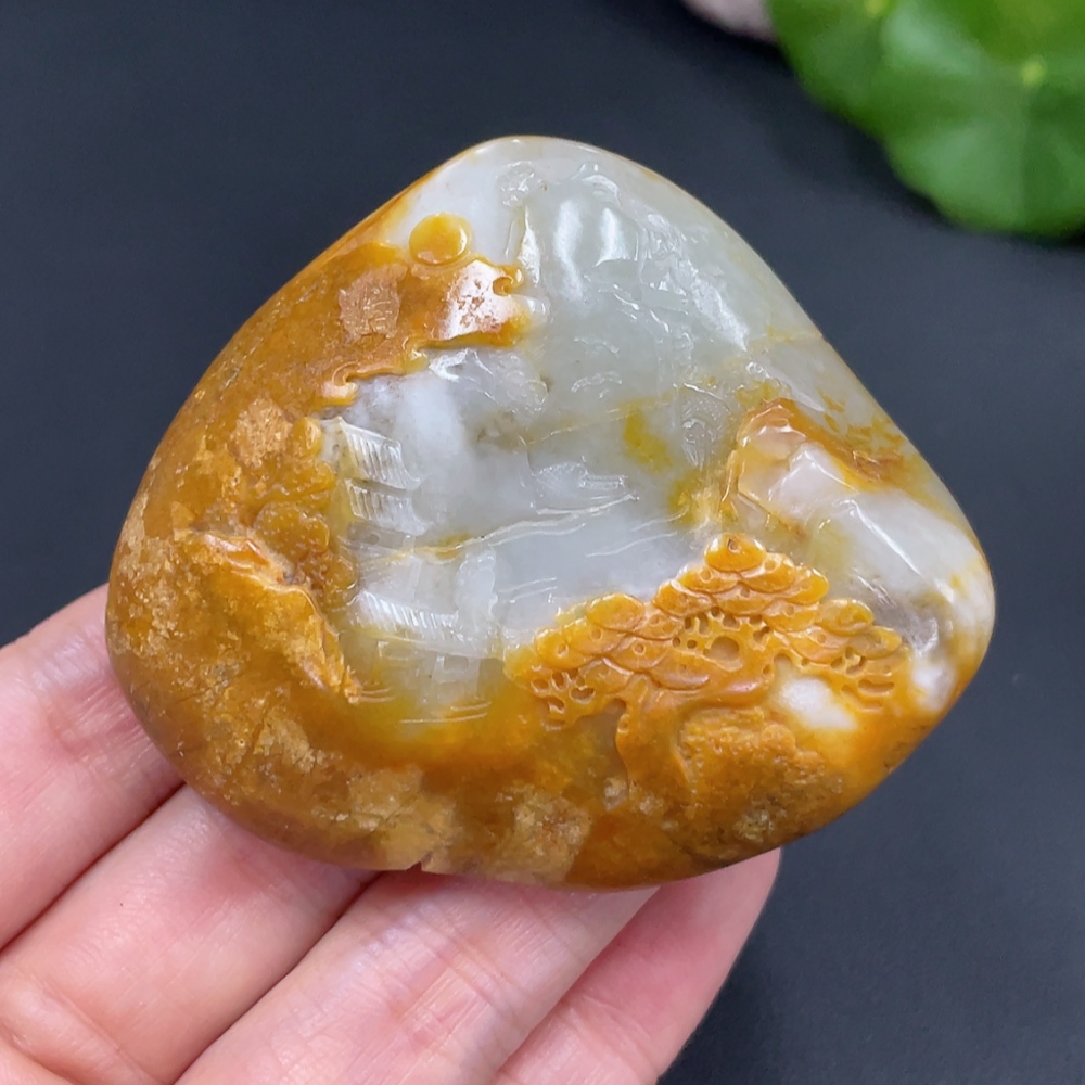 Hetian Jade Handheld Carving - Landscape, Undetermined Skin Color Origin, Contains Other Mineral Components, Total Weight Approx. 110.2g