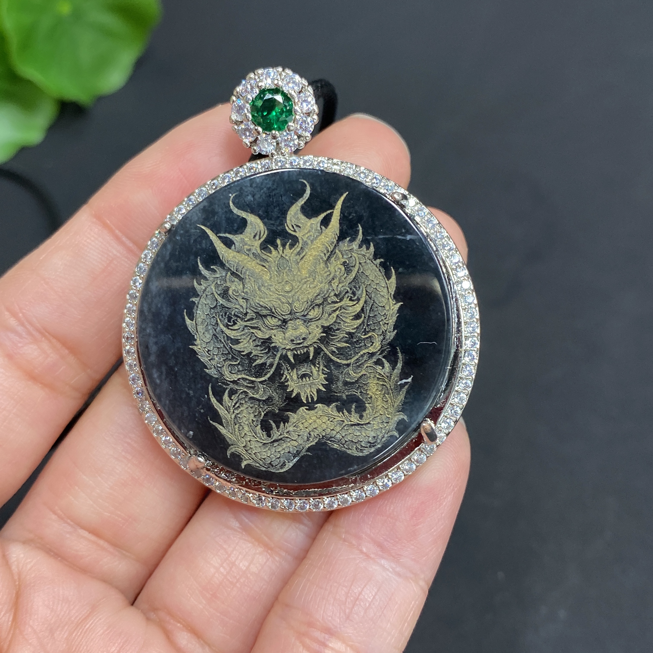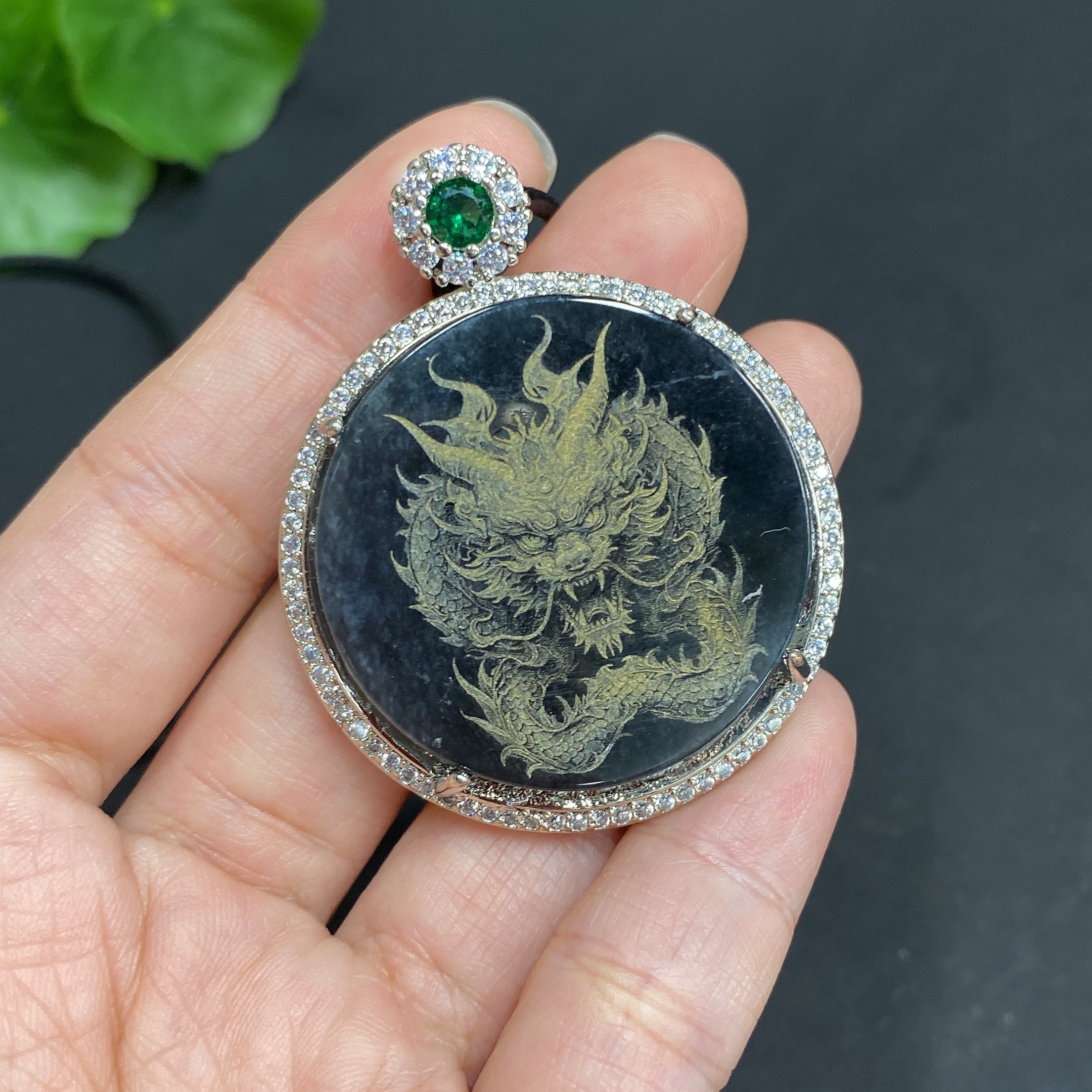 Jadeite Pendant Dragon Plaque Non-Gold Total Weight 23.172g