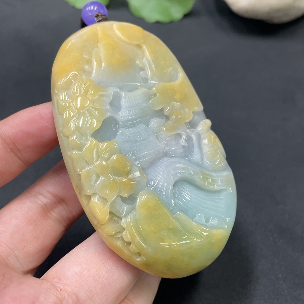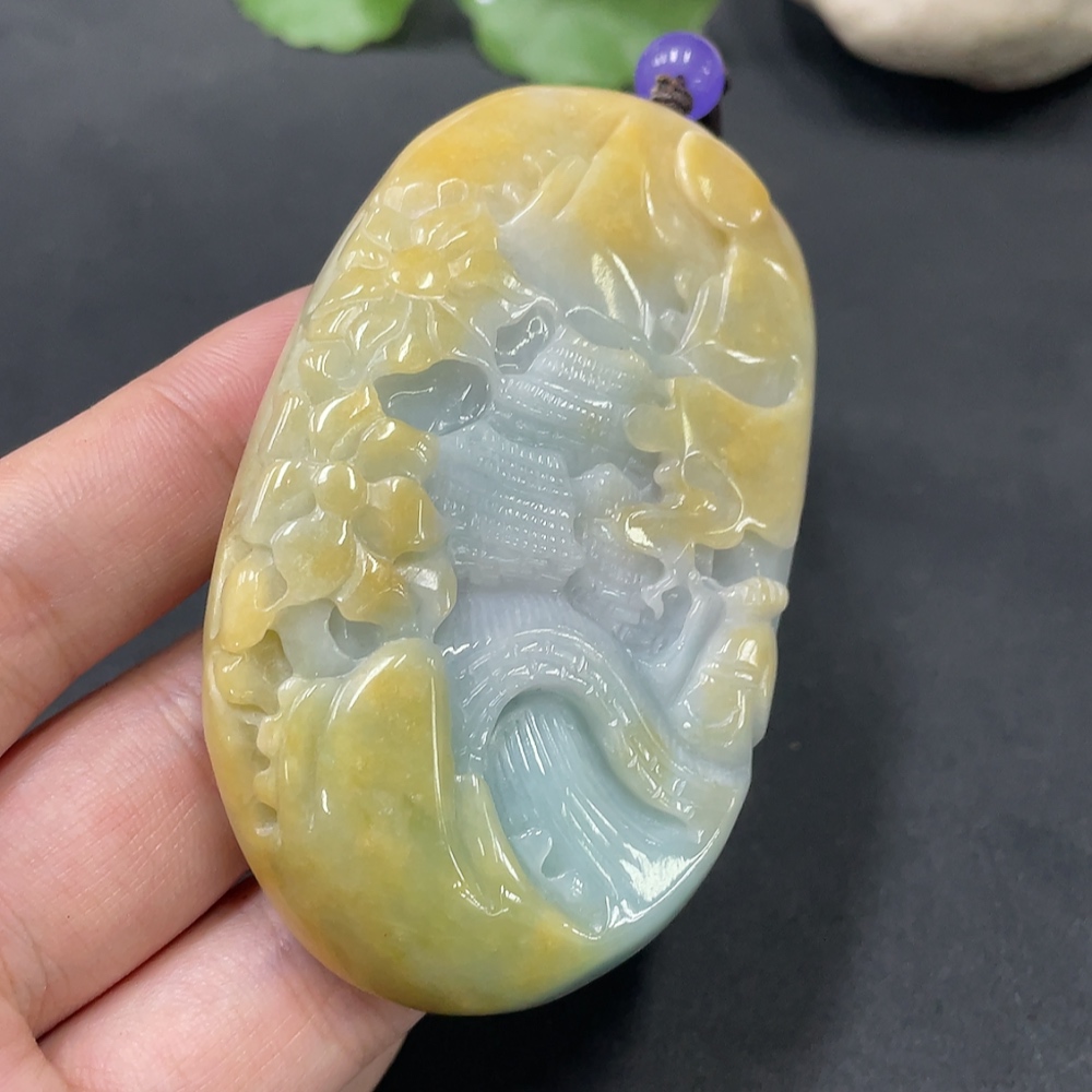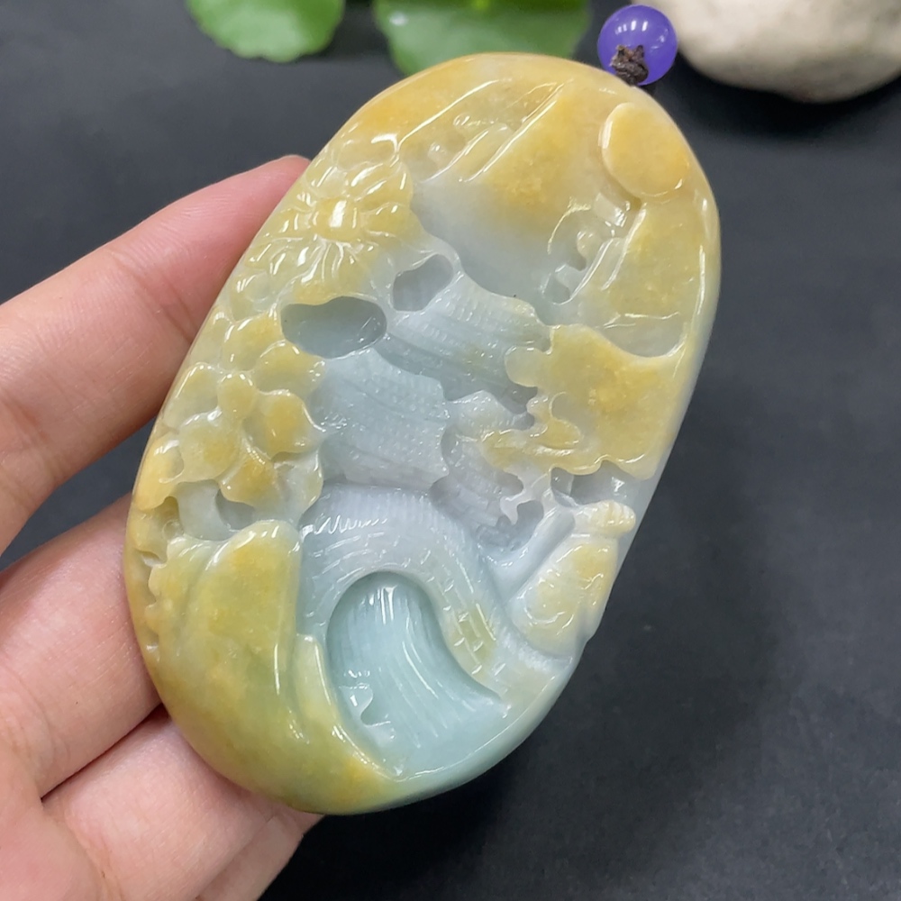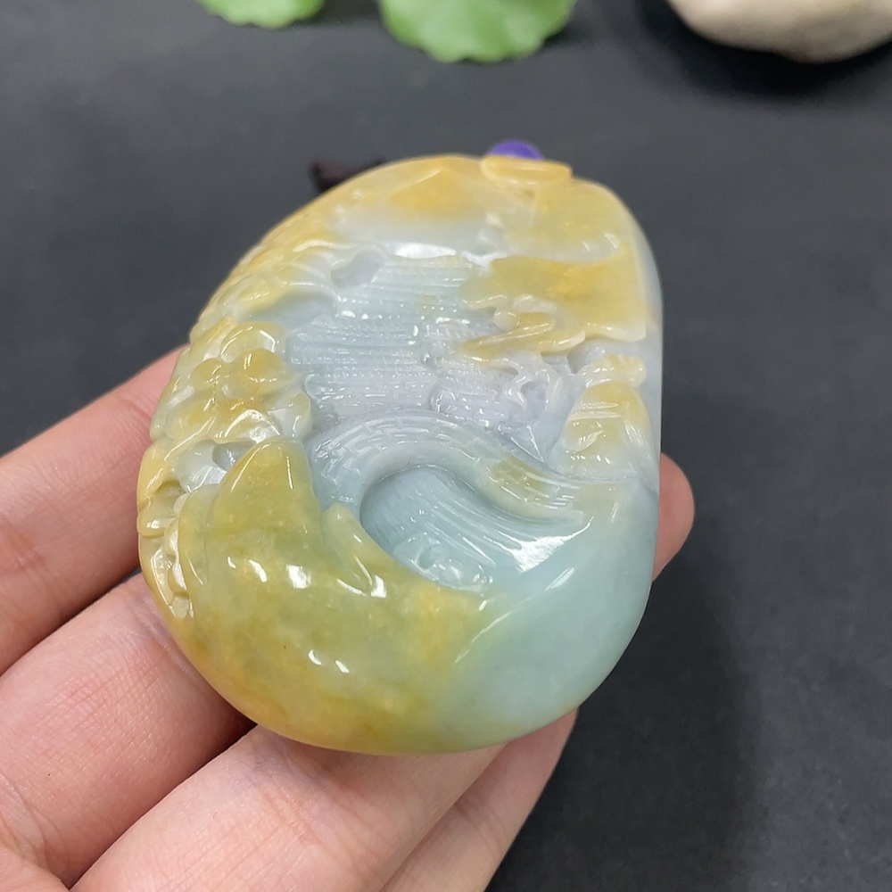 Jadeite Landscape Pendant, Color Origin Undetermined, Total Weight 120.660g