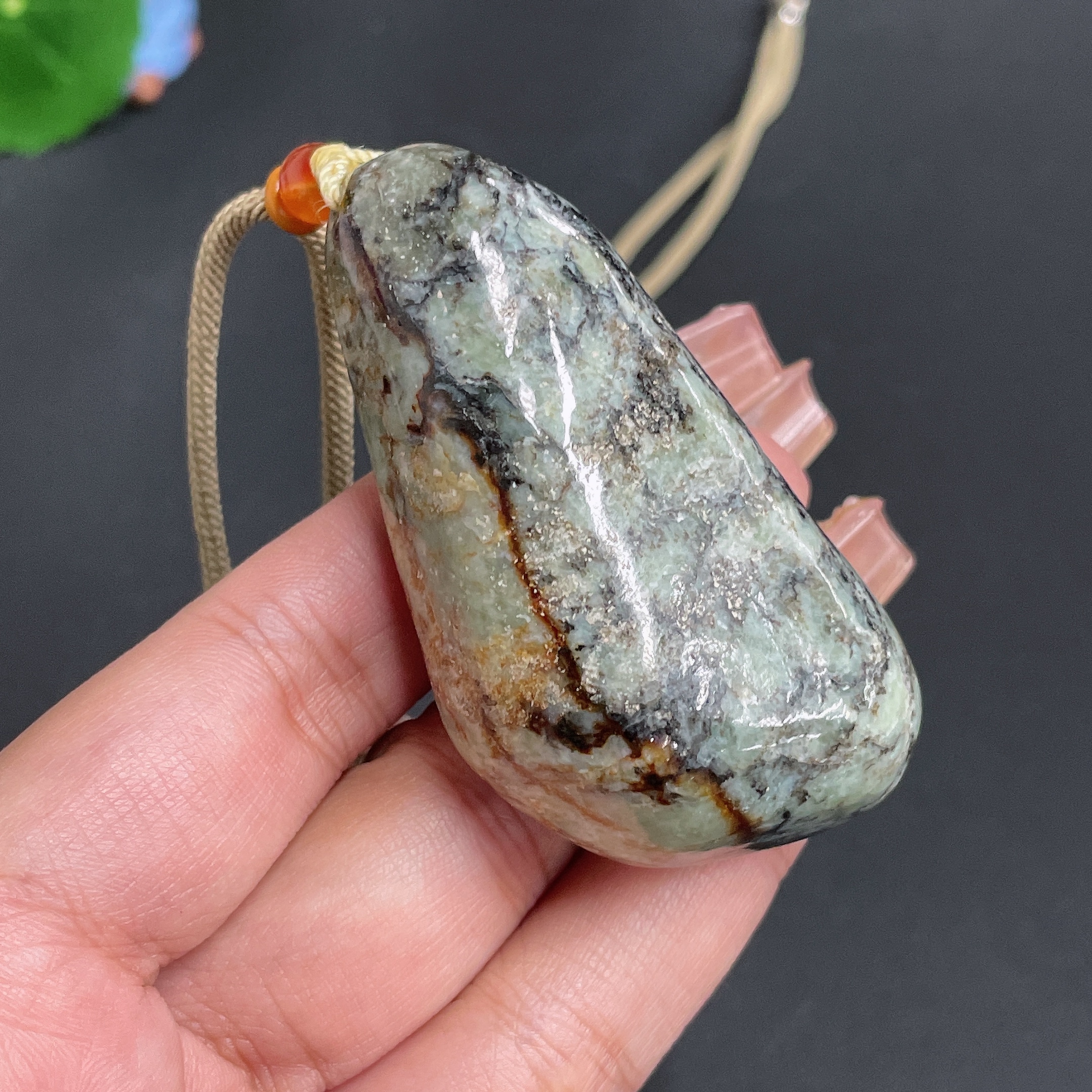 Hetian Jade Pendant, including rope weight 80.57g, undetermined cause of skin color