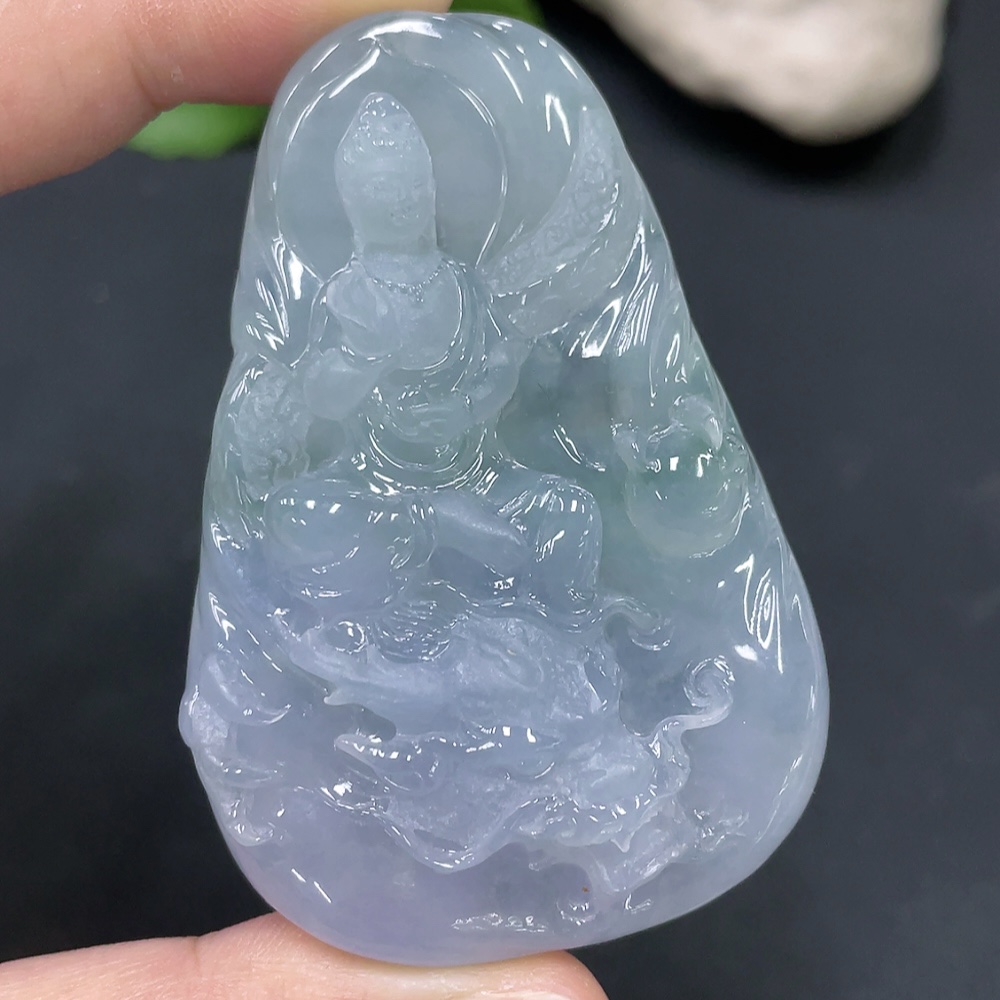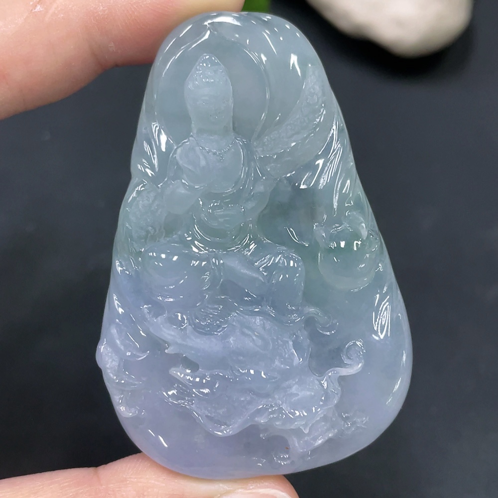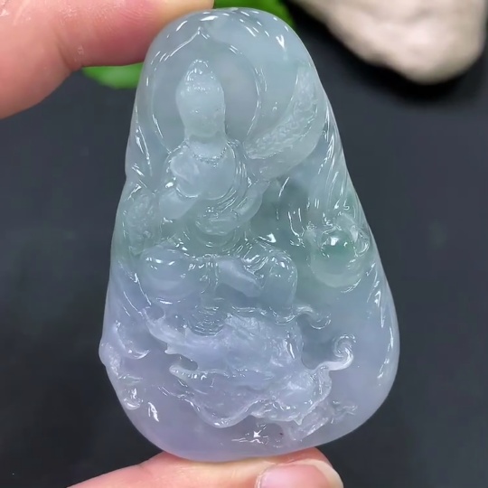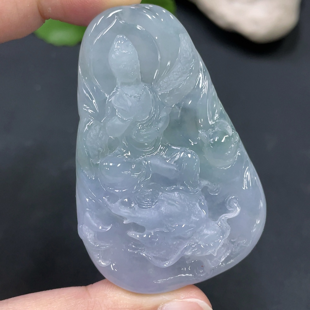 Jadeite Imperial Dragon Guanyin Pendant, Total Weight 54.039g