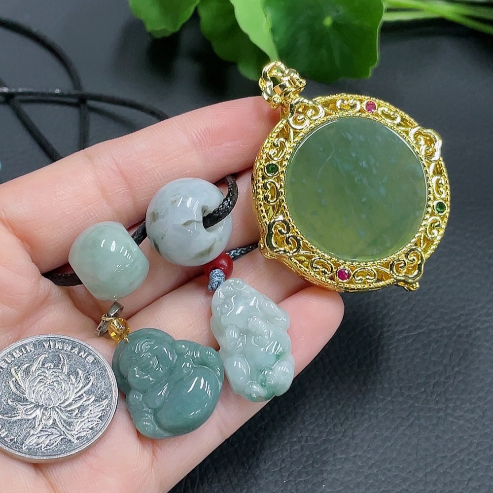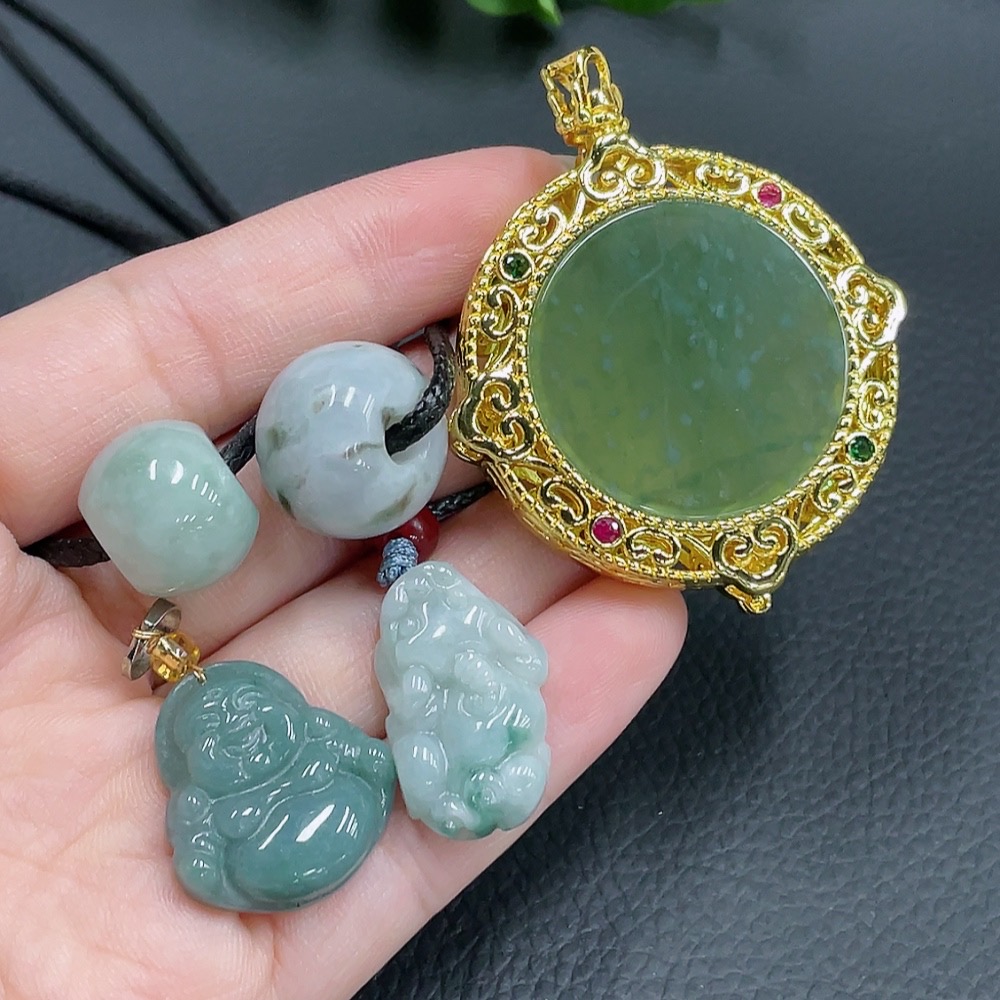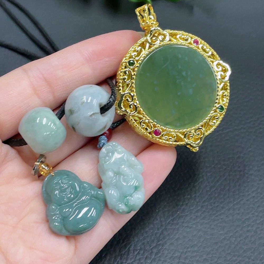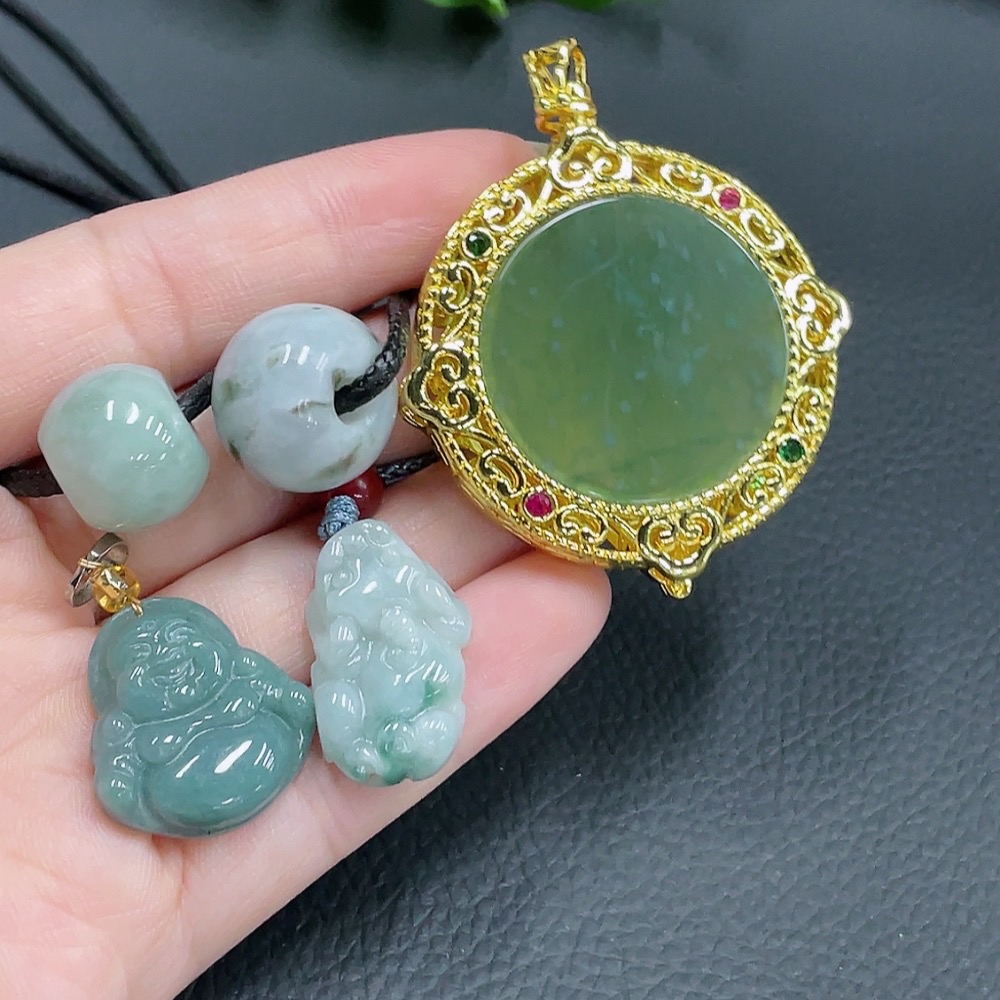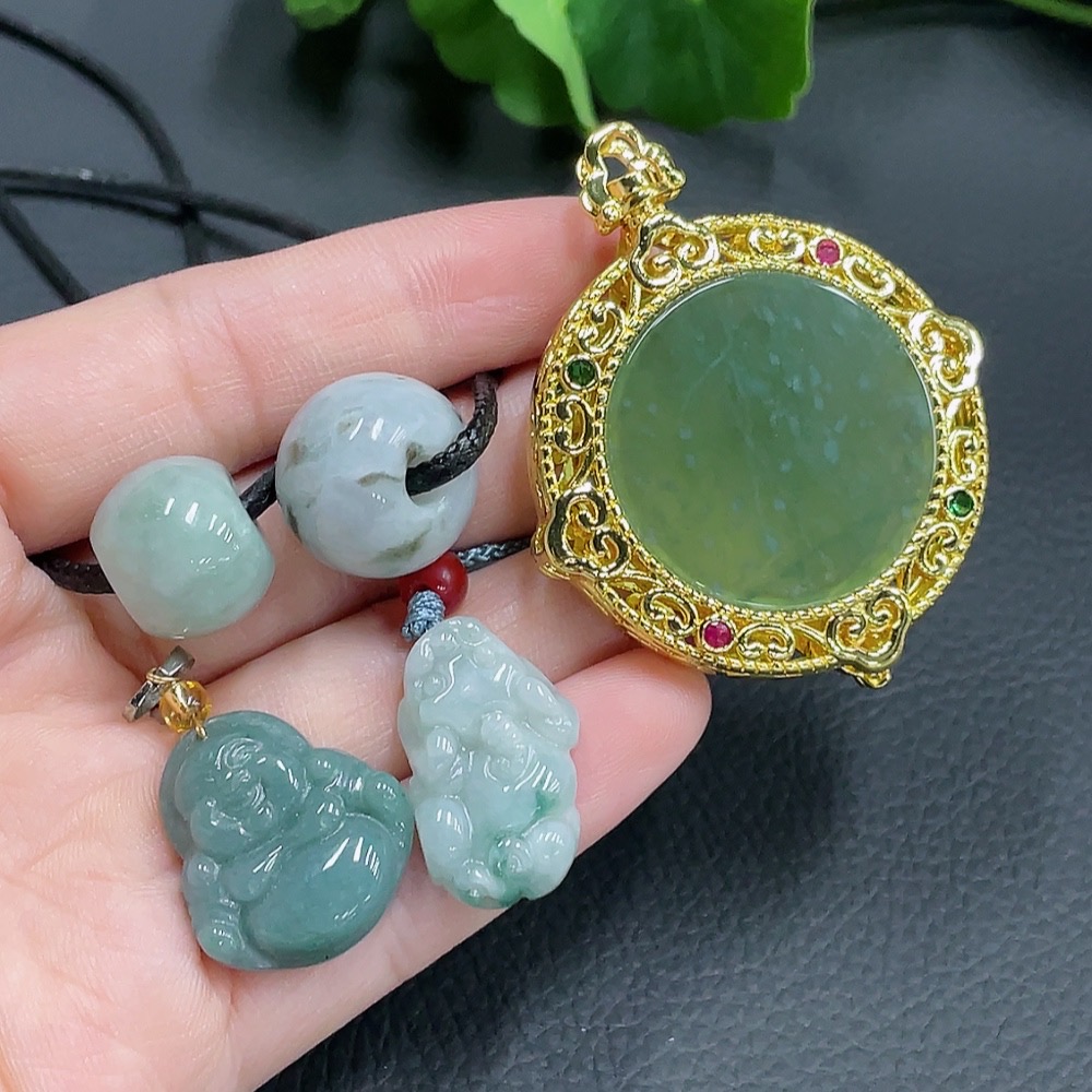Jadeite Inlaid Pendant Sell as a Lot Non-Gold