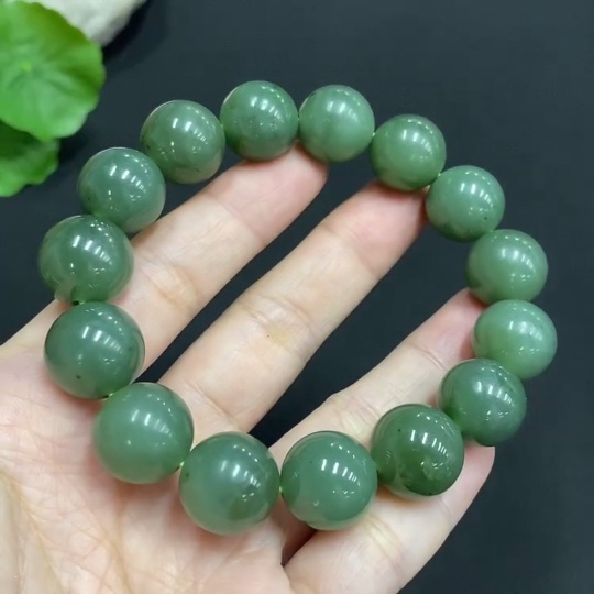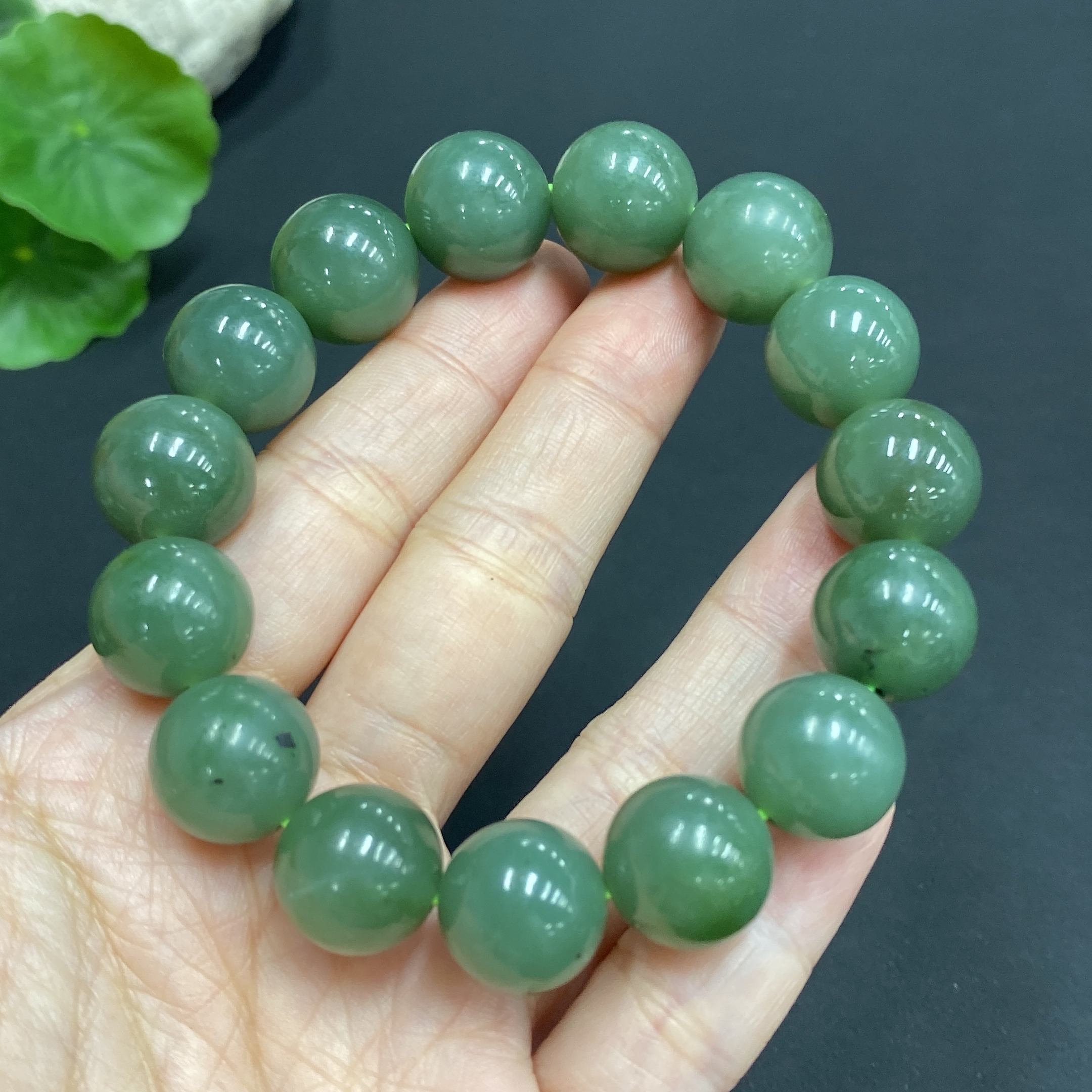 Hetian Jade Bracelet, Approx. 13.6mm Beads, Total Weight Approx. 59.1g