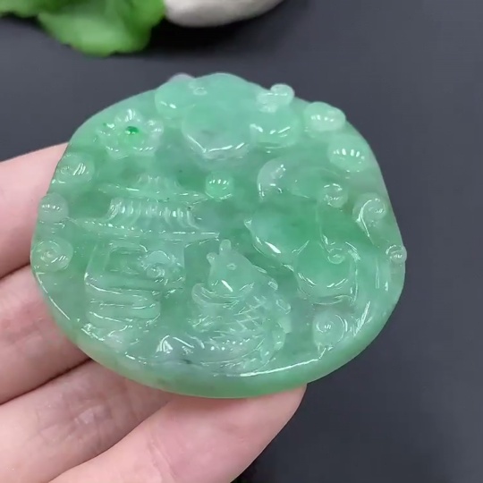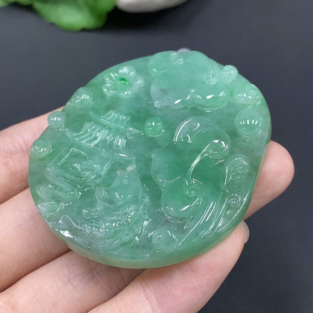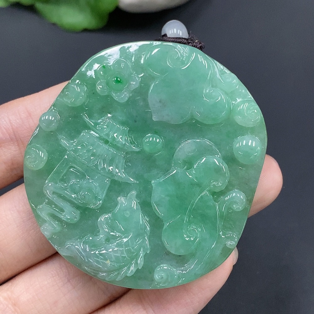 Jadeite Fish Leaping Over the Dragon Gate Pendant Total Weight 50.115g