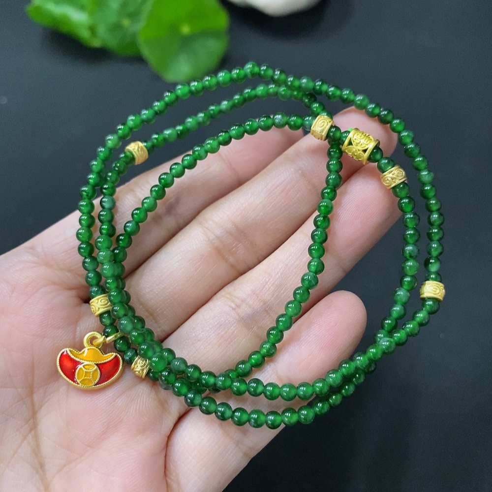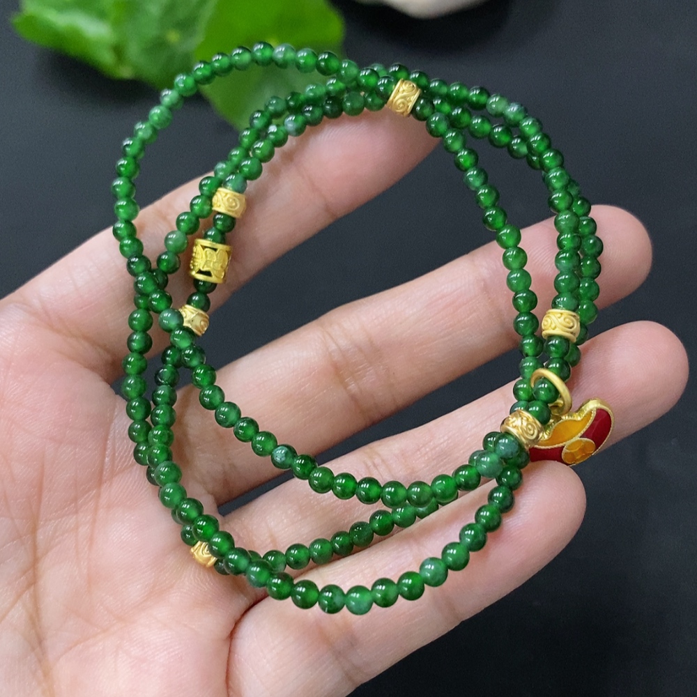 Jadeite Bead Necklace Card 2.9mm approx. (Accessory Non-Gold) Total Weight 10.176g