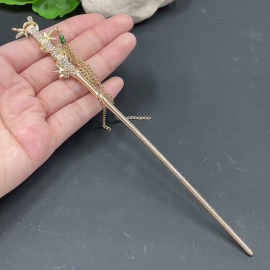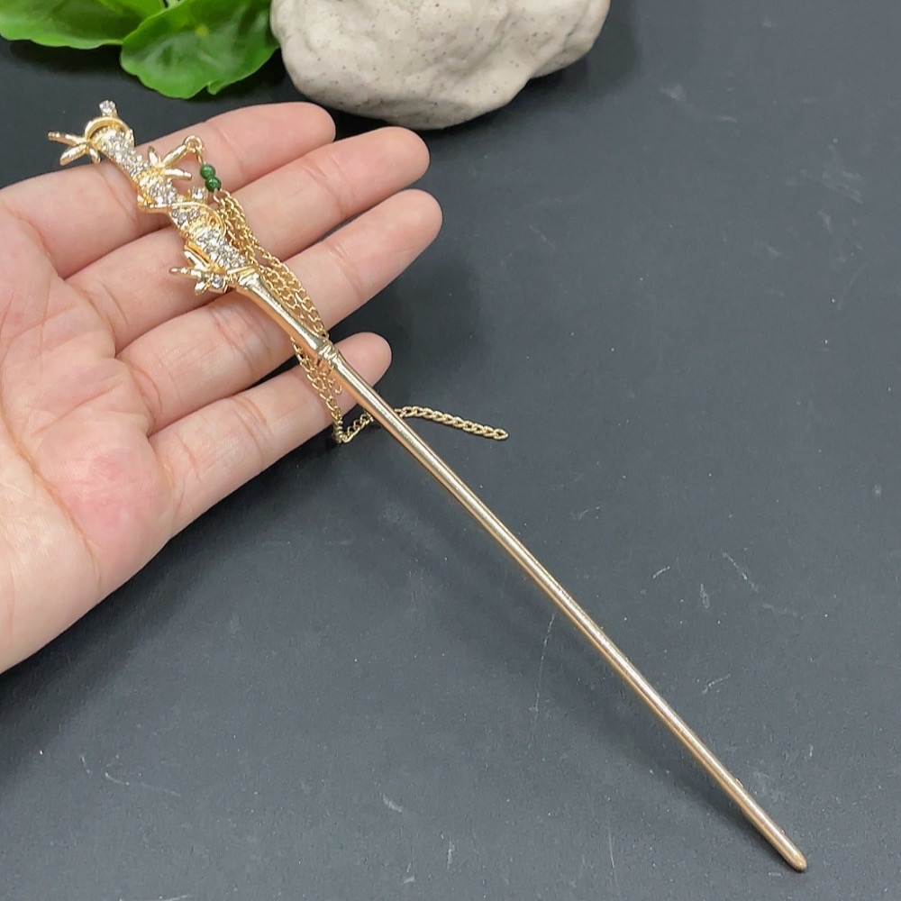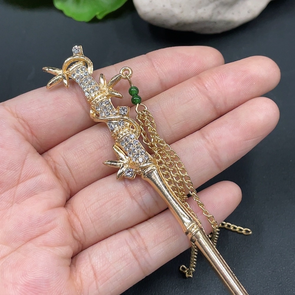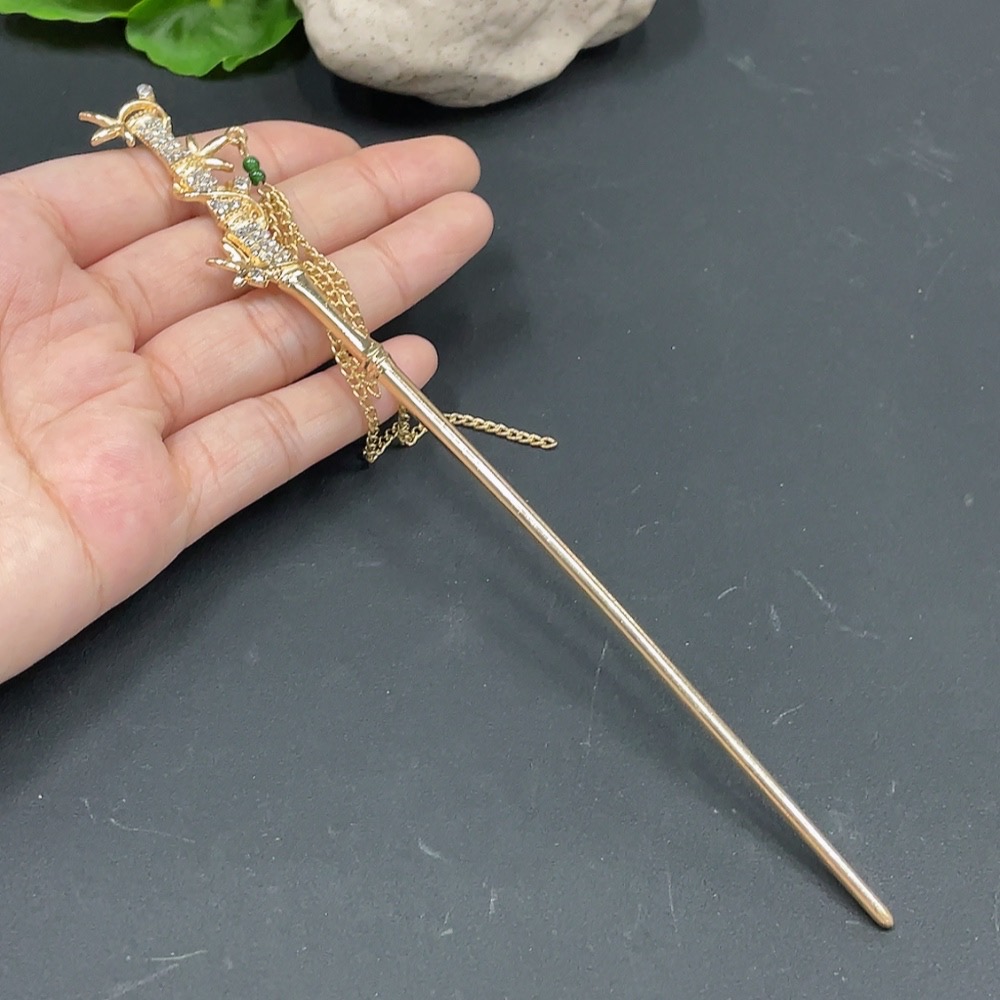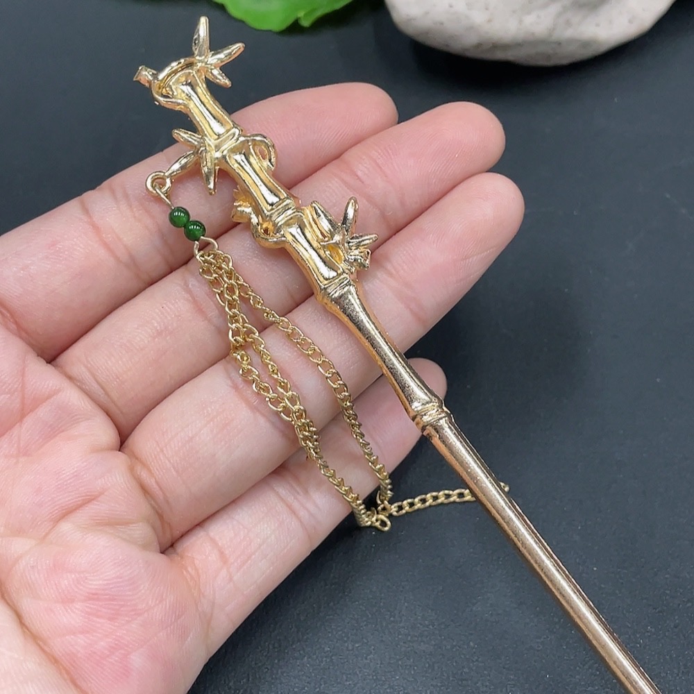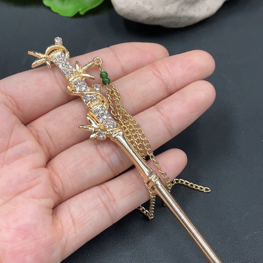 Jadeite Bead Hairpin Non-Gold Inlaid Total Weight 14.415g
